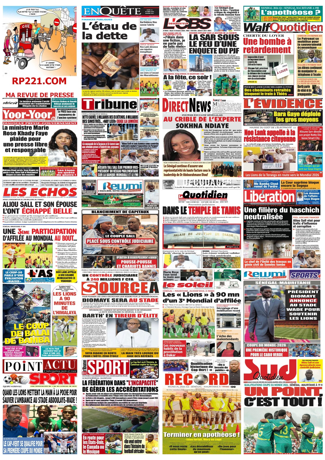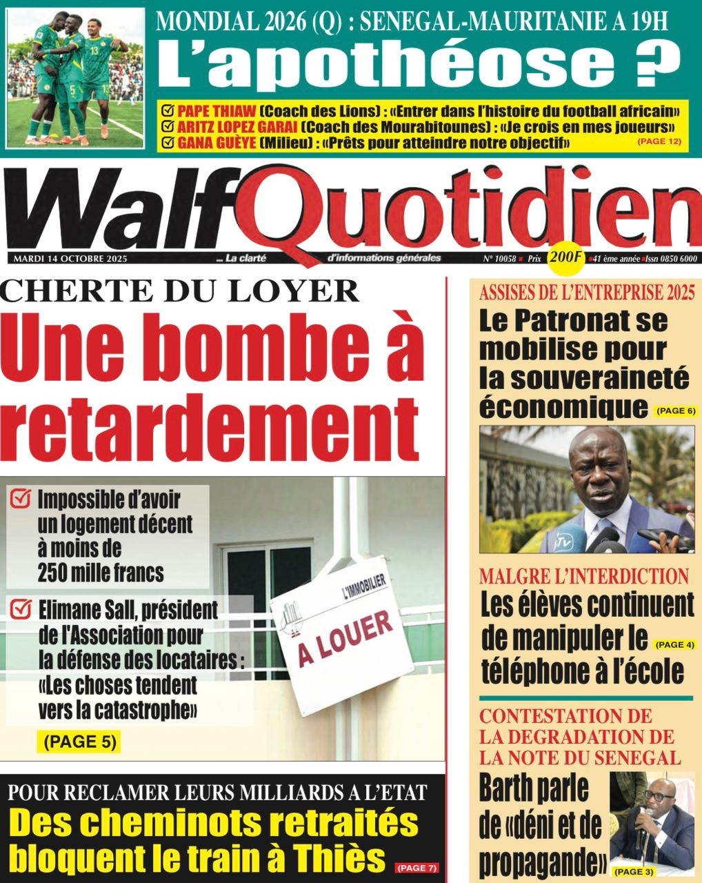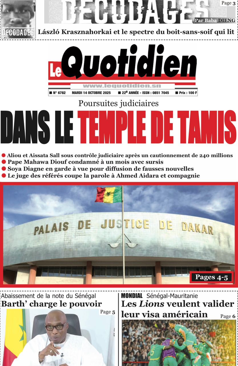 Découvrez les Unes des journaux sénégalais du mardi 14 octobre 2025