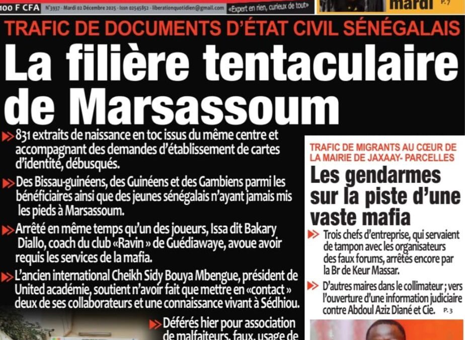 Découvrez les Unes des journaux sénégalais du mardi 2 décembre 2025