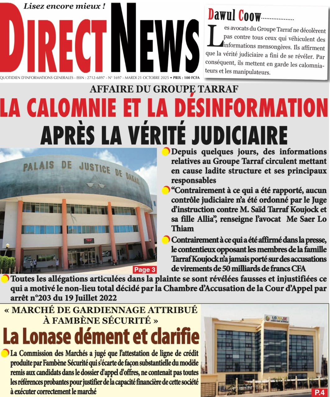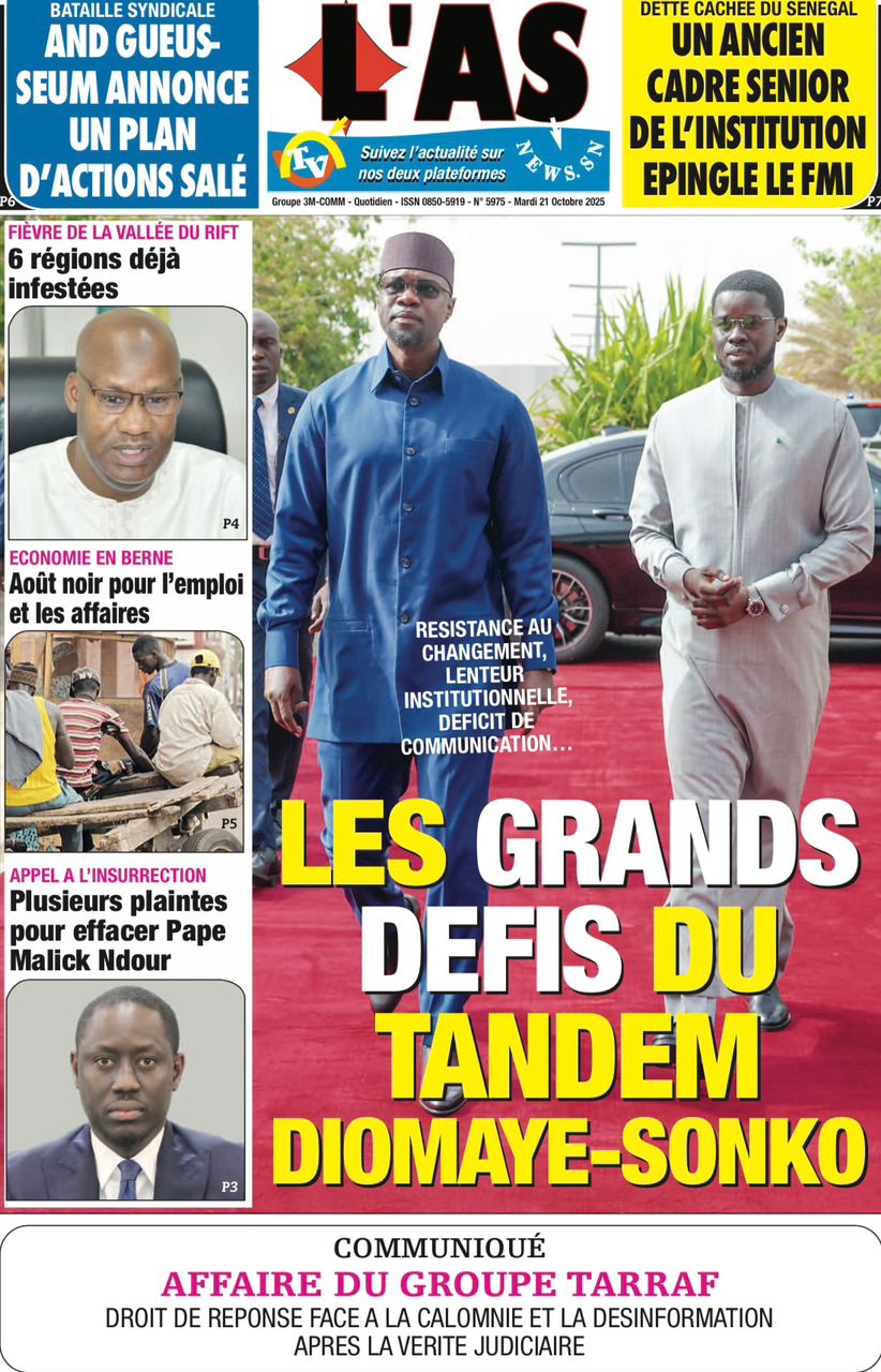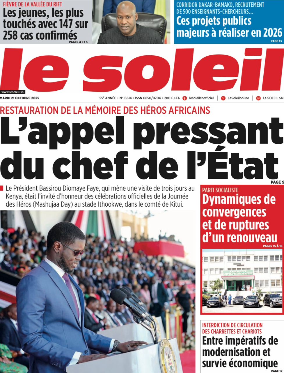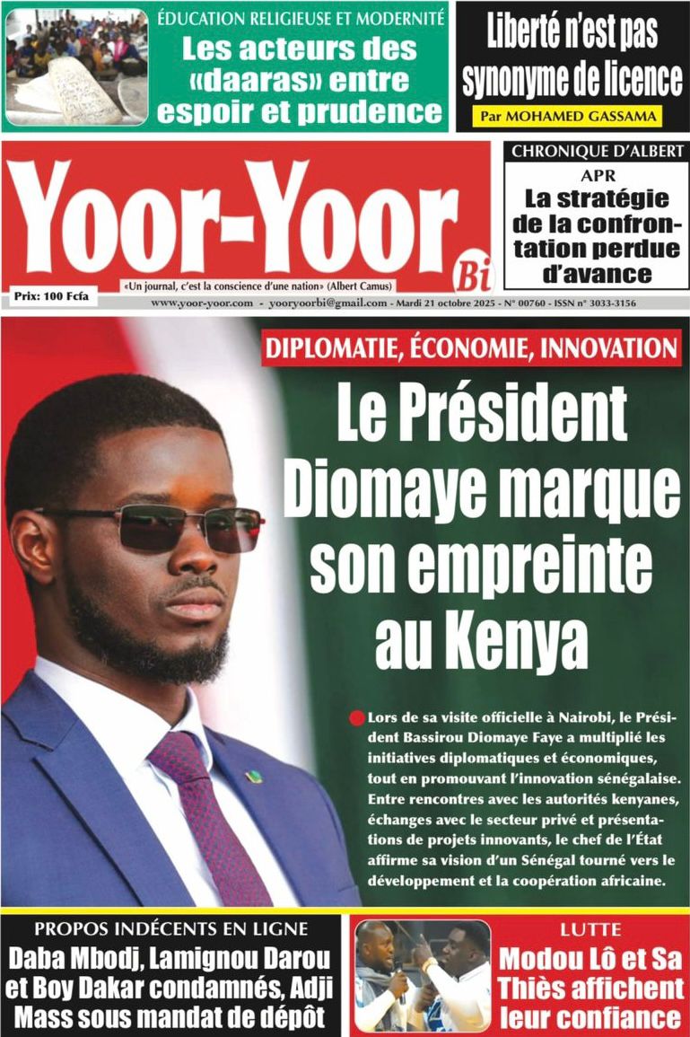 Découvrez les Unes des journaux sénégalais du mardi 21 octobre 2025