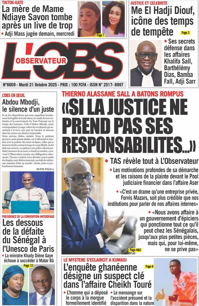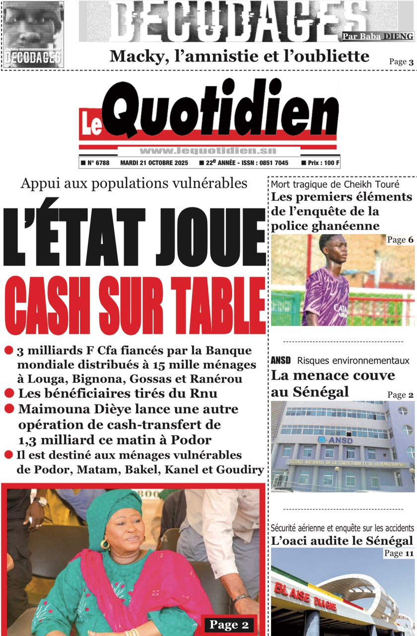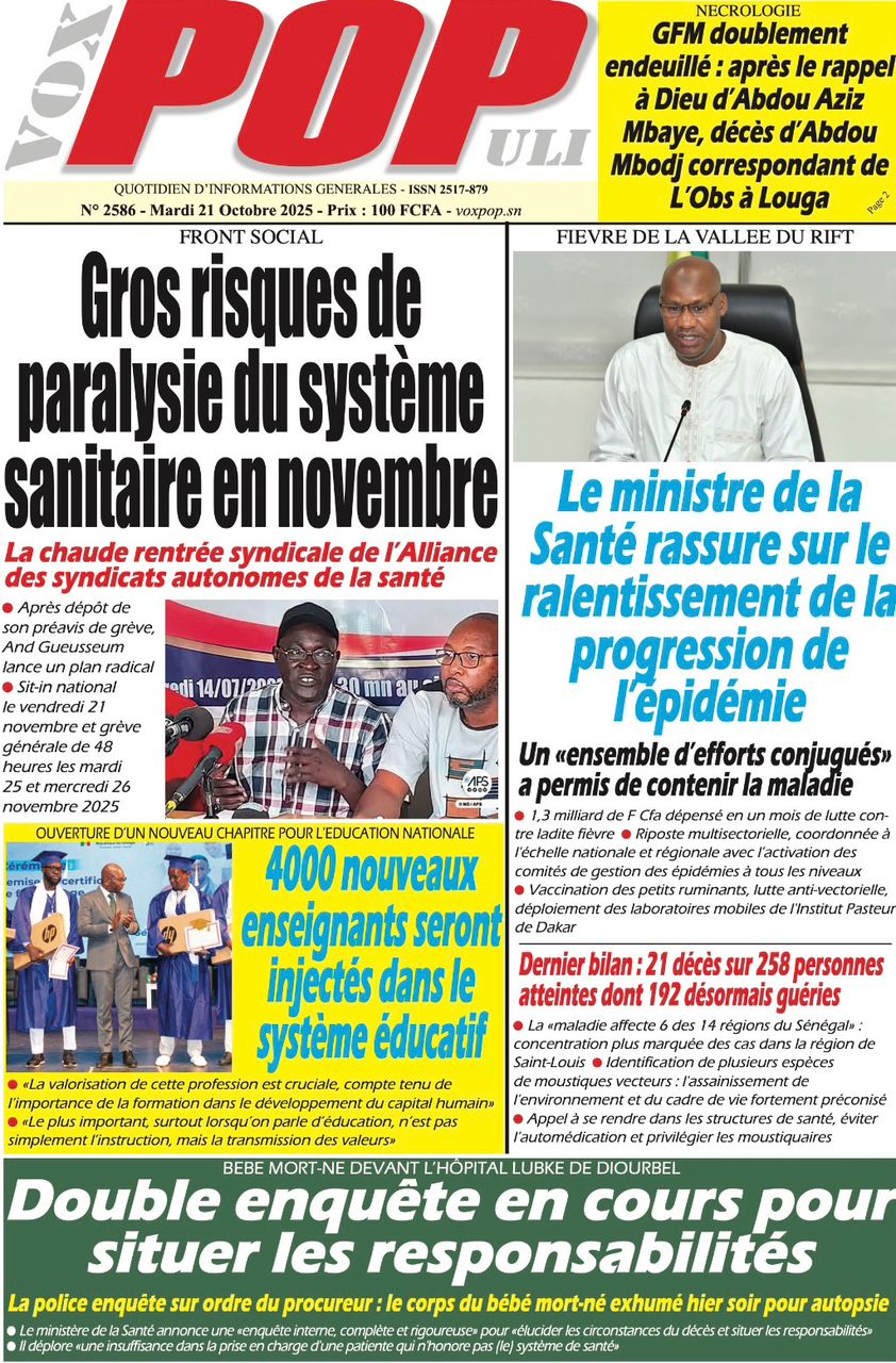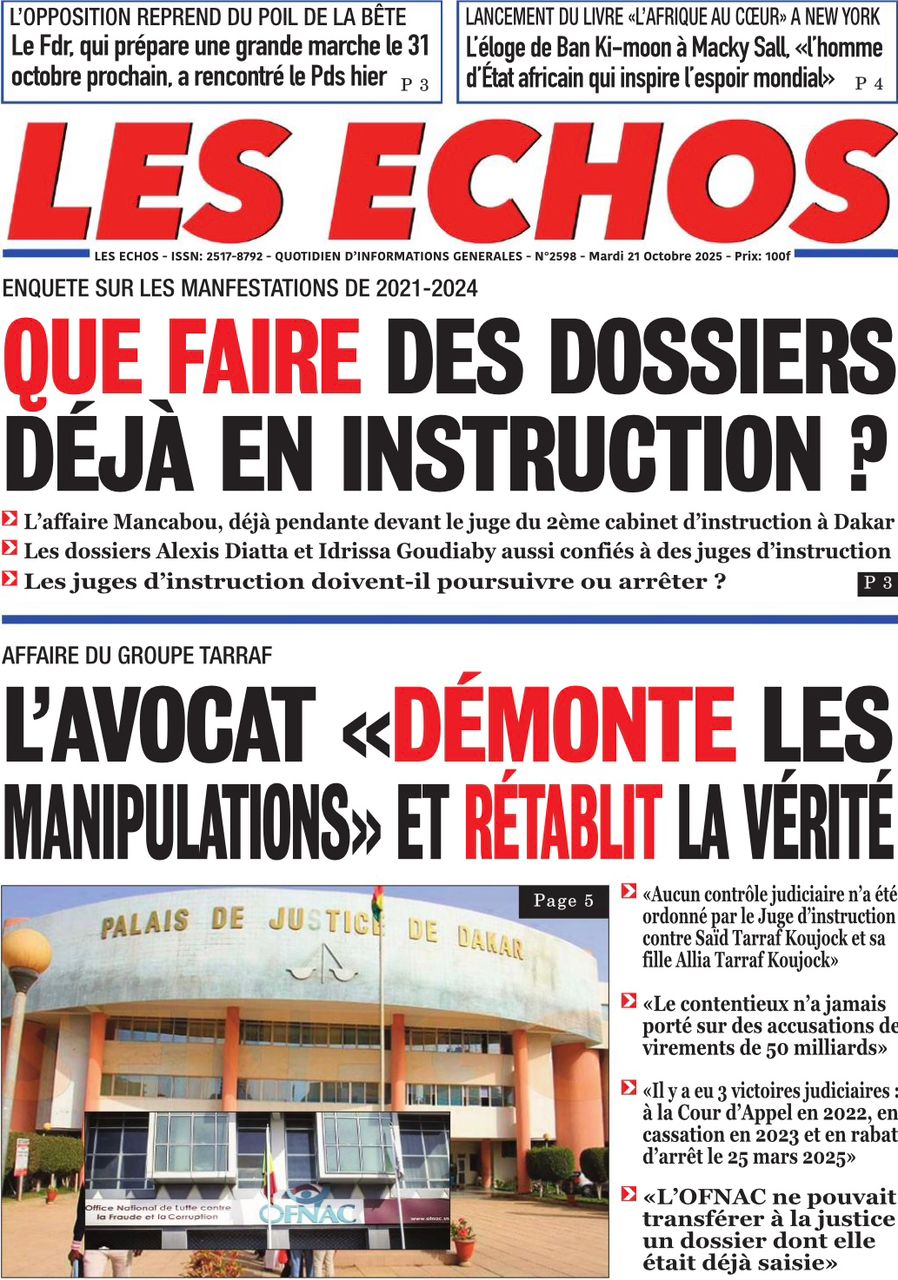 Découvrez les Unes des journaux sénégalais du mardi 21 octobre 2025