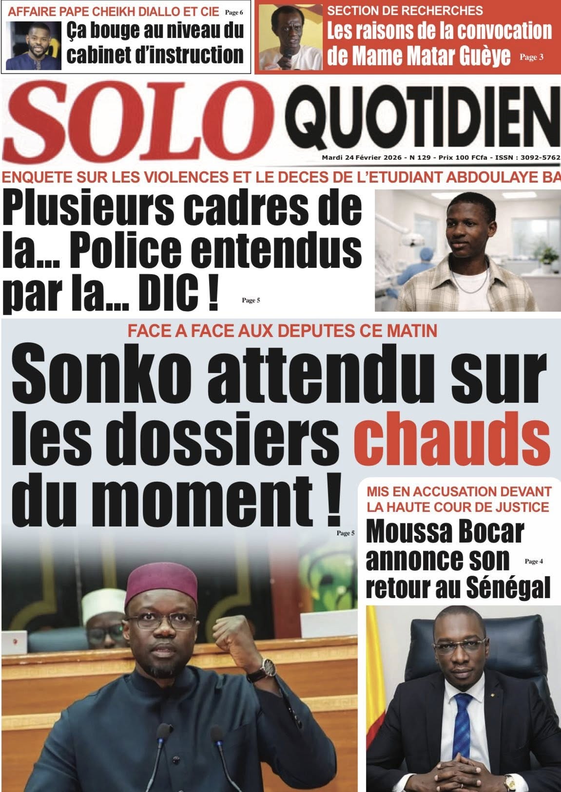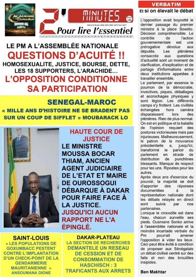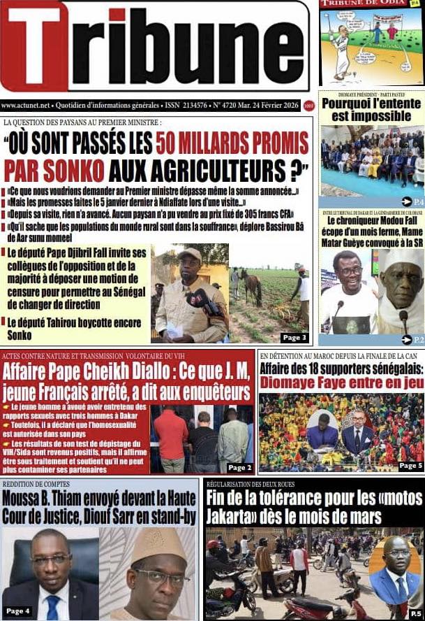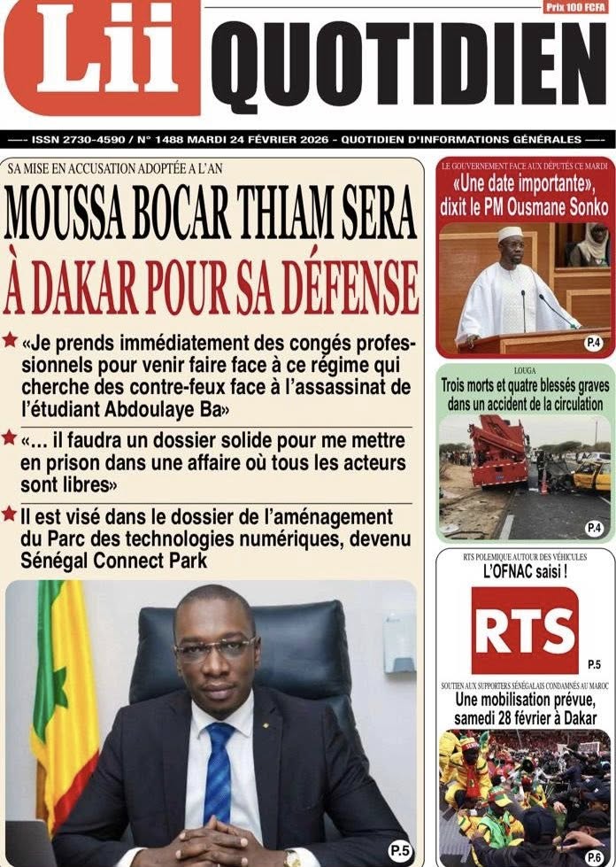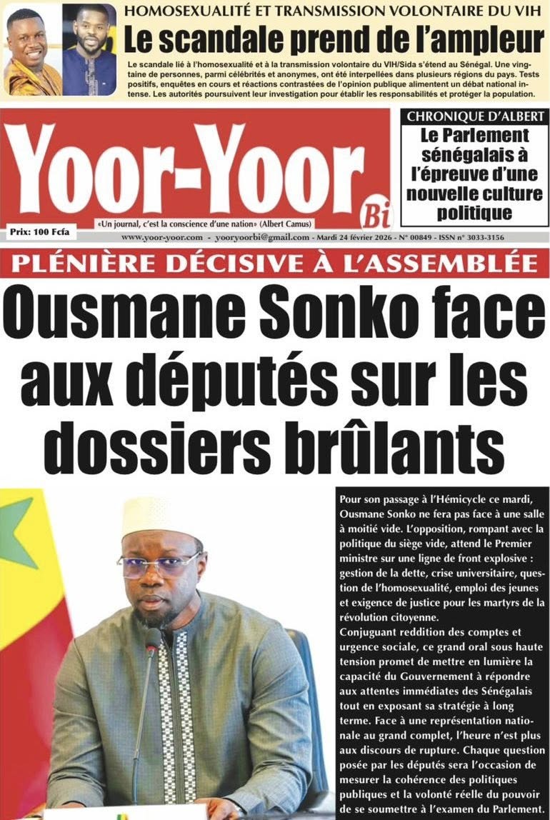 Découvrez les Unes des journaux sénégalais du mardi 24 février 2026