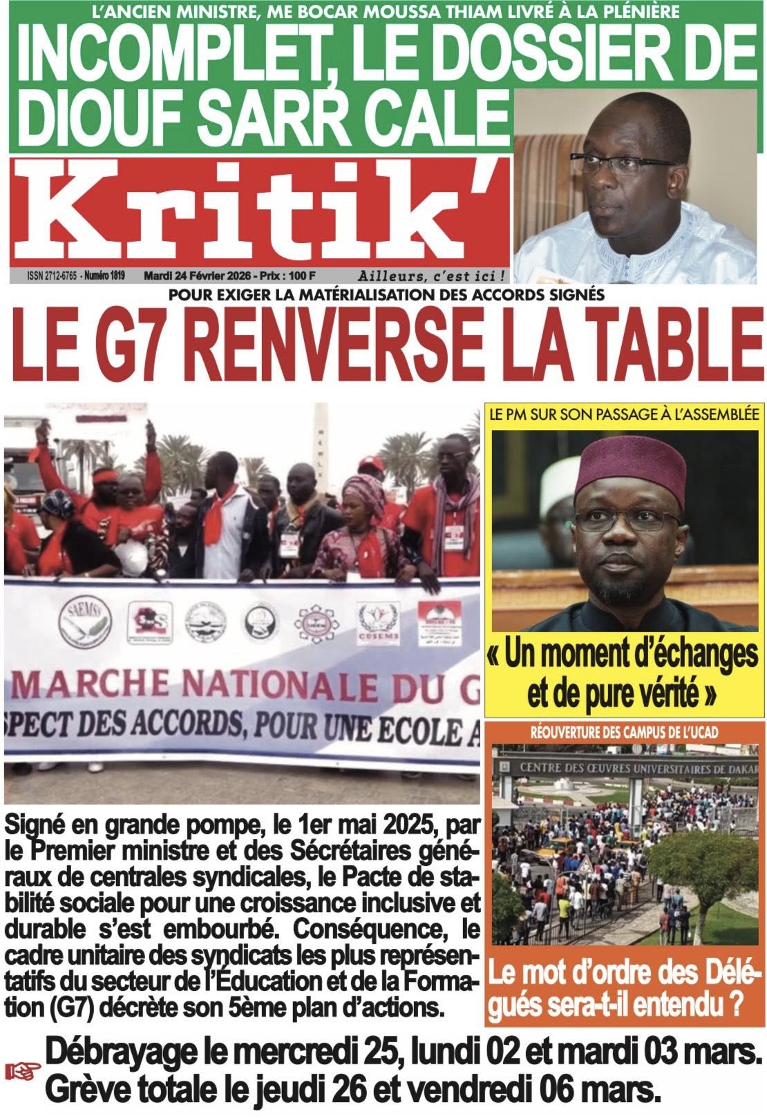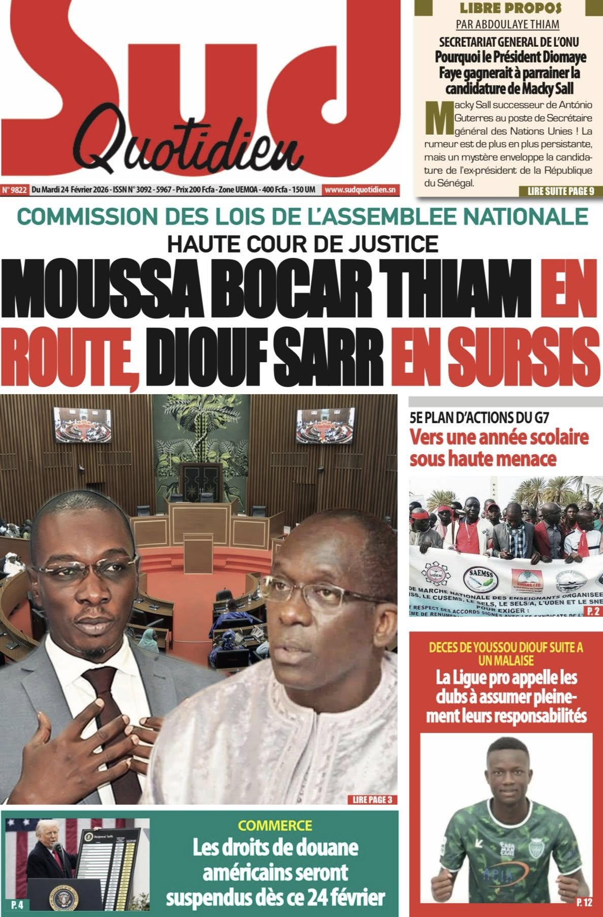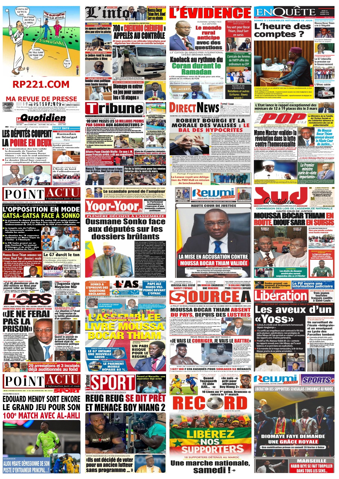 Découvrez les Unes des journaux sénégalais du mardi 24 février 2026