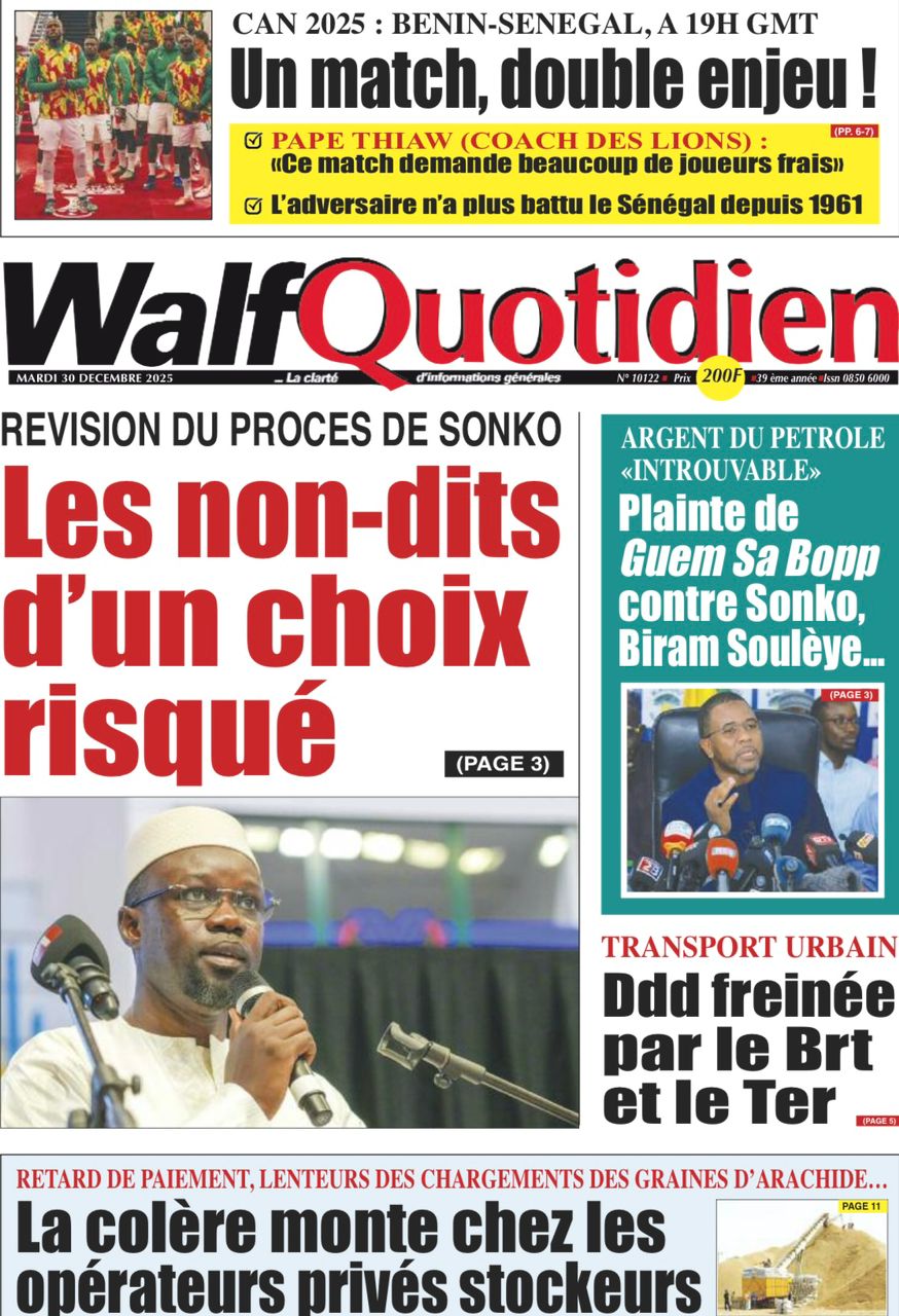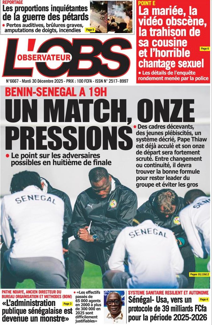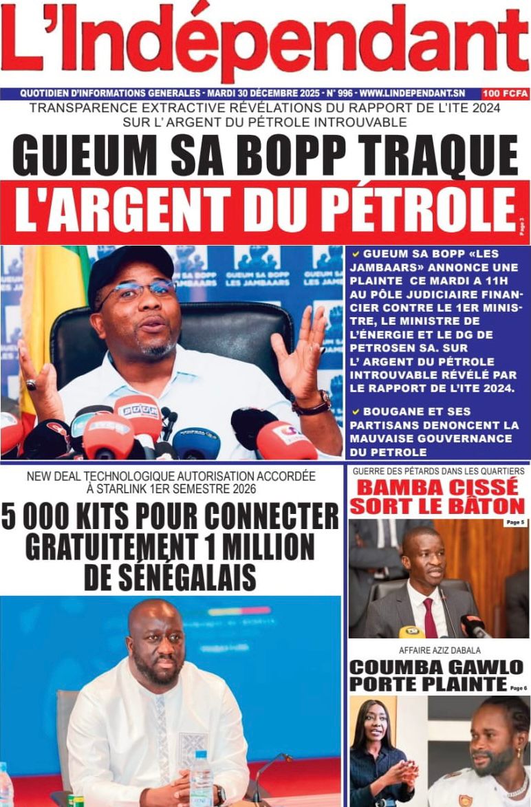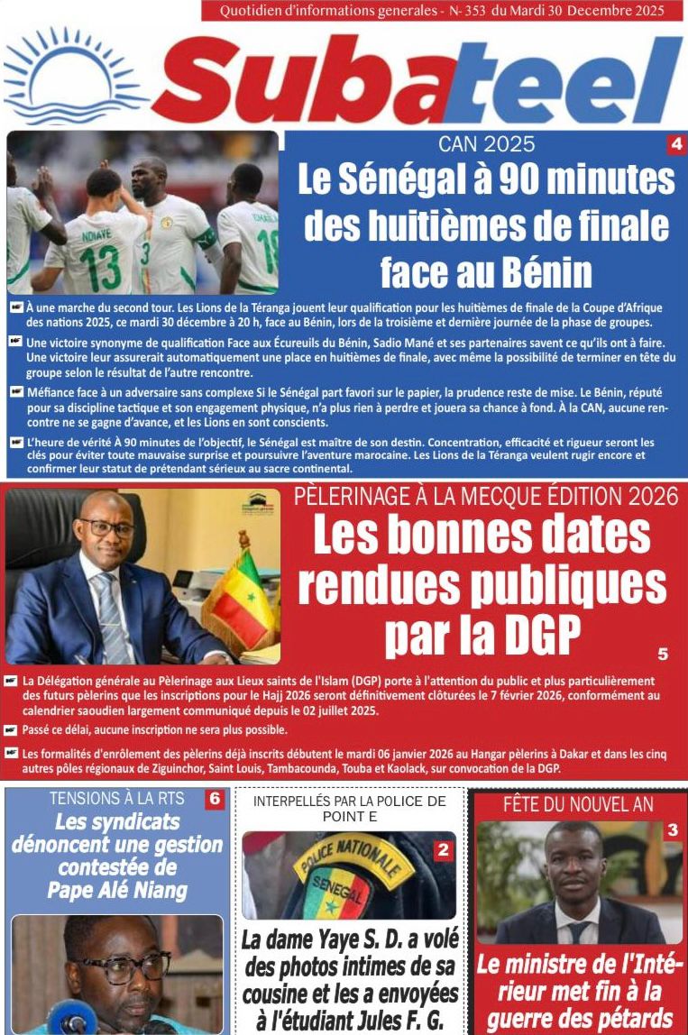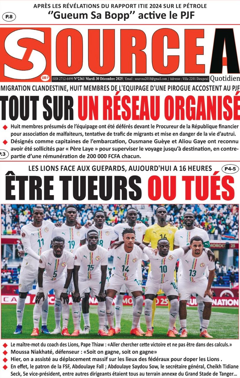 Découvrez les Unes des journaux sénégalais du mardi 30 décembre 2025