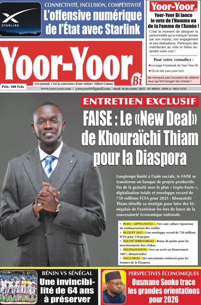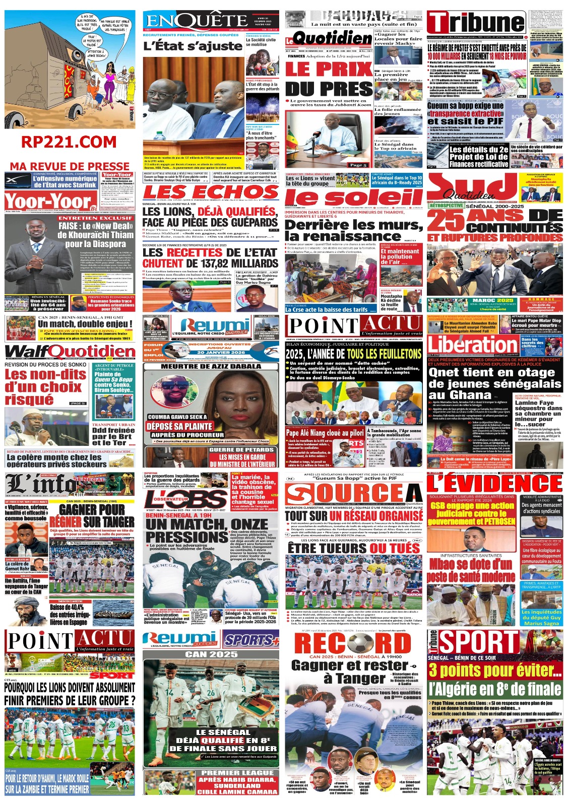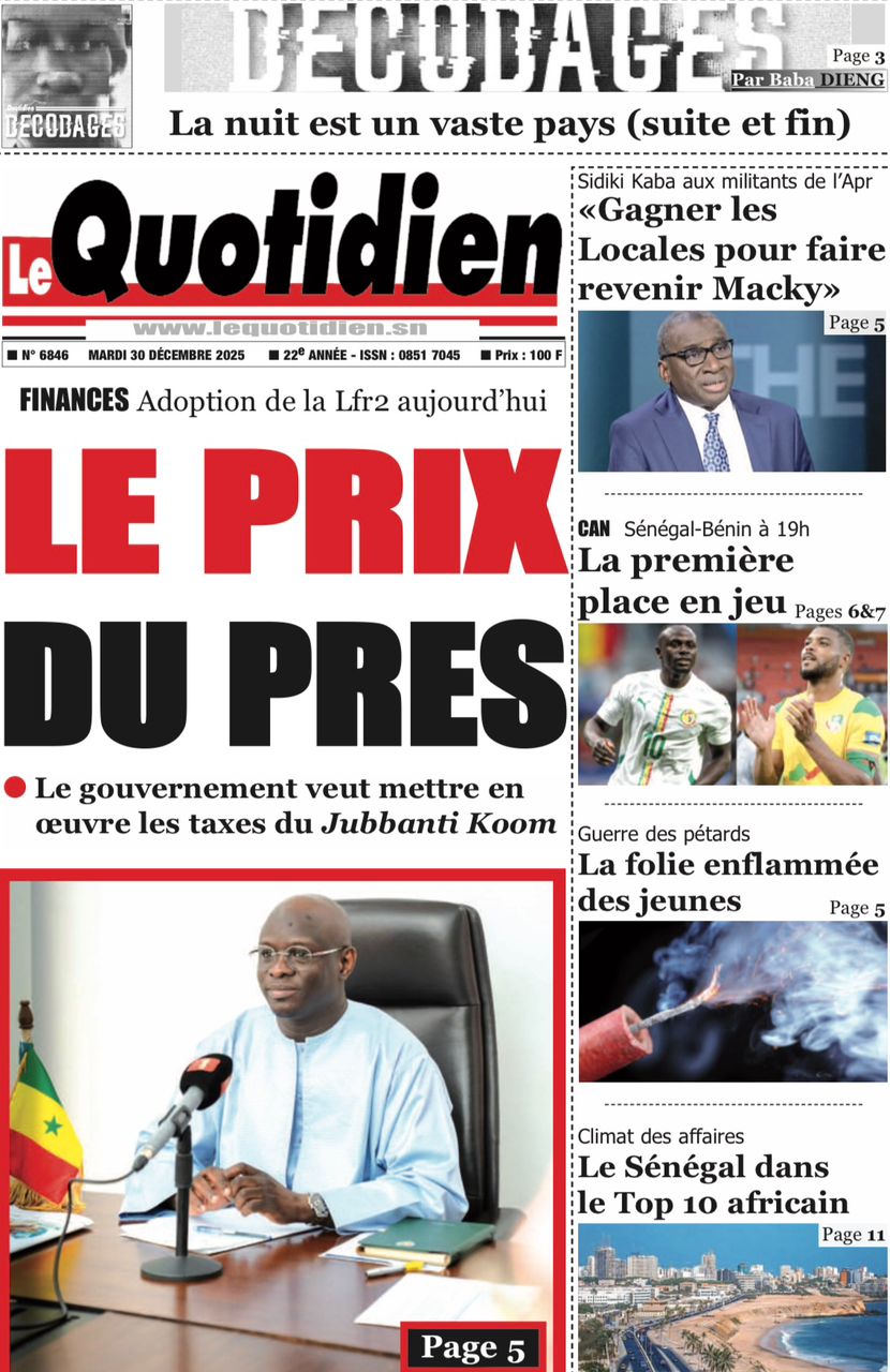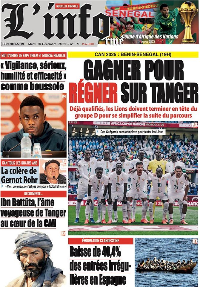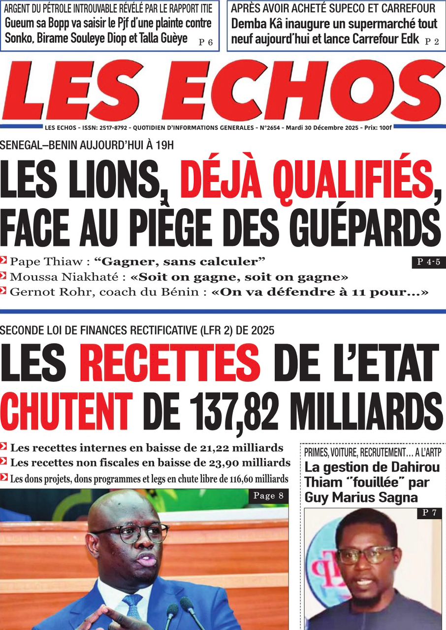 Découvrez les Unes des journaux sénégalais du mardi 30 décembre 2025