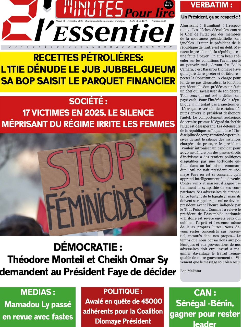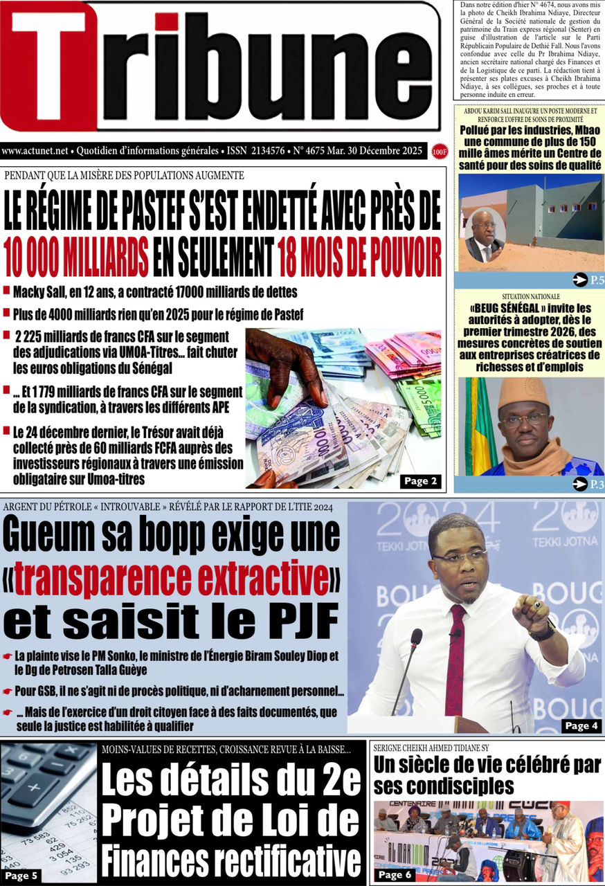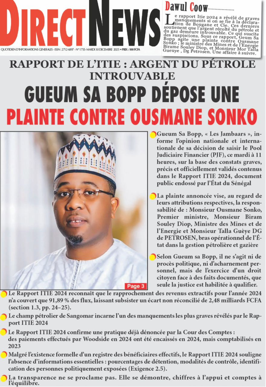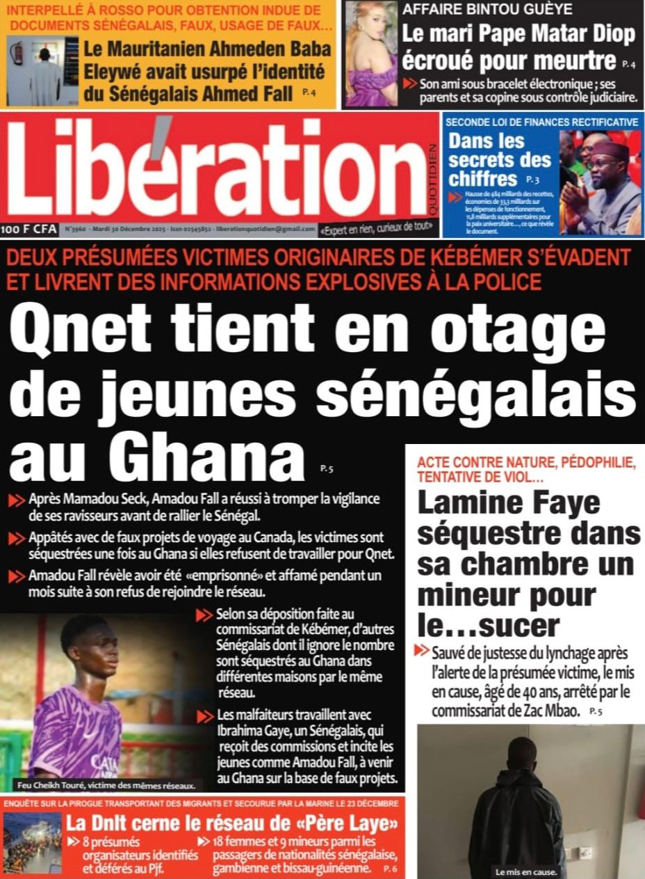 Découvrez les Unes des journaux sénégalais du mardi 30 décembre 2025
