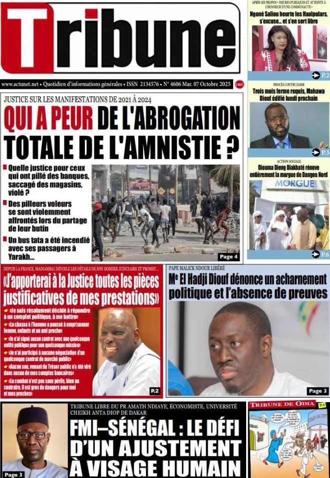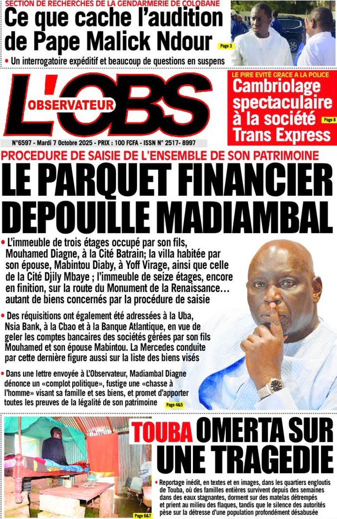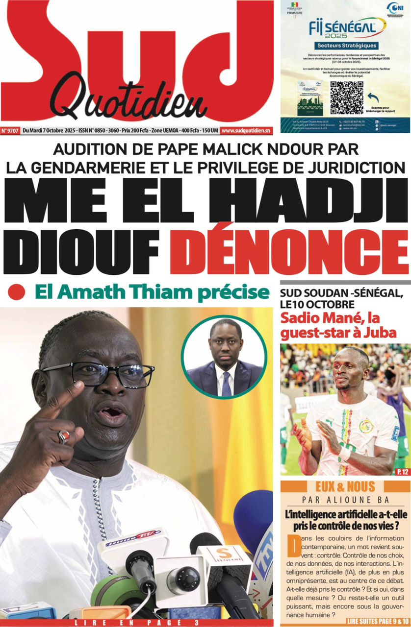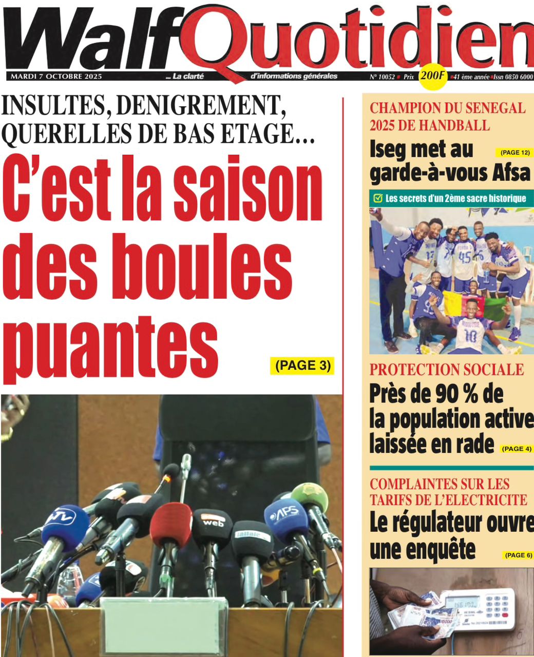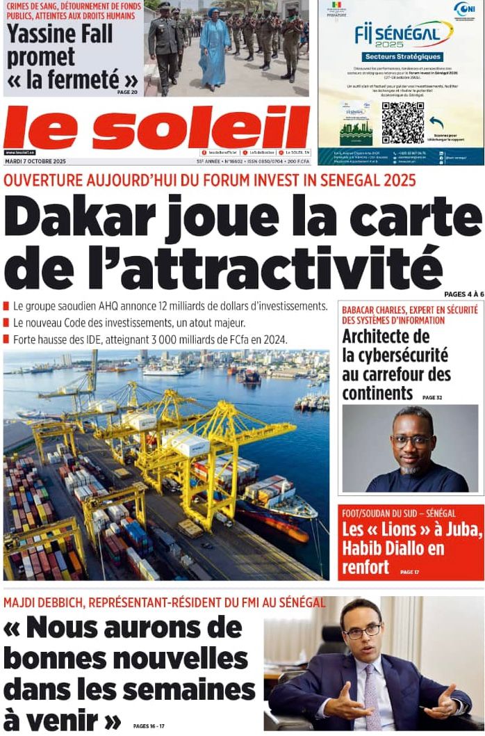 Découvrez les Unes des journaux sénégalais du mardi 7 octobre 2025