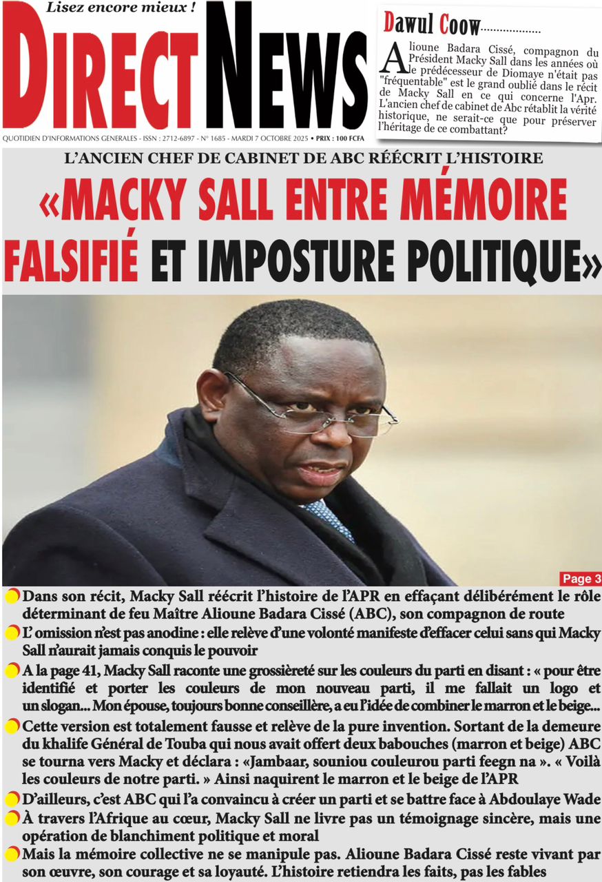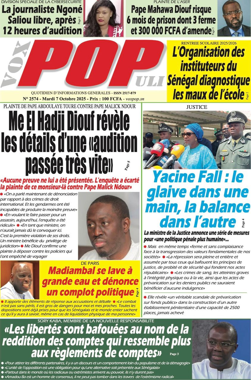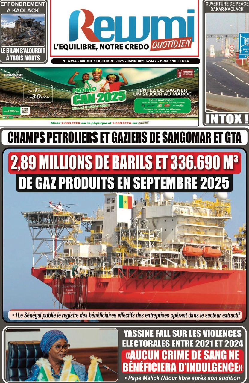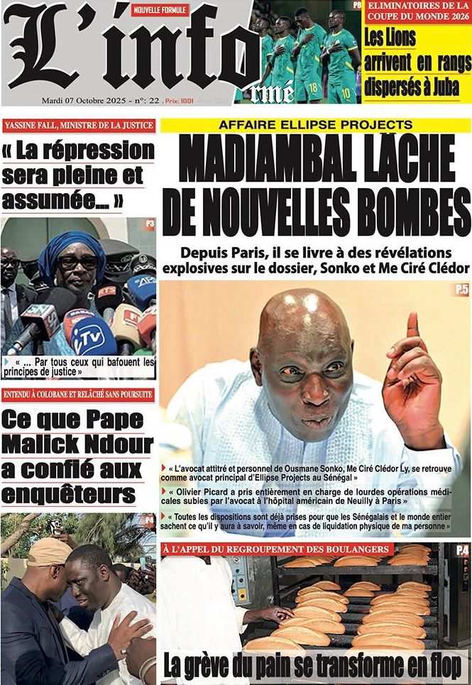 Découvrez les Unes des journaux sénégalais du mardi 7 octobre 2025