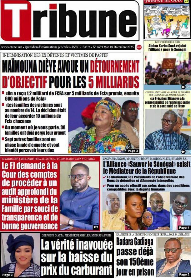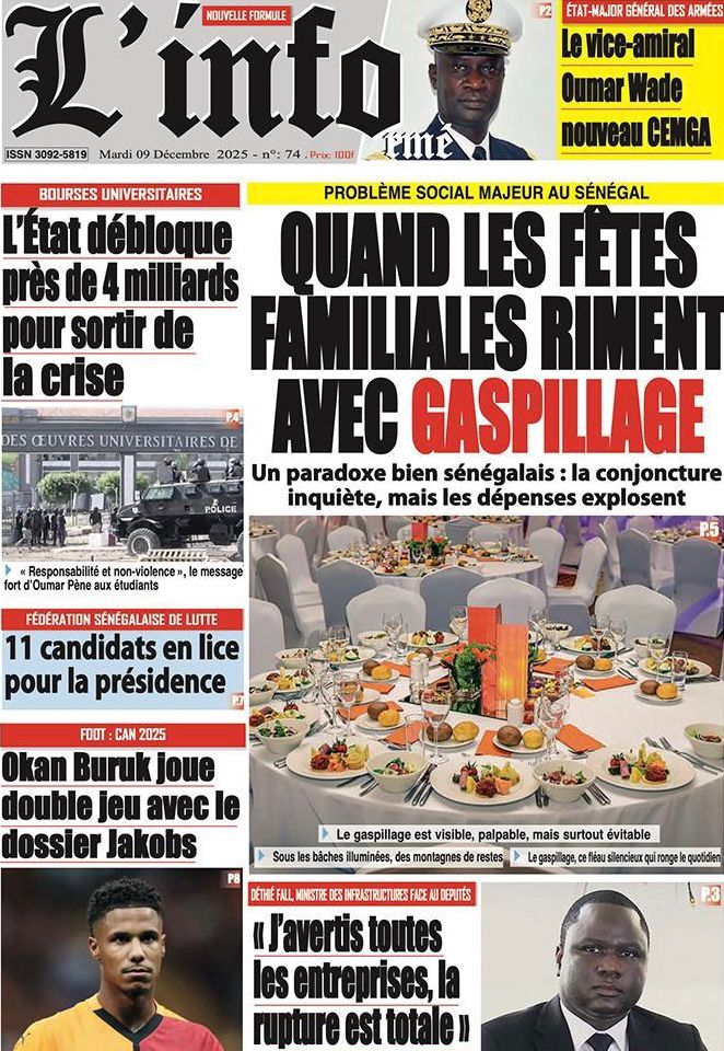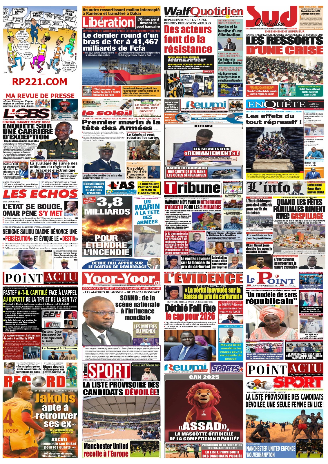 Découvrez les Unes des journaux sénégalais du mardi 9 décembre 2025