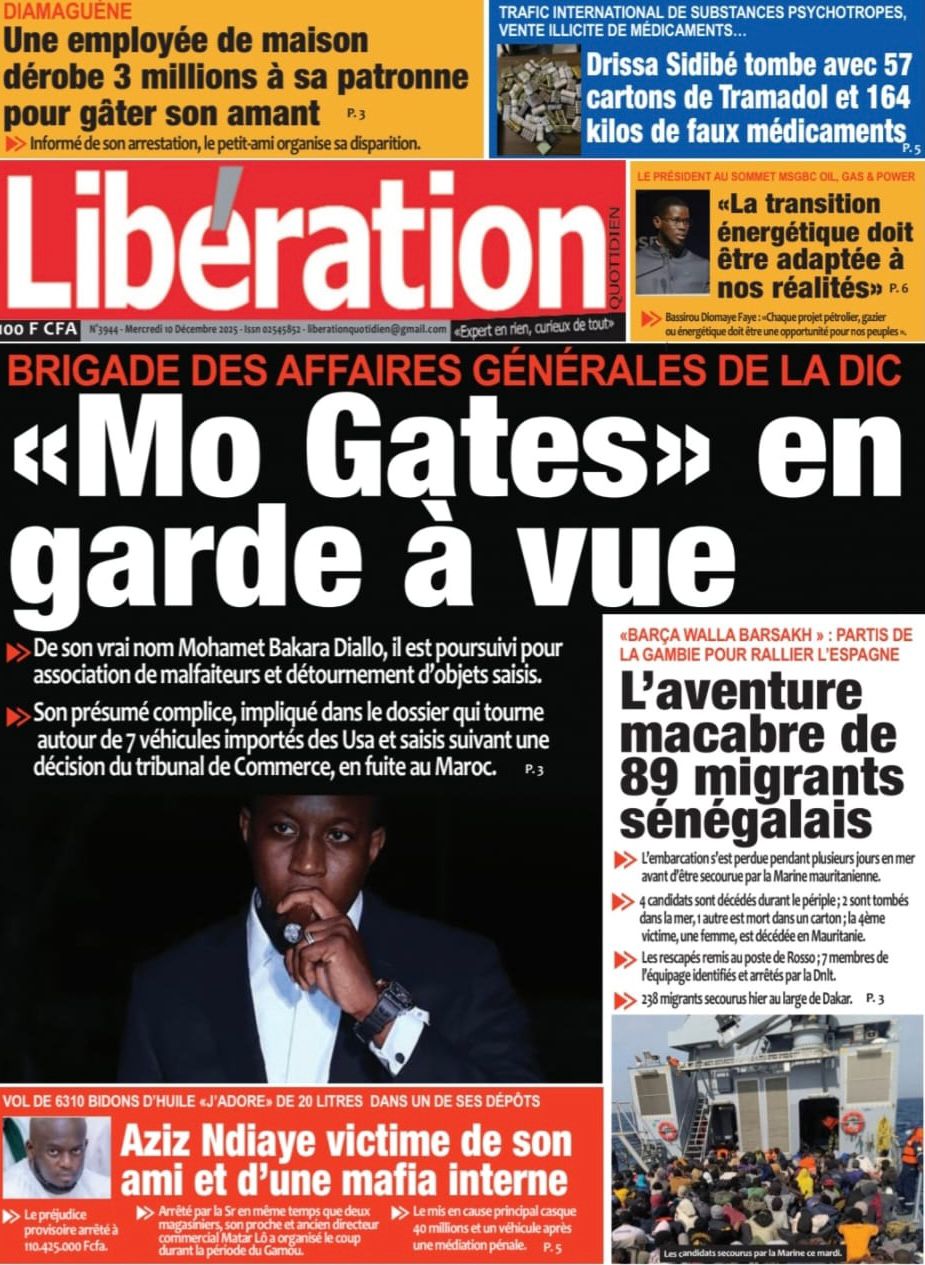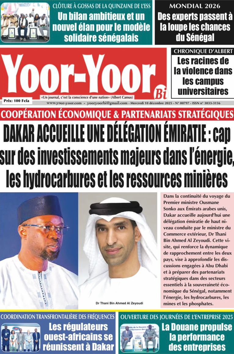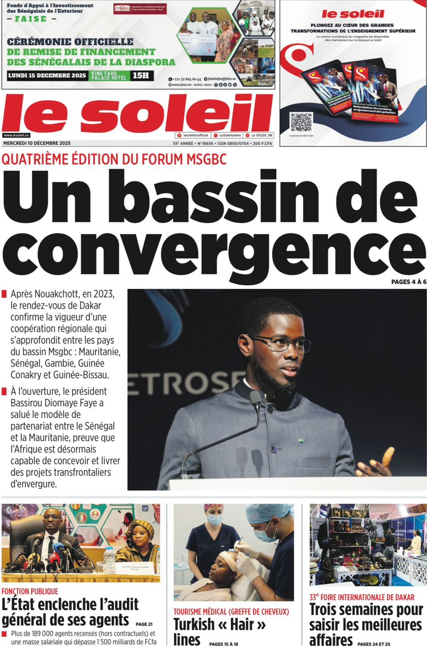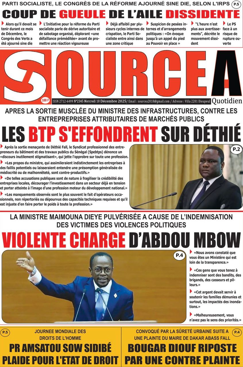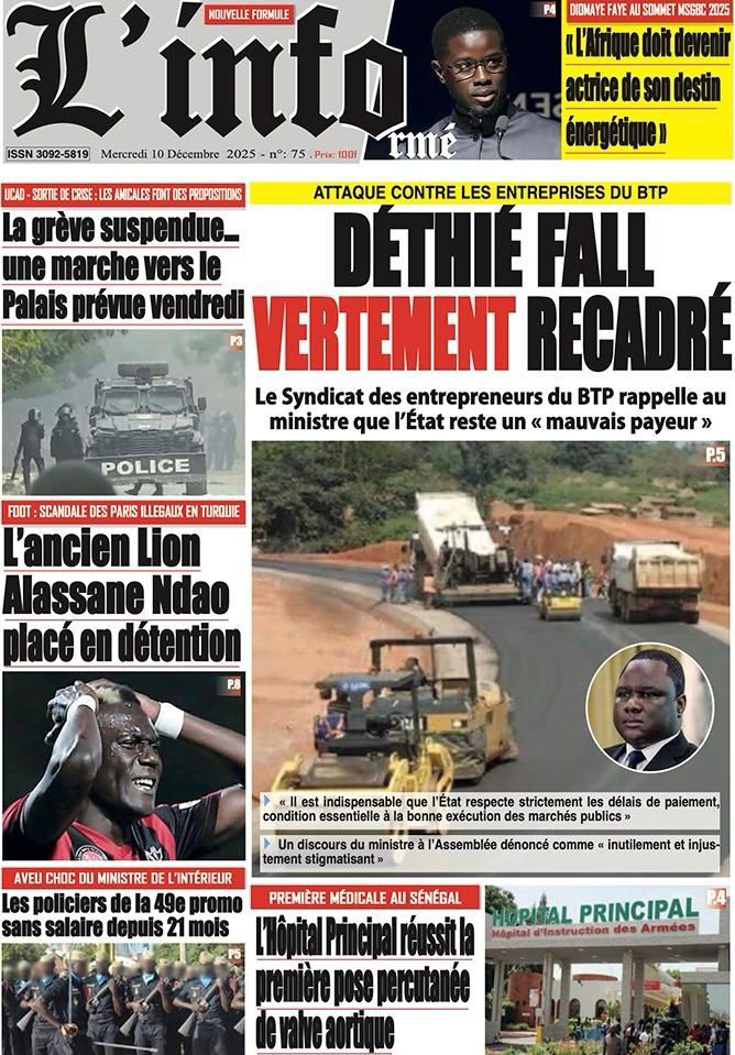 Découvrez les Unes des journaux sénégalais du mercredi 10 décembre 2025