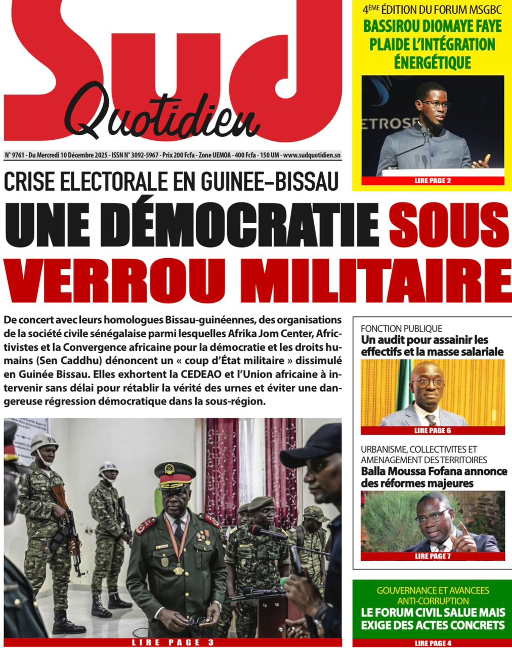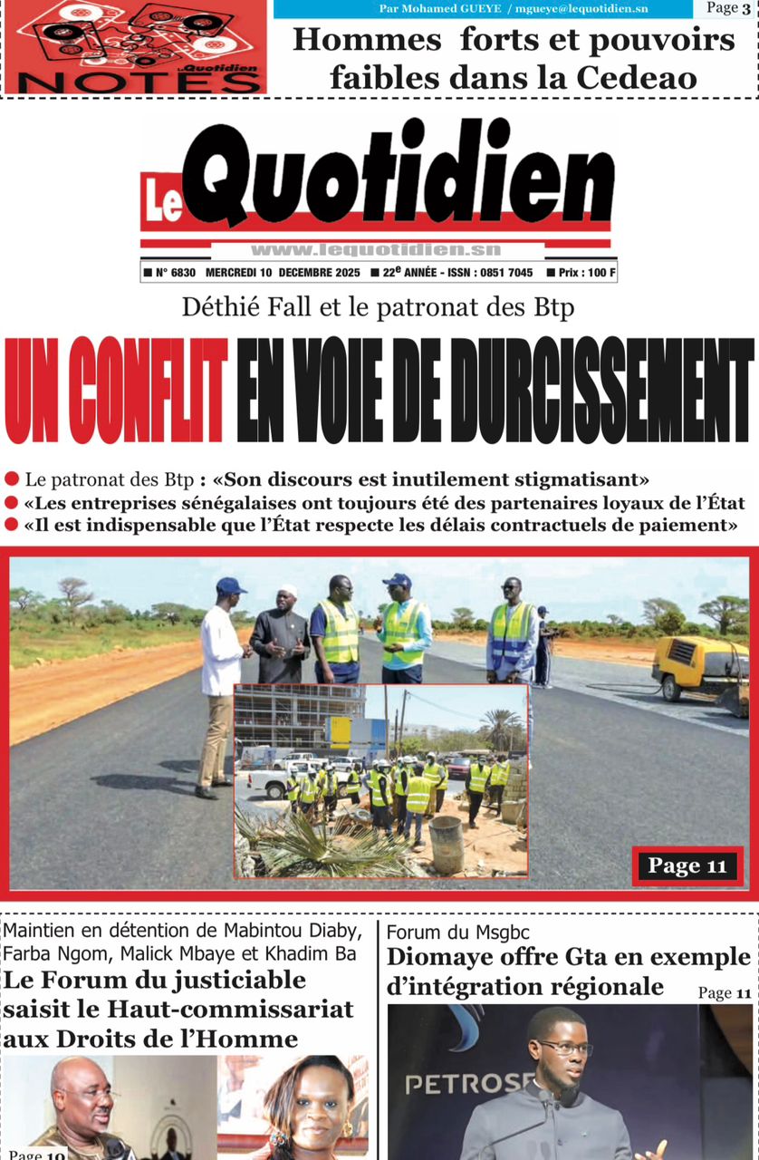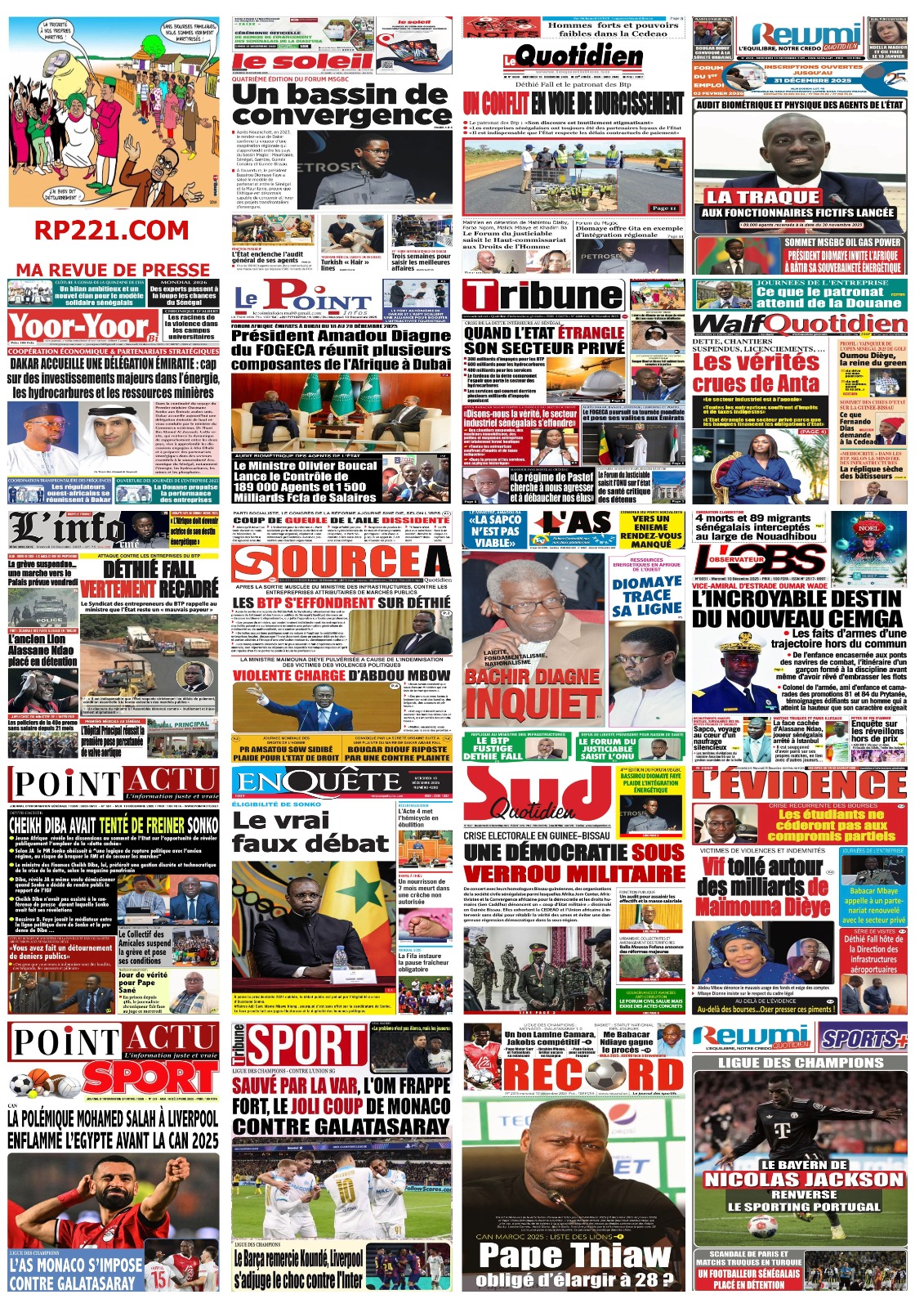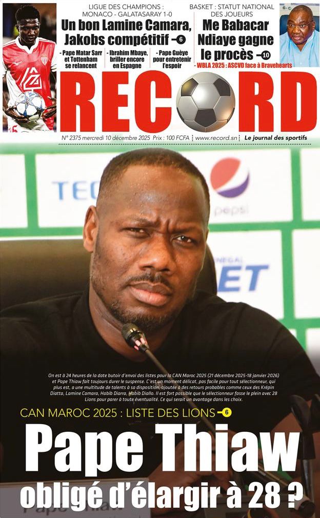 Découvrez les Unes des journaux sénégalais du mercredi 10 décembre 2025