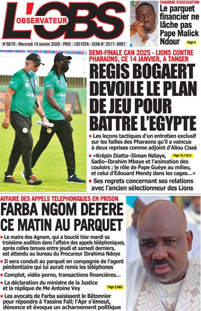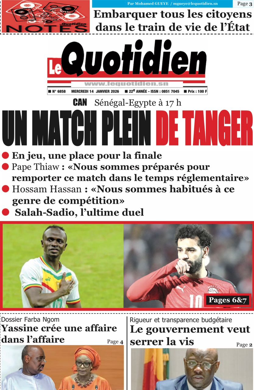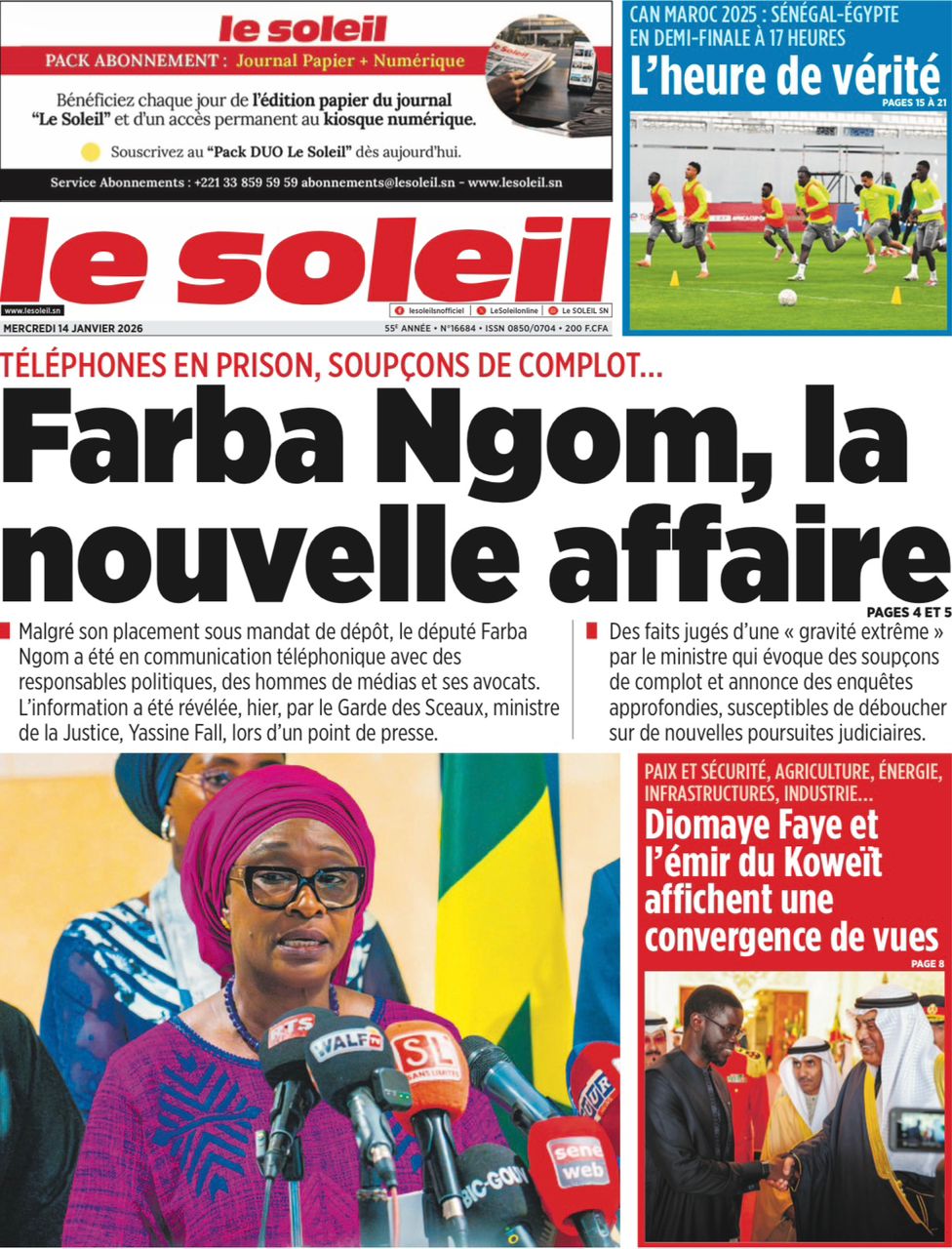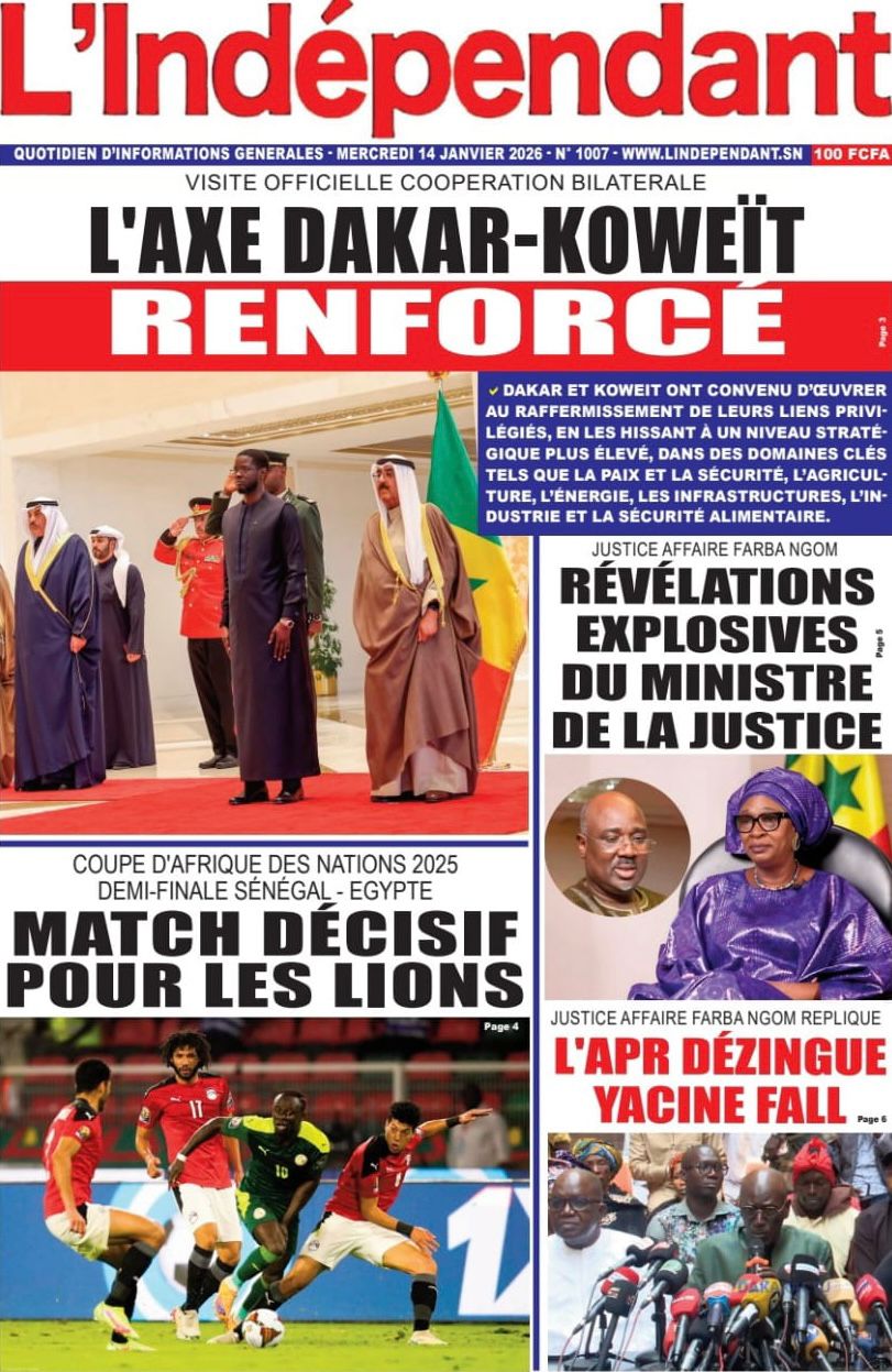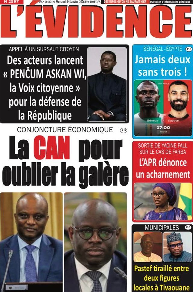 Découvrez les Unes des journaux sénégalais du mercredi 14 janvier 2026