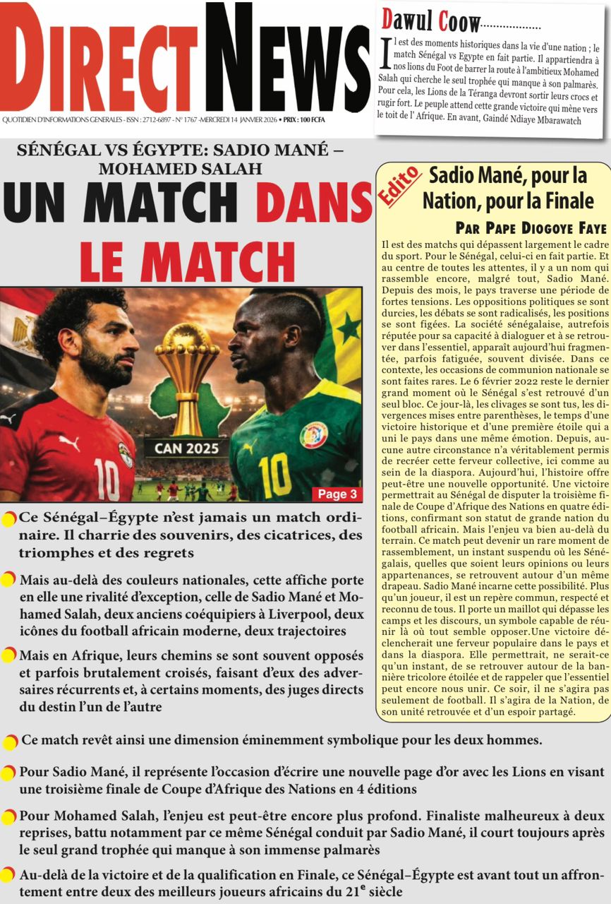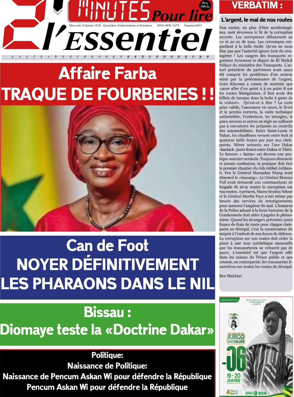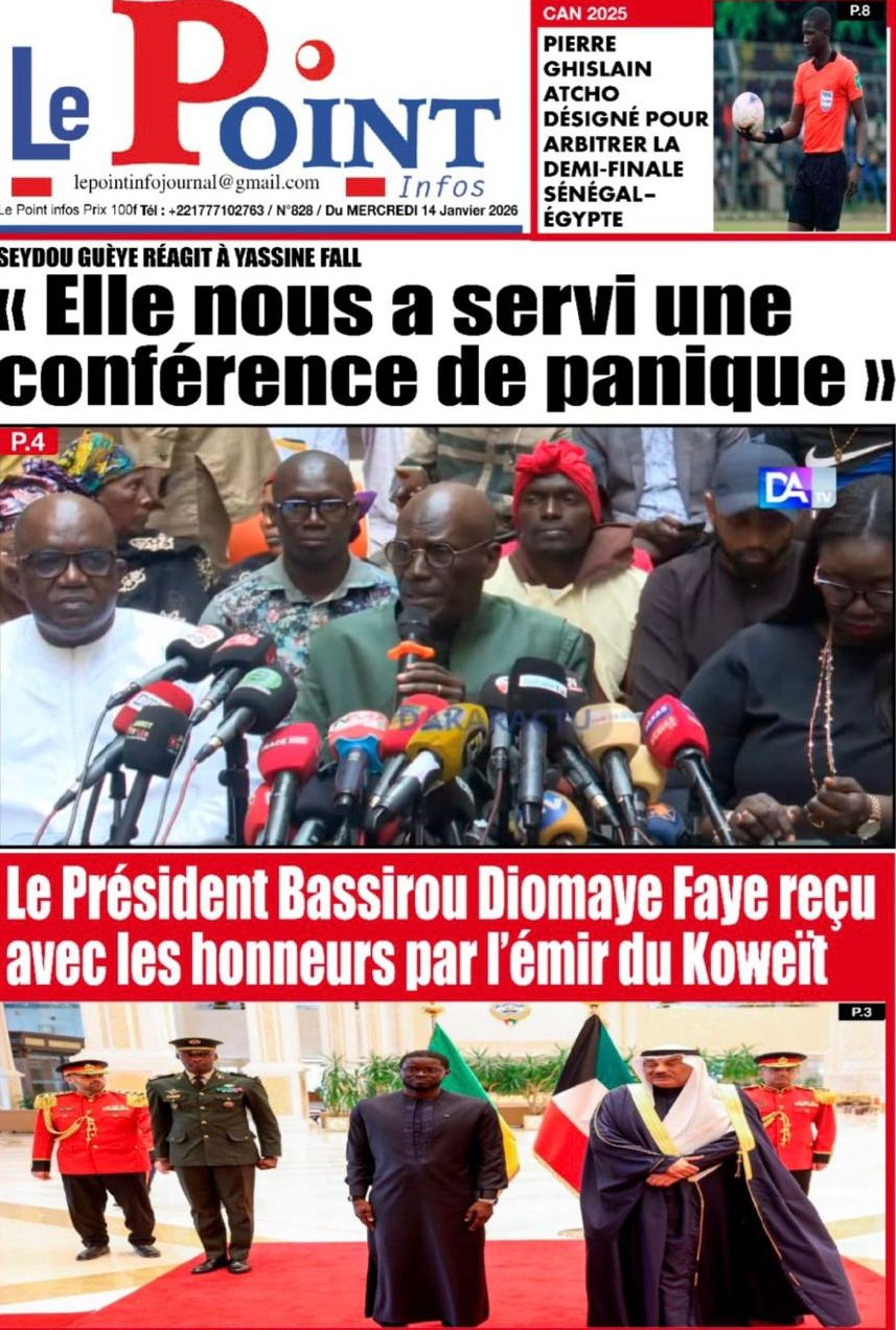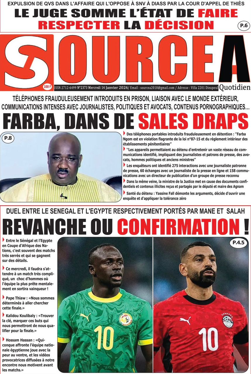 Découvrez les Unes des journaux sénégalais du mercredi 14 janvier 2026