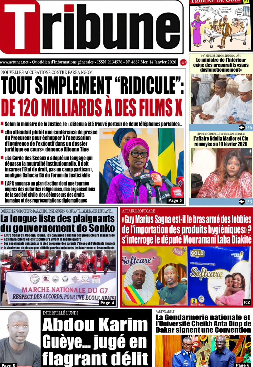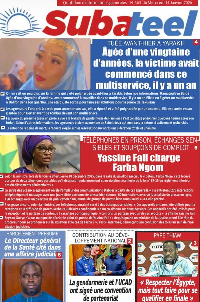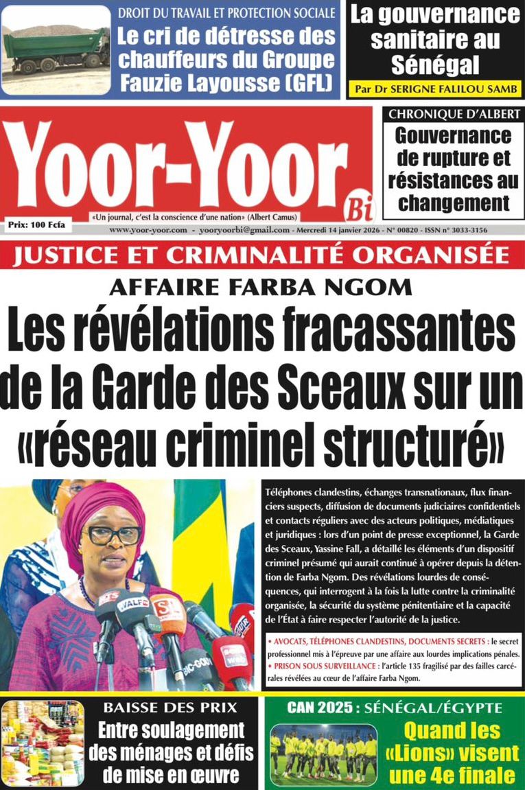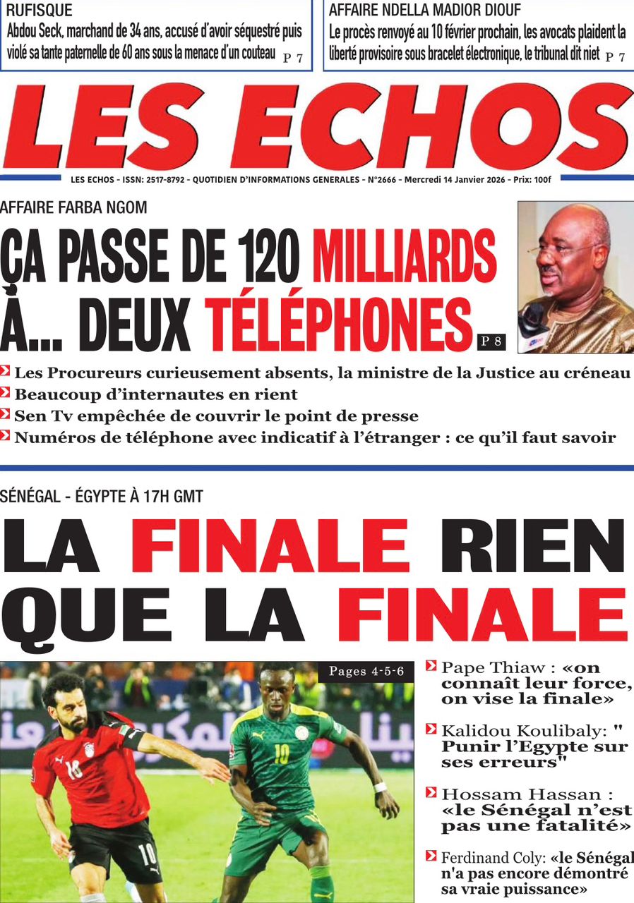 Découvrez les Unes des journaux sénégalais du mercredi 14 janvier 2026