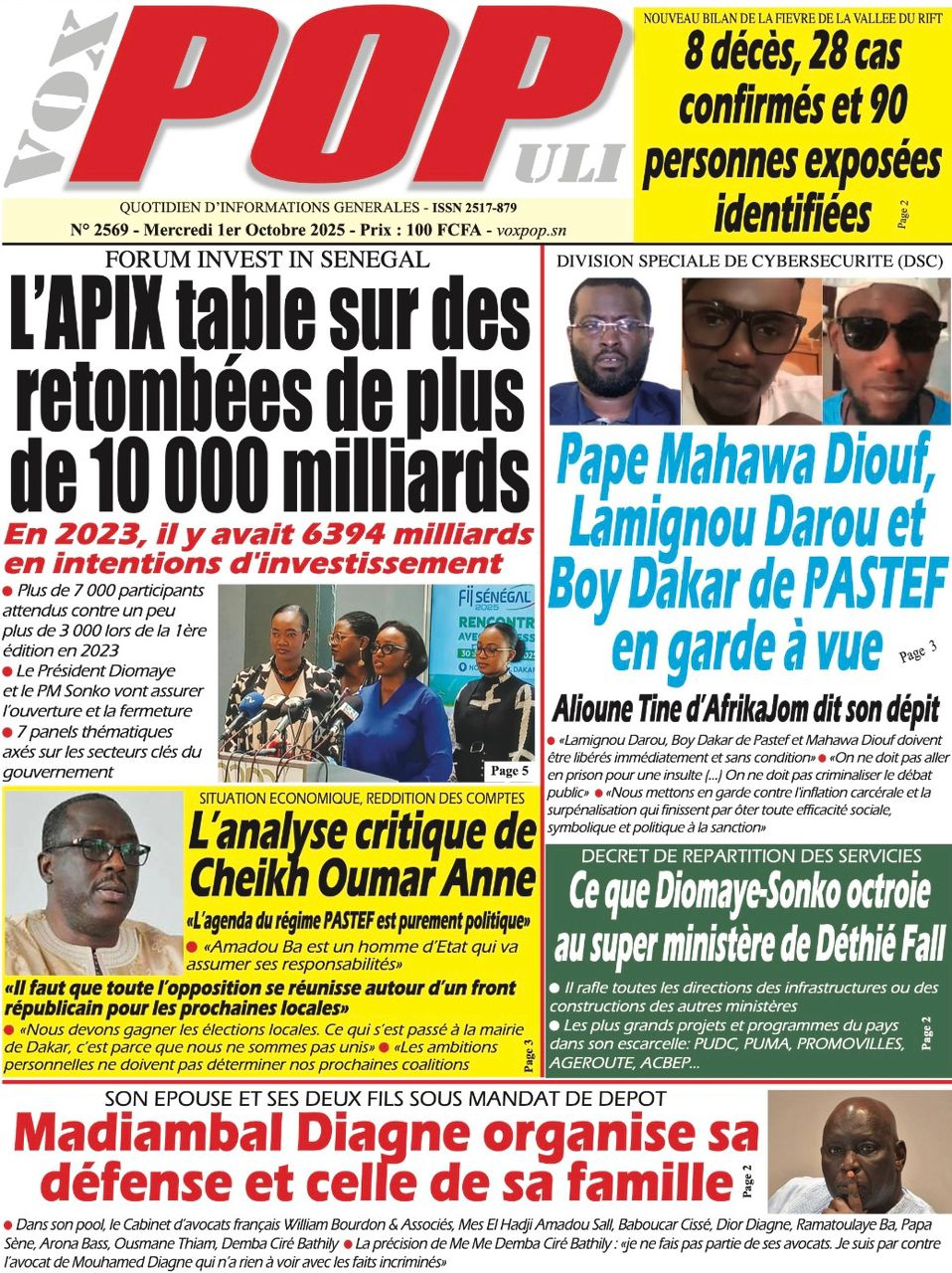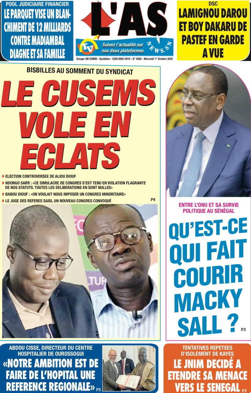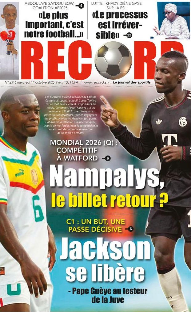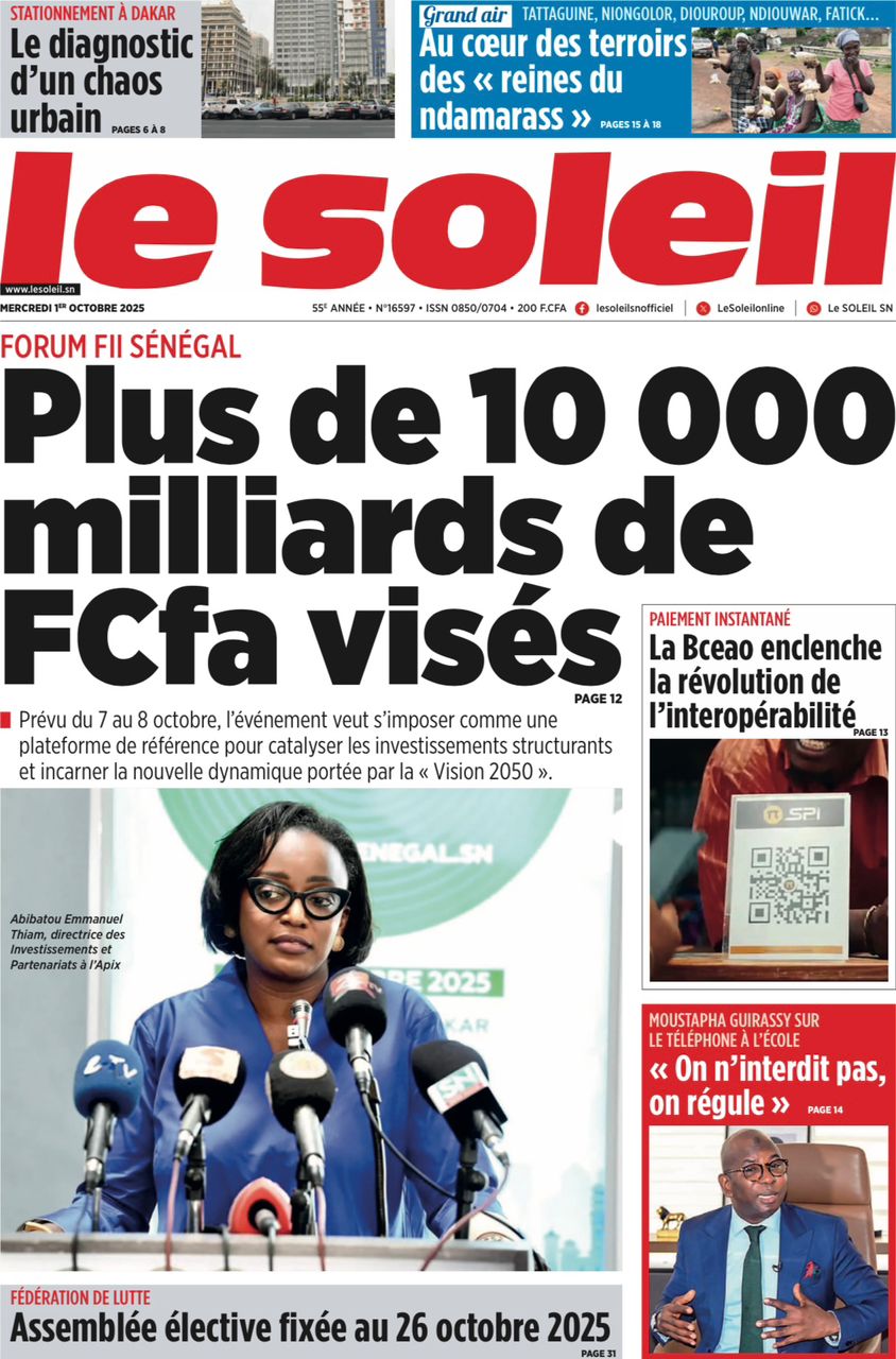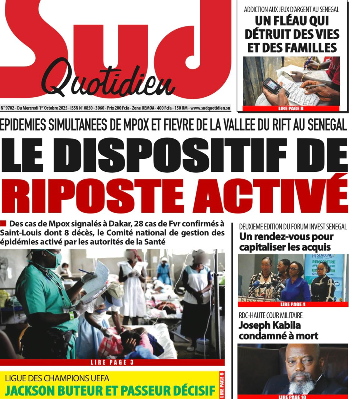 Découvrez les Unes des journaux sénégalais du mercredi 1er octobre 2025