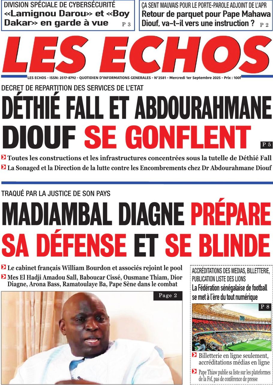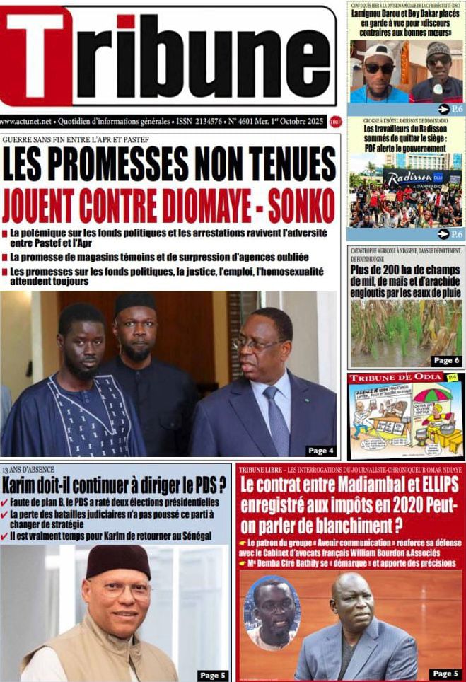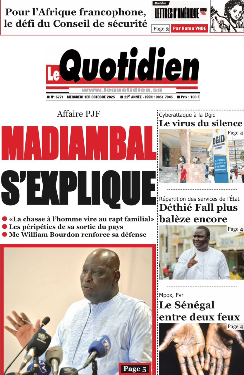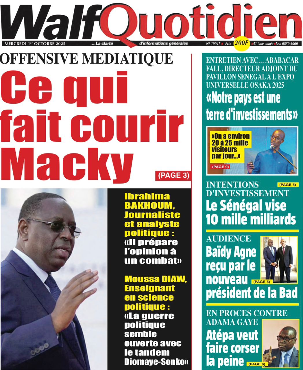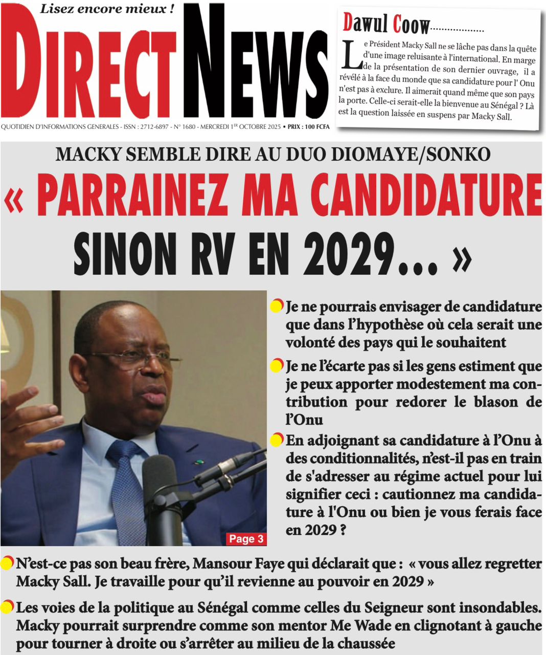 Découvrez les Unes des journaux sénégalais du mercredi 1er octobre 2025