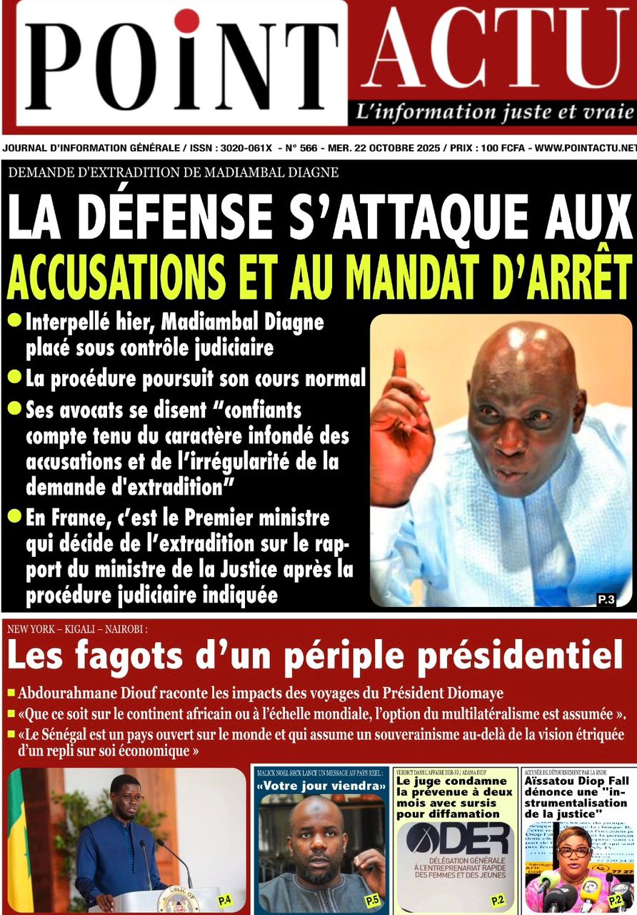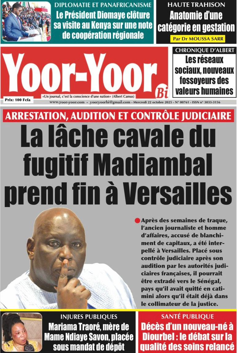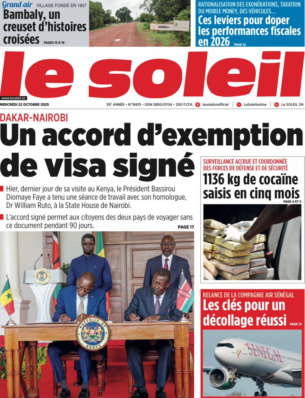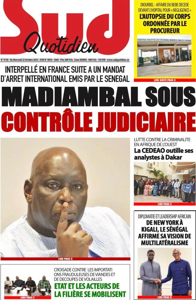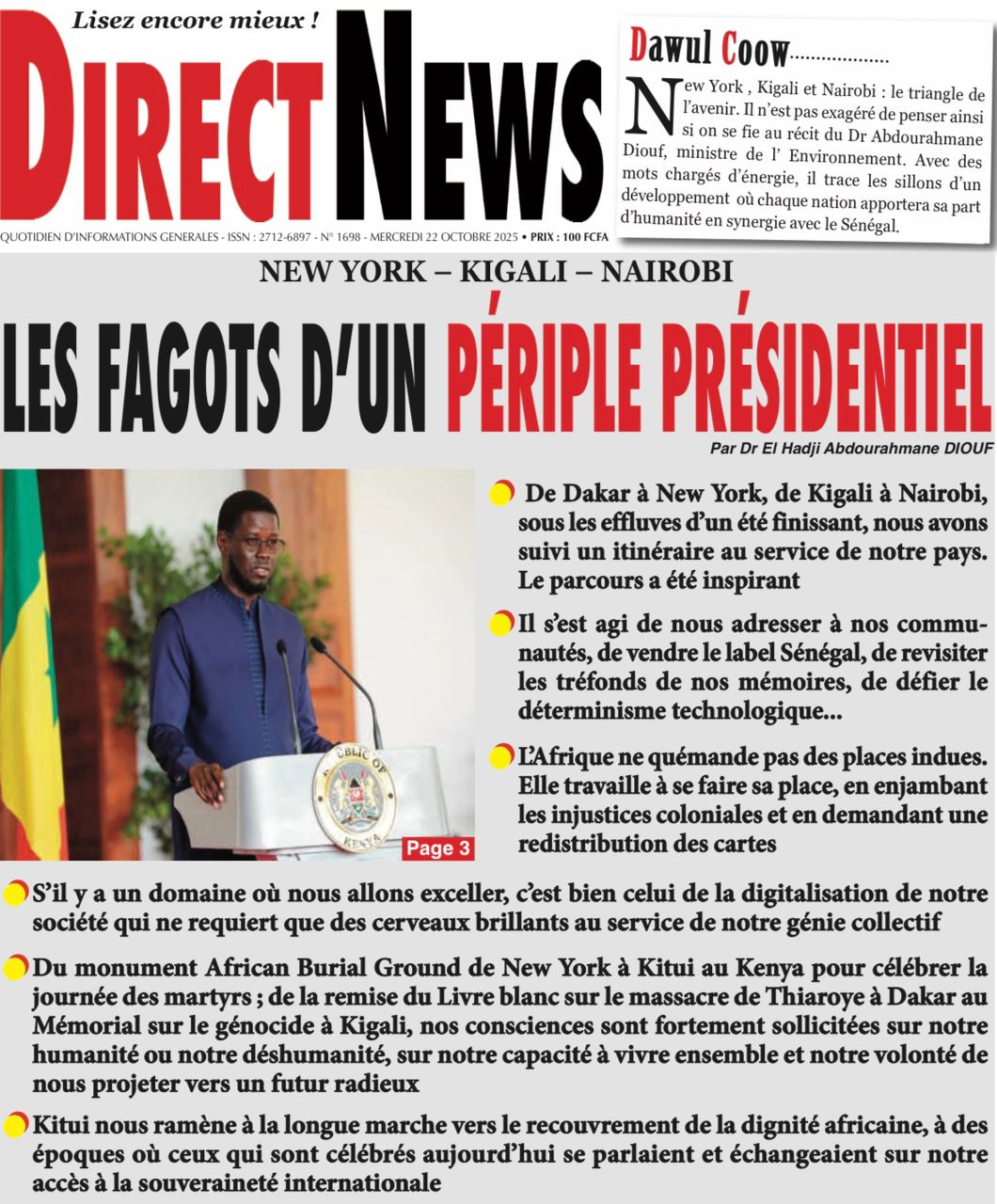 Découvrez les Unes des journaux sénégalais du mercredi 22 octobre 2025