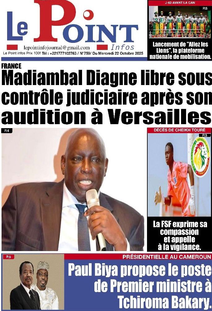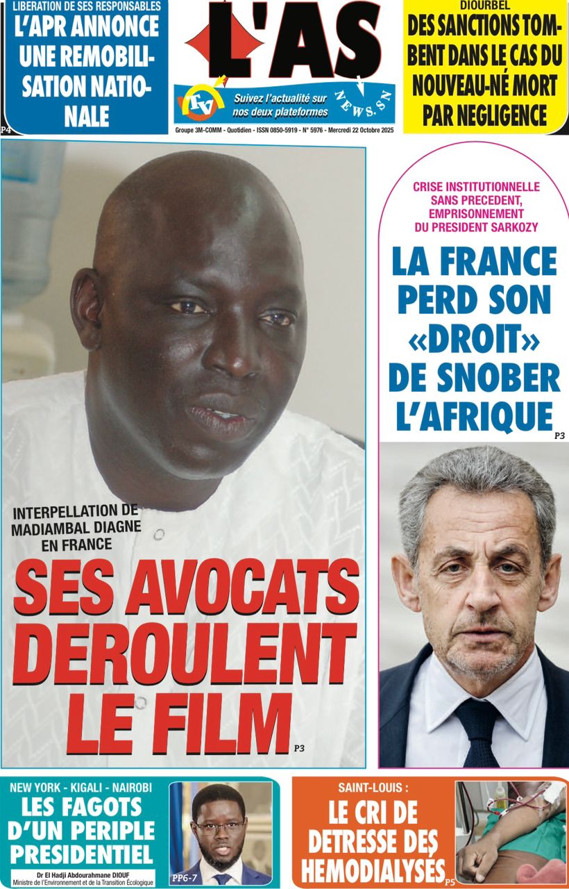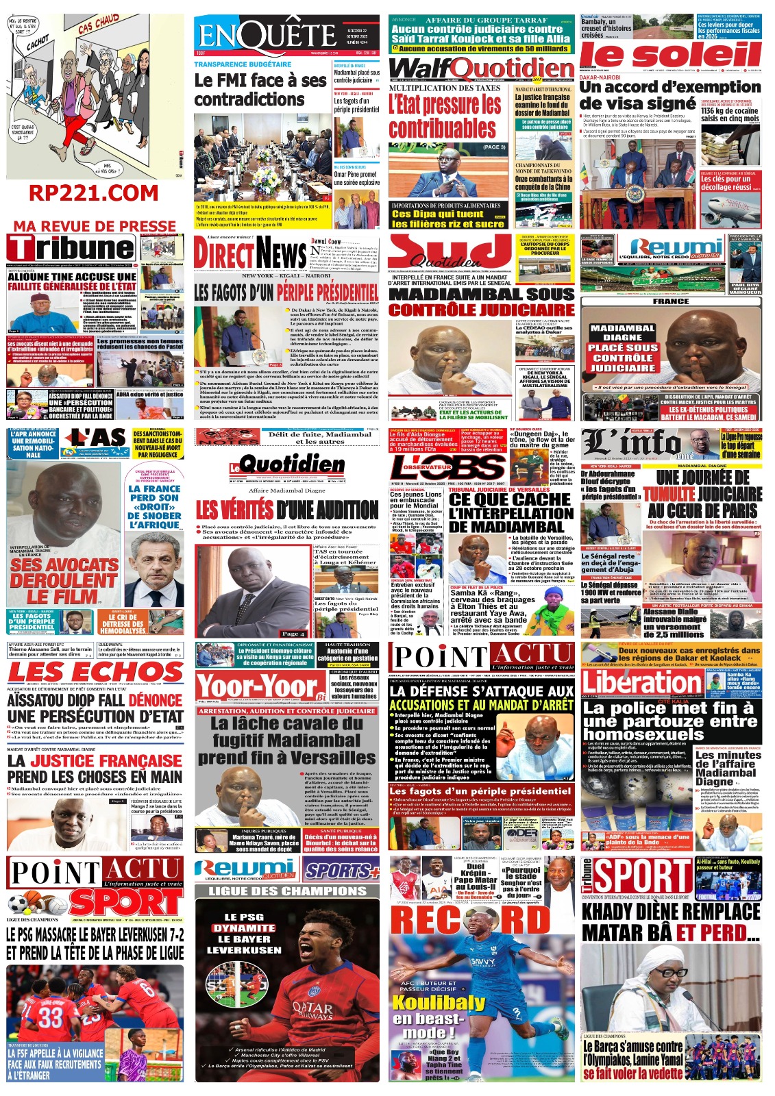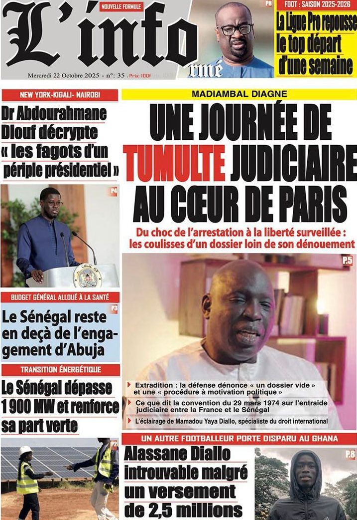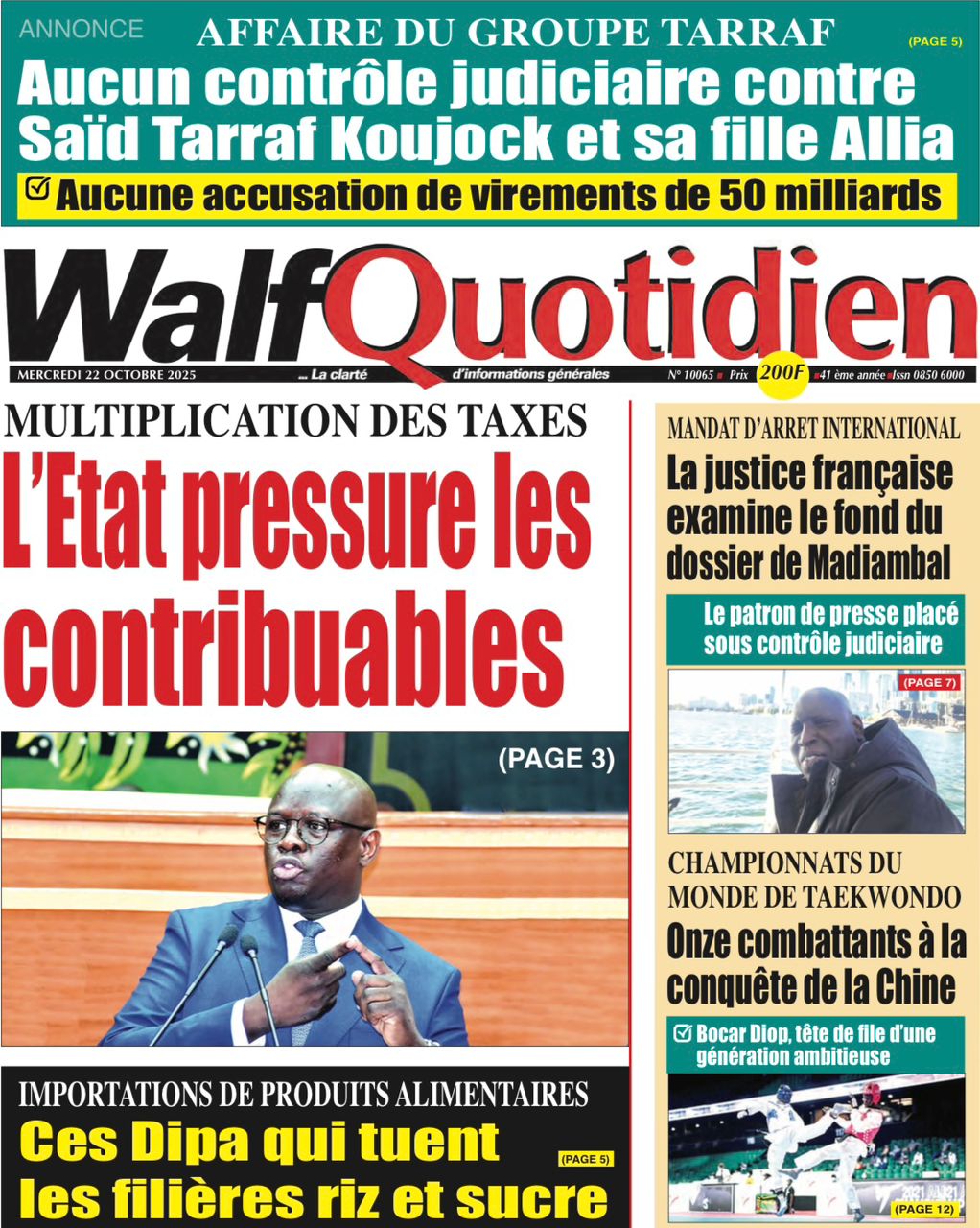 Découvrez les Unes des journaux sénégalais du mercredi 22 octobre 2025