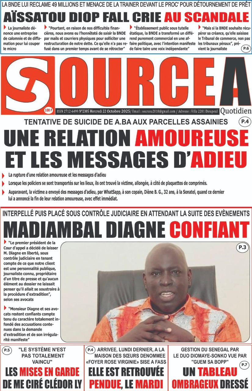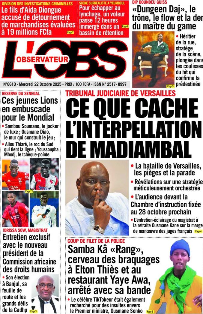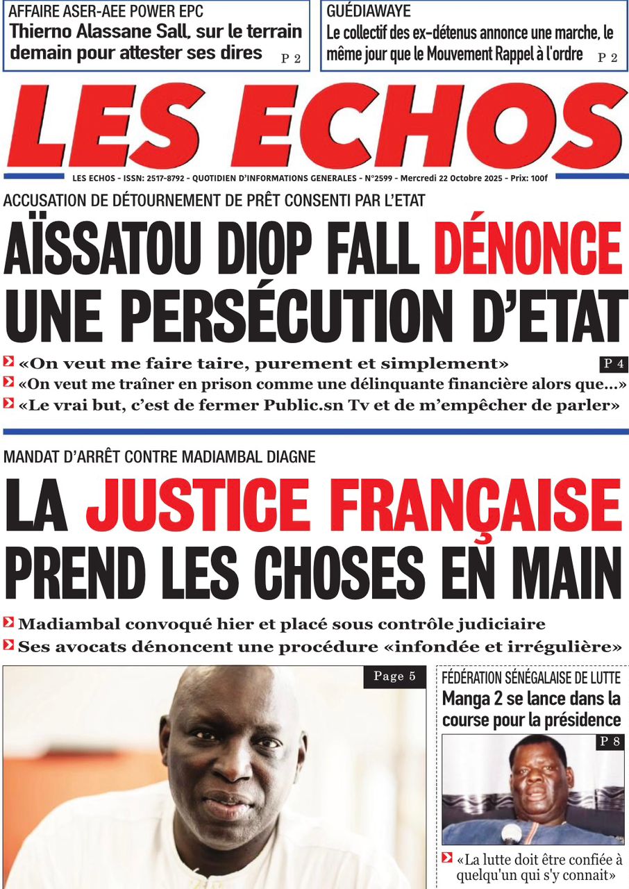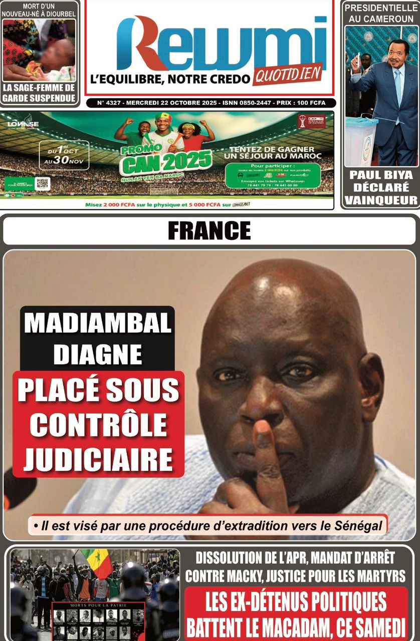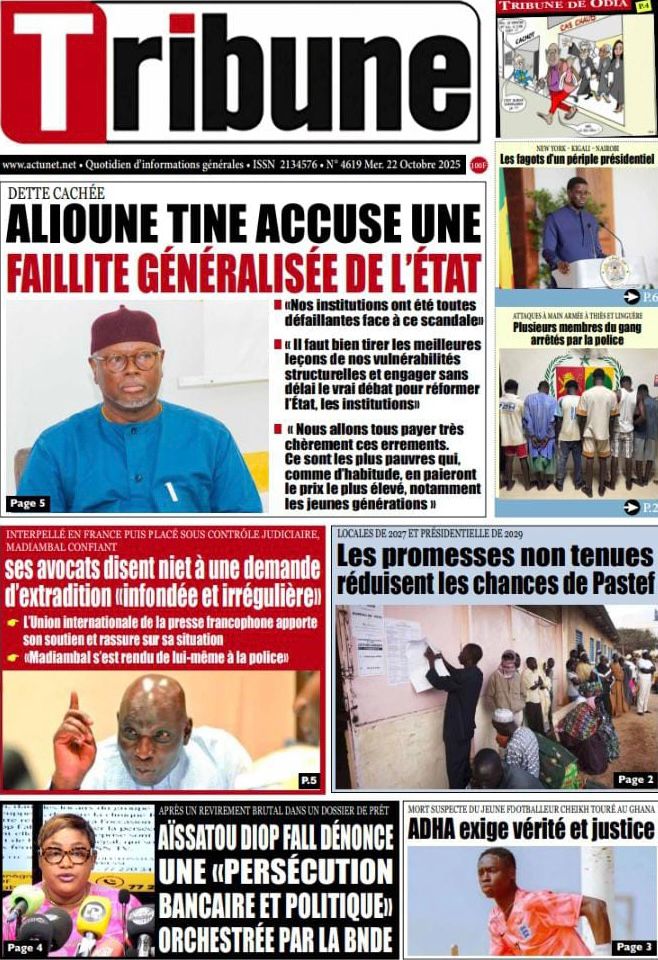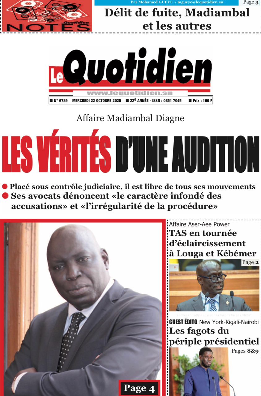 Découvrez les Unes des journaux sénégalais du mercredi 22 octobre 2025