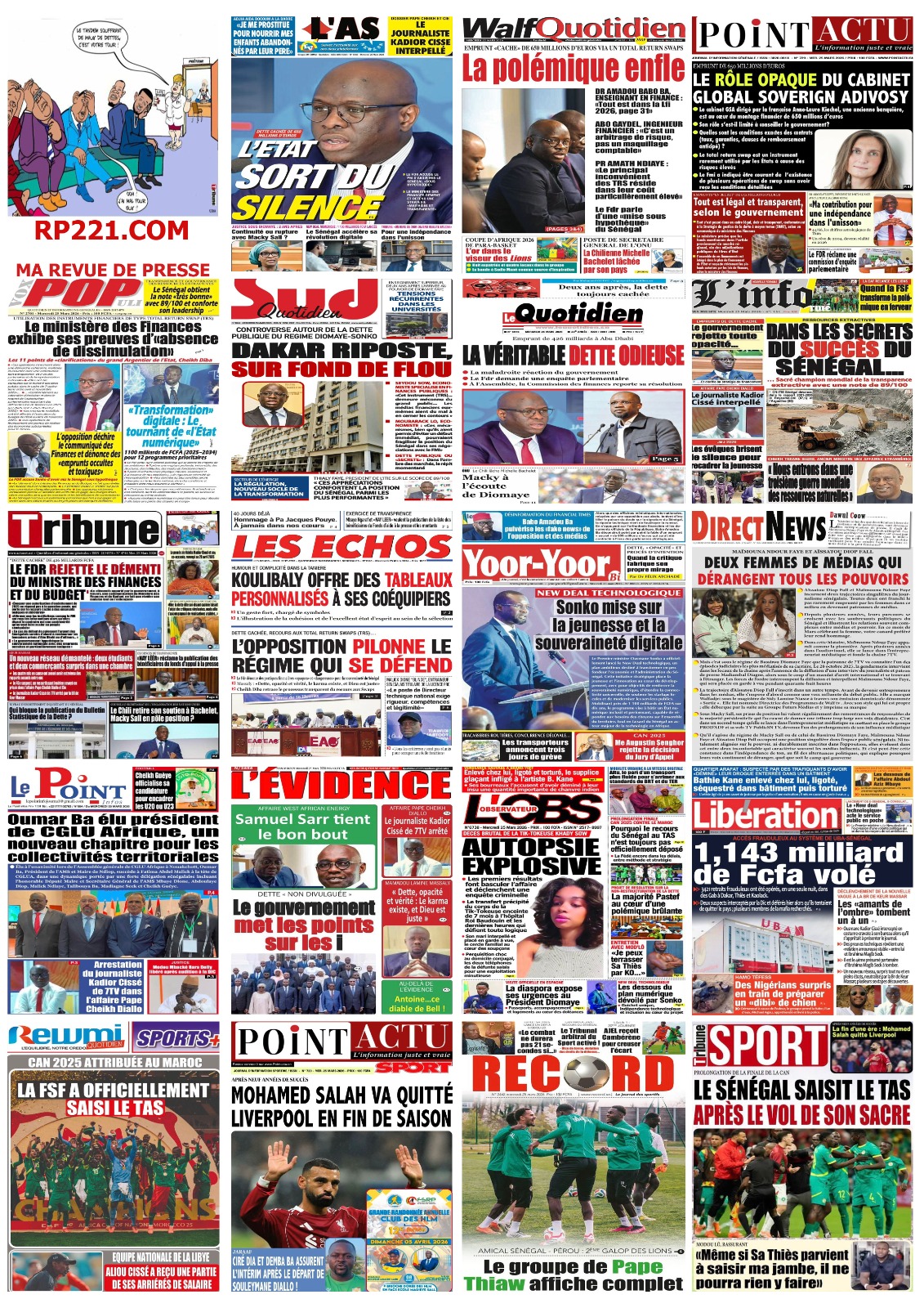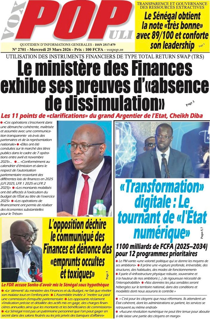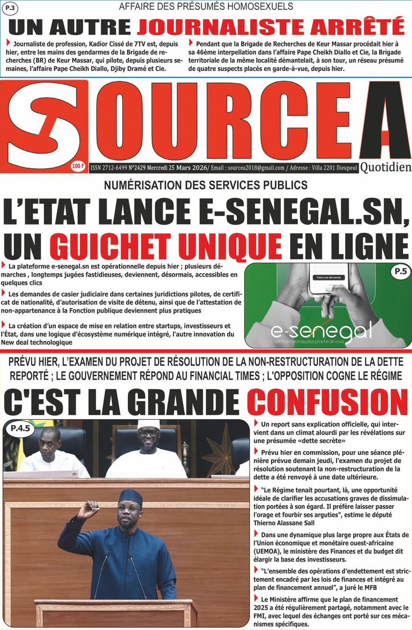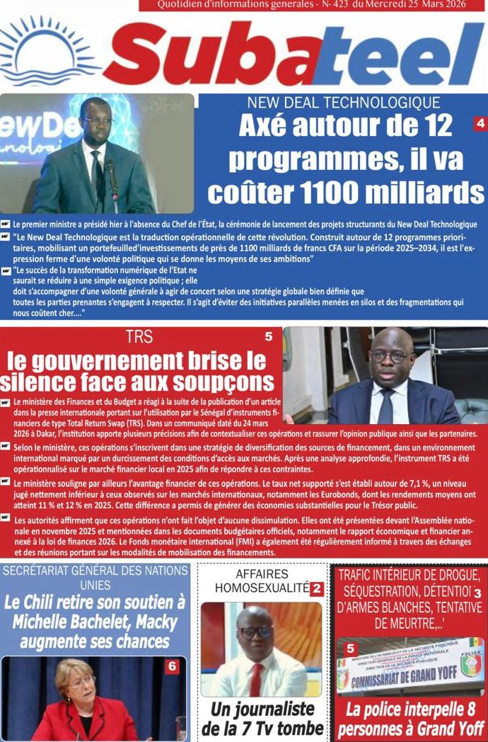 Découvrez les Unes des journaux sénégalais du mercredi 25 mars 2026