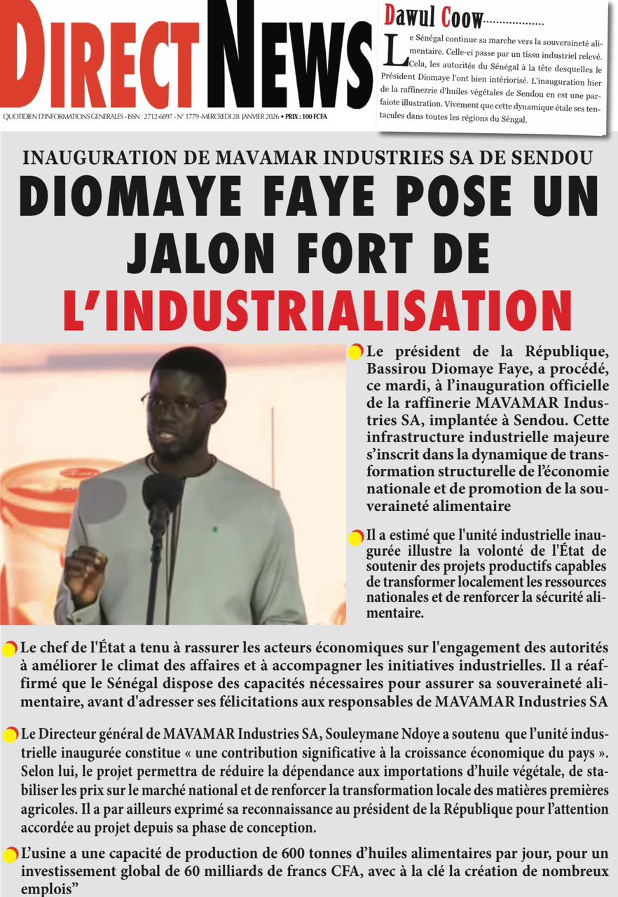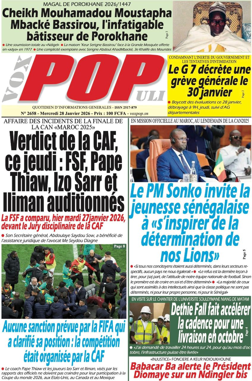 Découvrez les Unes des journaux sénégalais du mercredi 28 janvier 2026