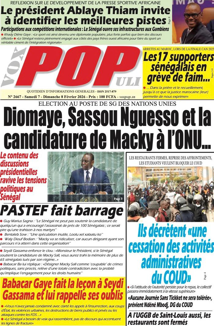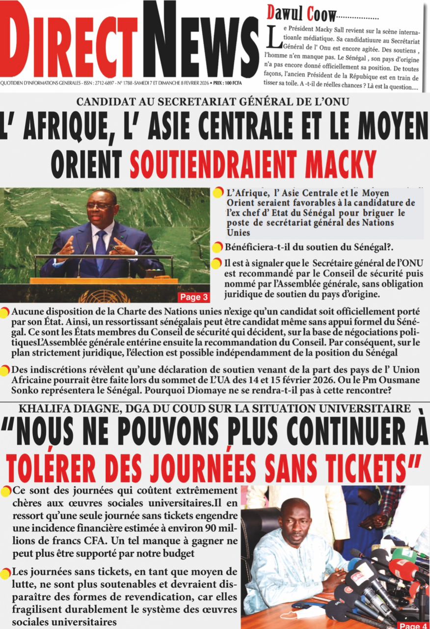 Découvrez les Unes des journaux sénégalais du samedi 07 février 2026