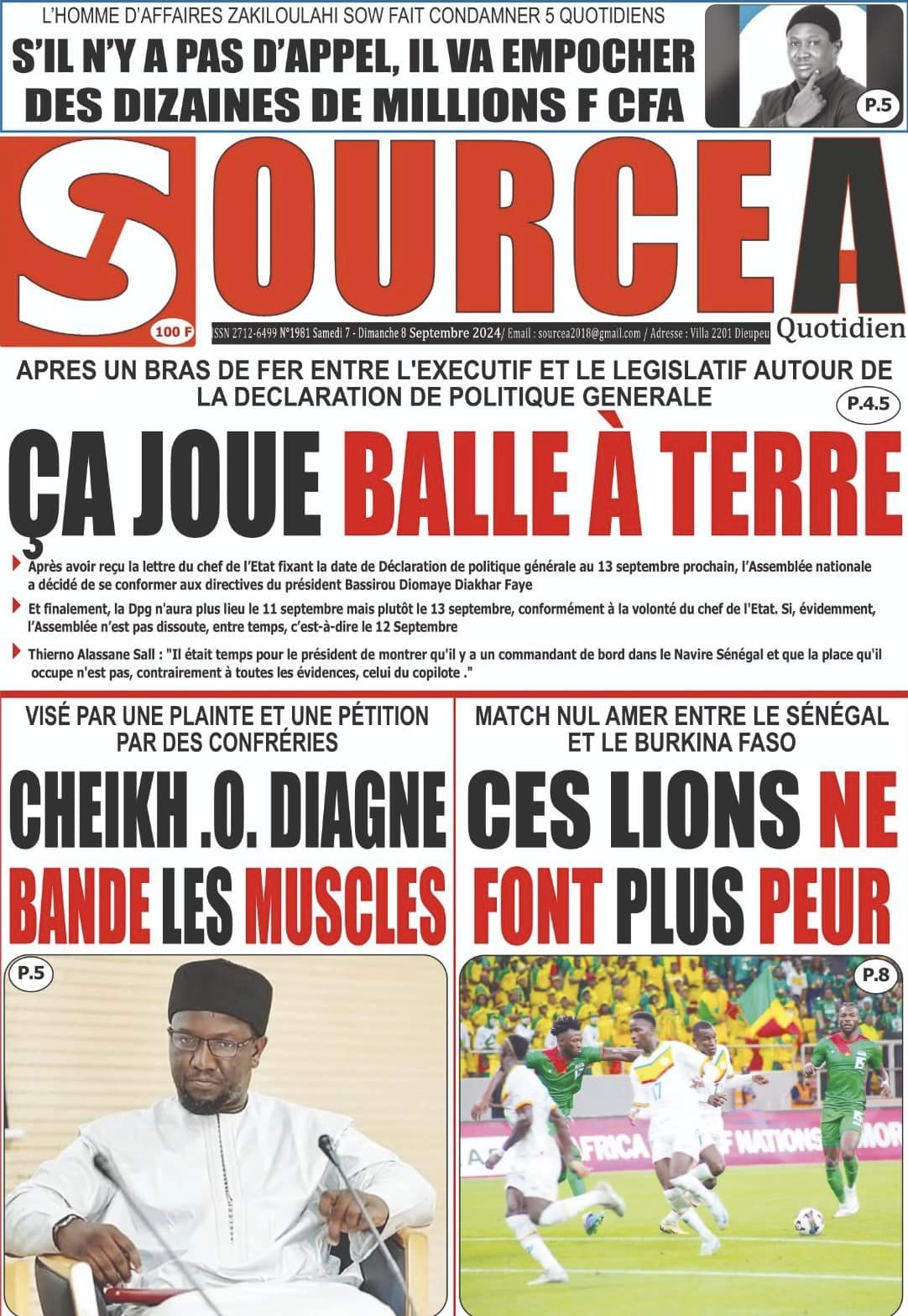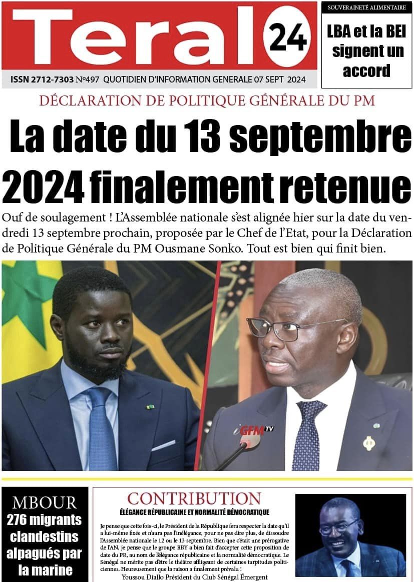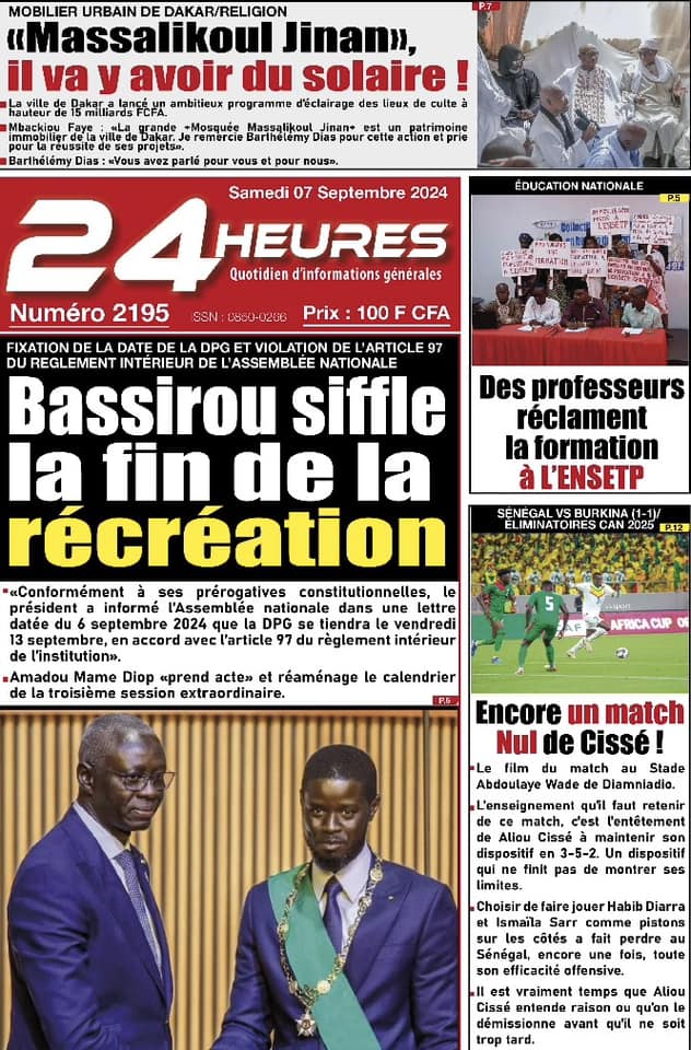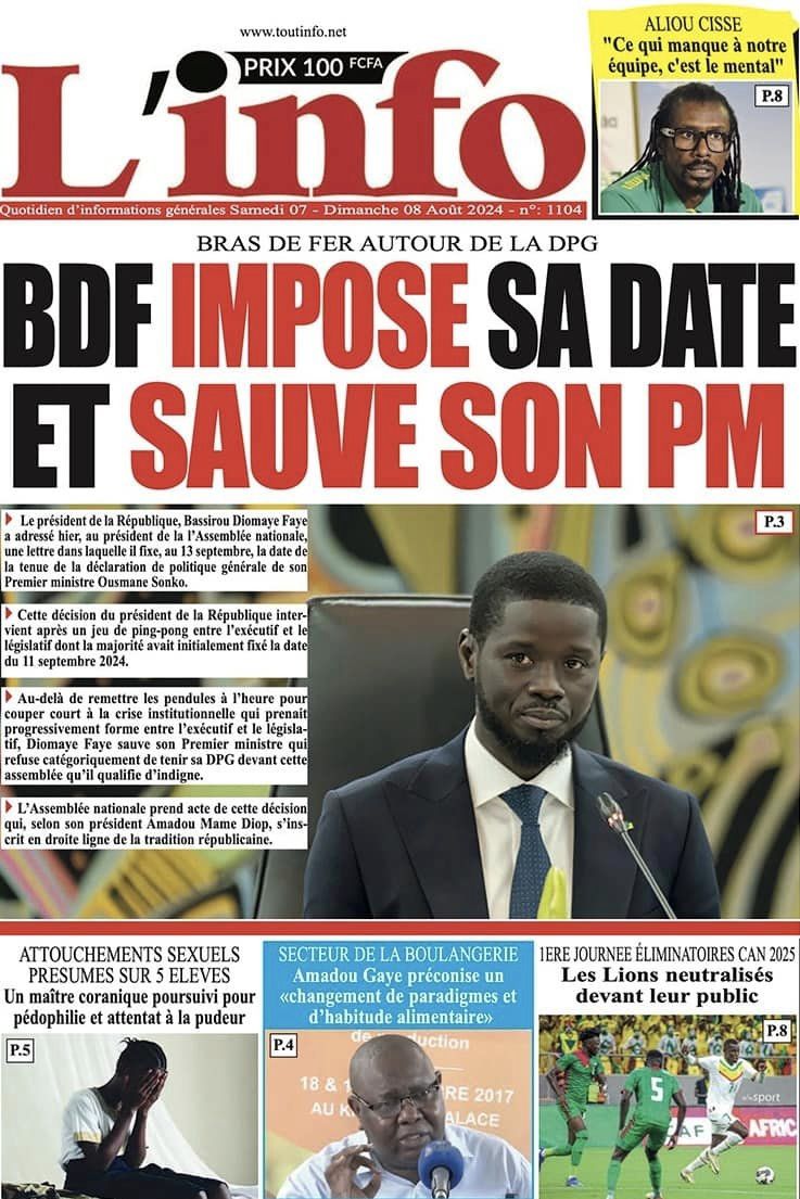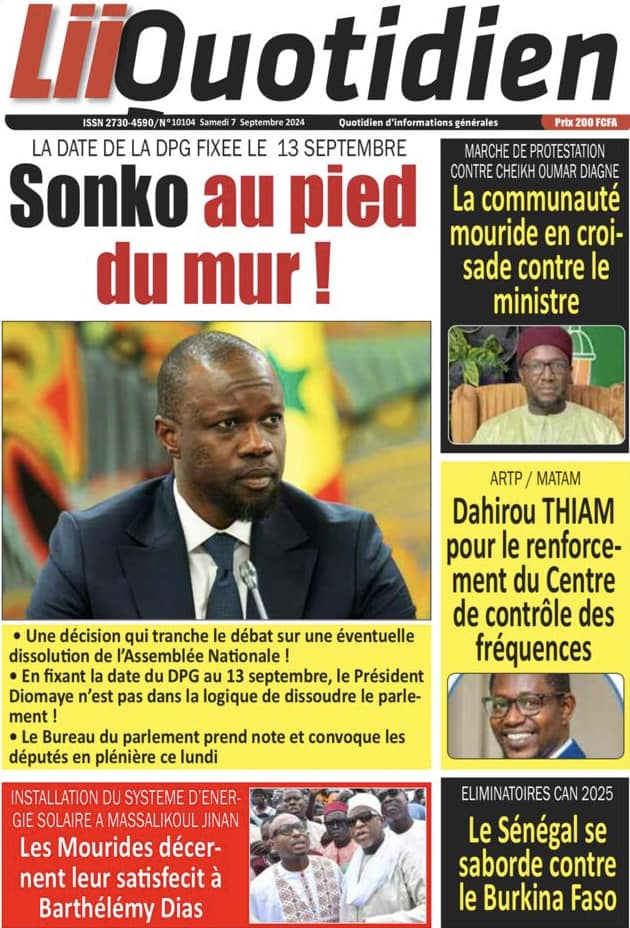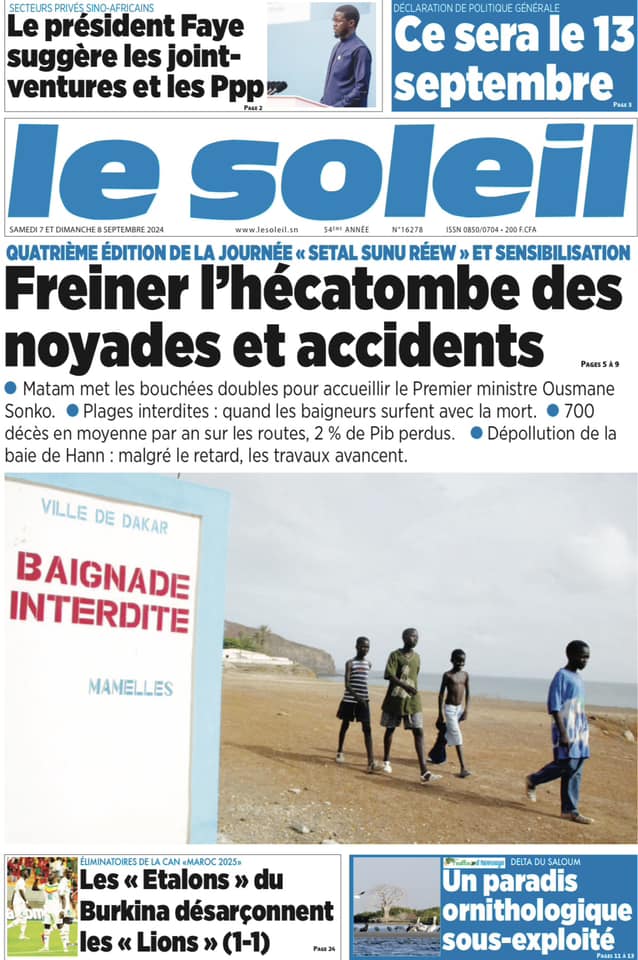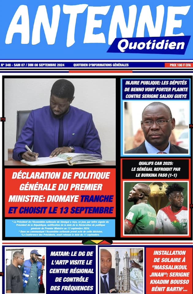 Découvrez les Unes des journaux sénégalais du samedi 07 septembre 2024