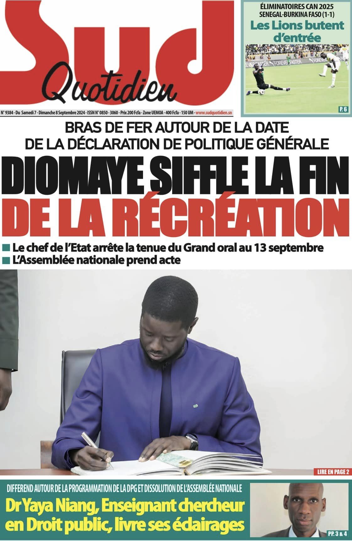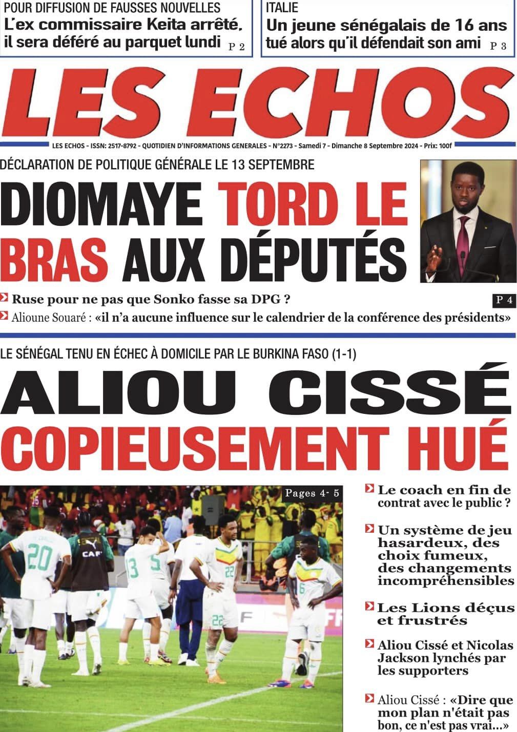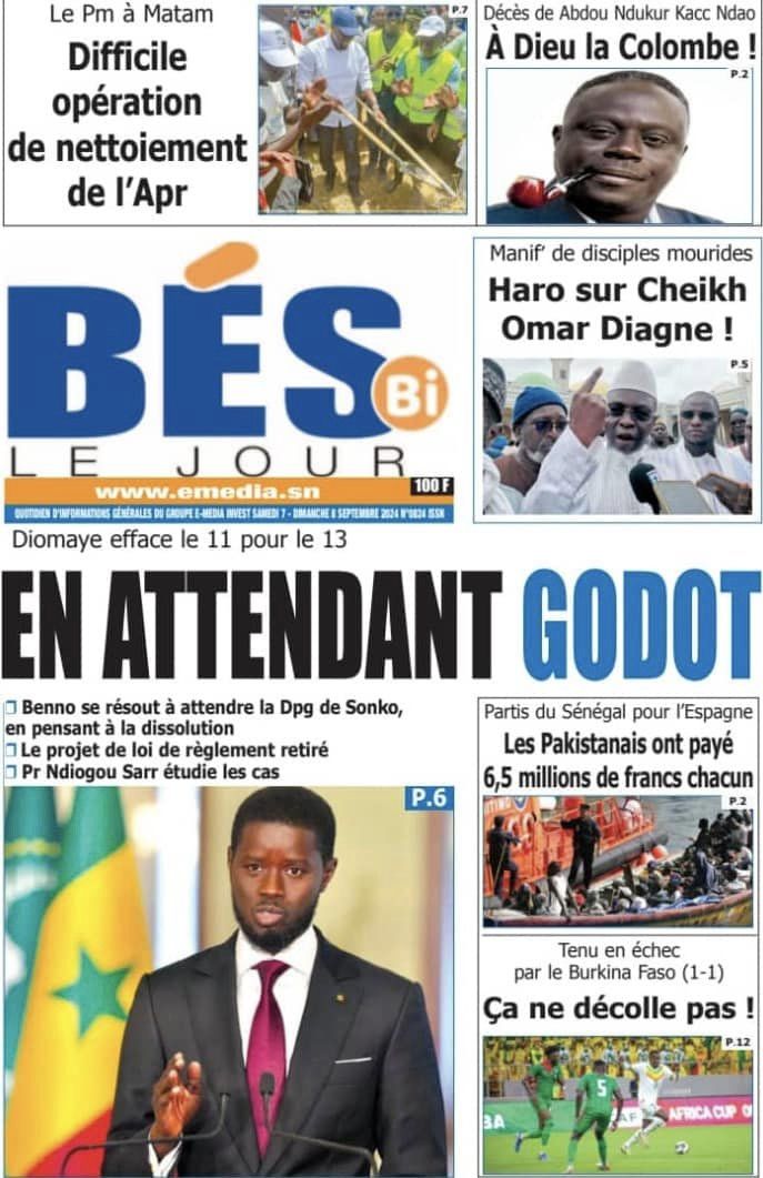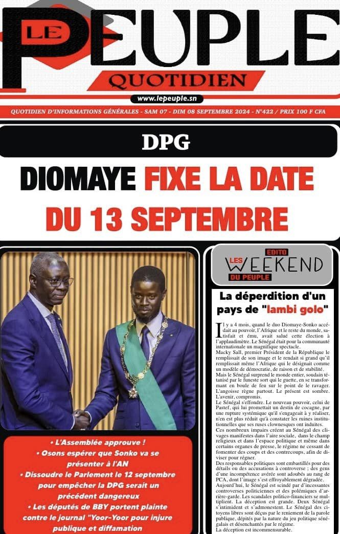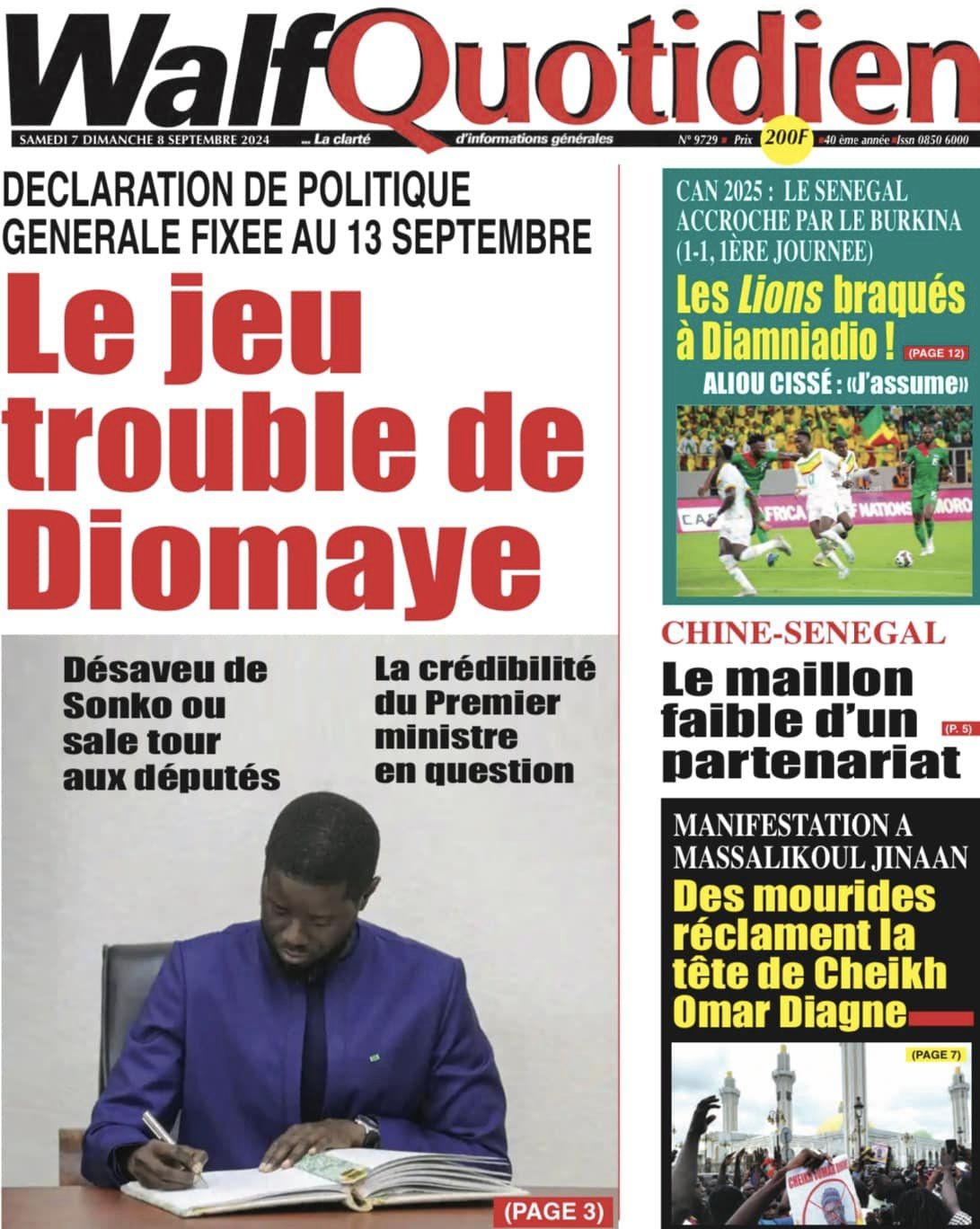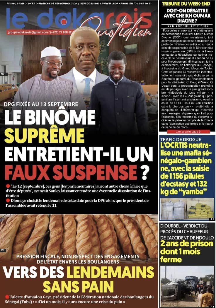 Découvrez les Unes des journaux sénégalais du samedi 07 septembre 2024