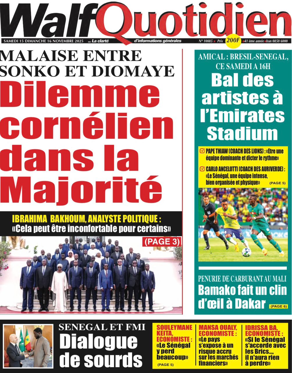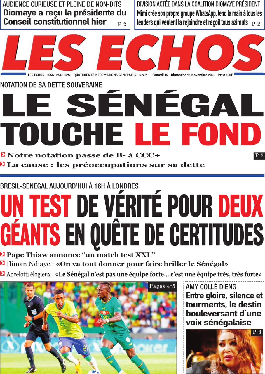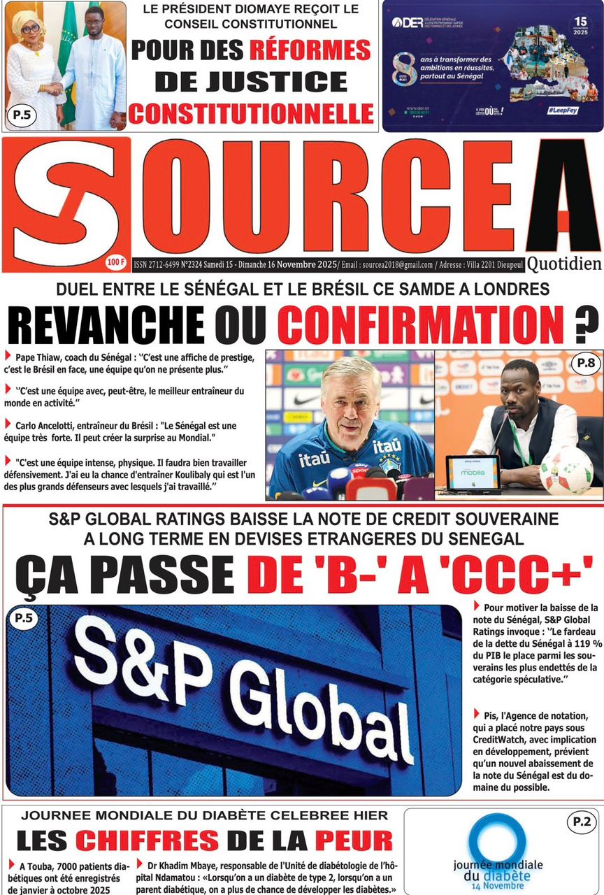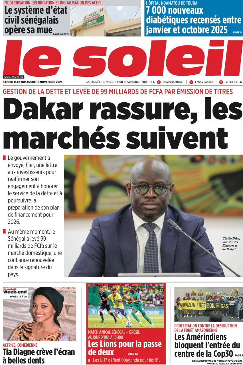 Découvrez les Unes des journaux sénégalais du samedi 15 novembre 2025