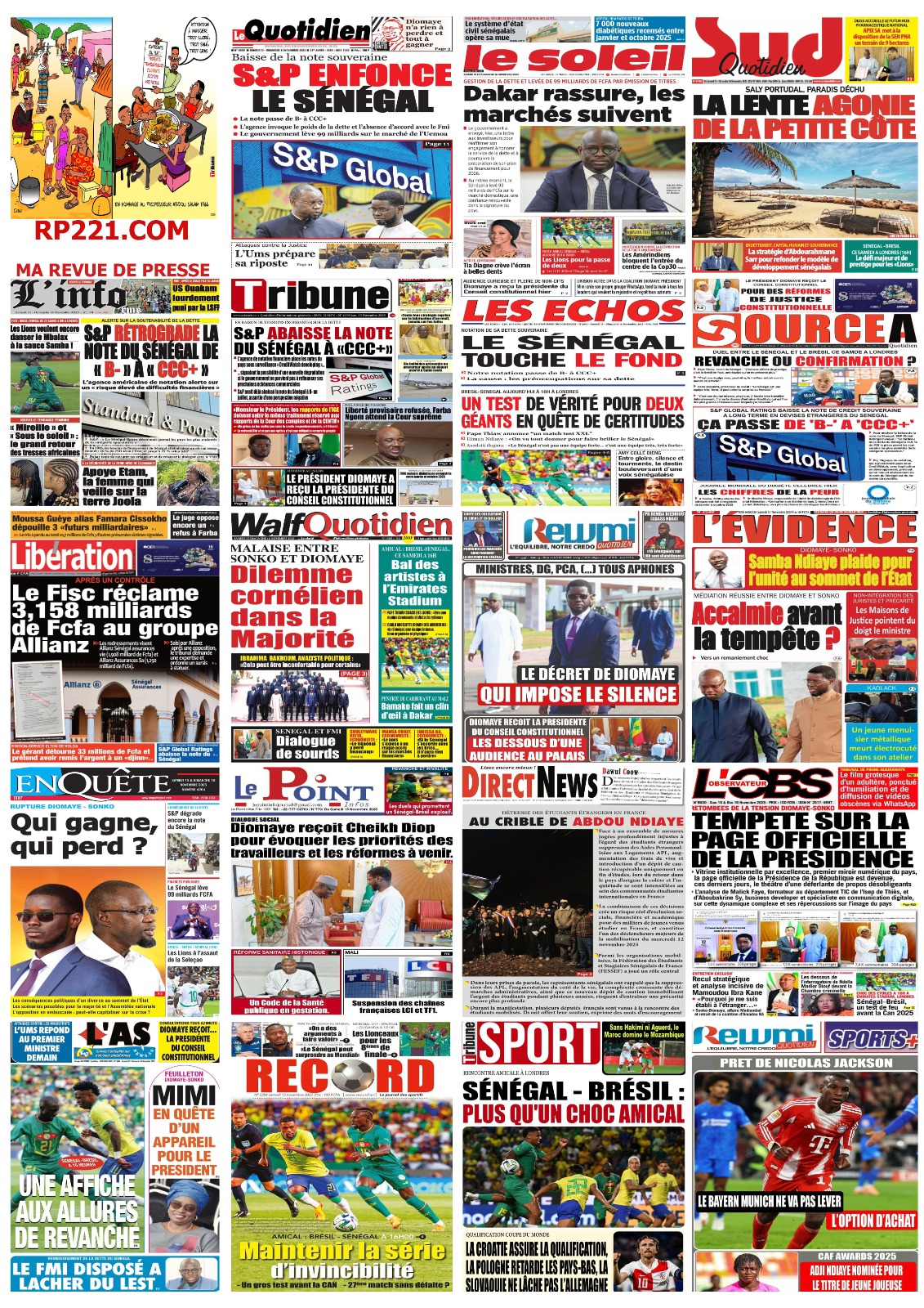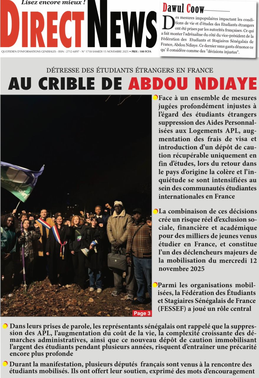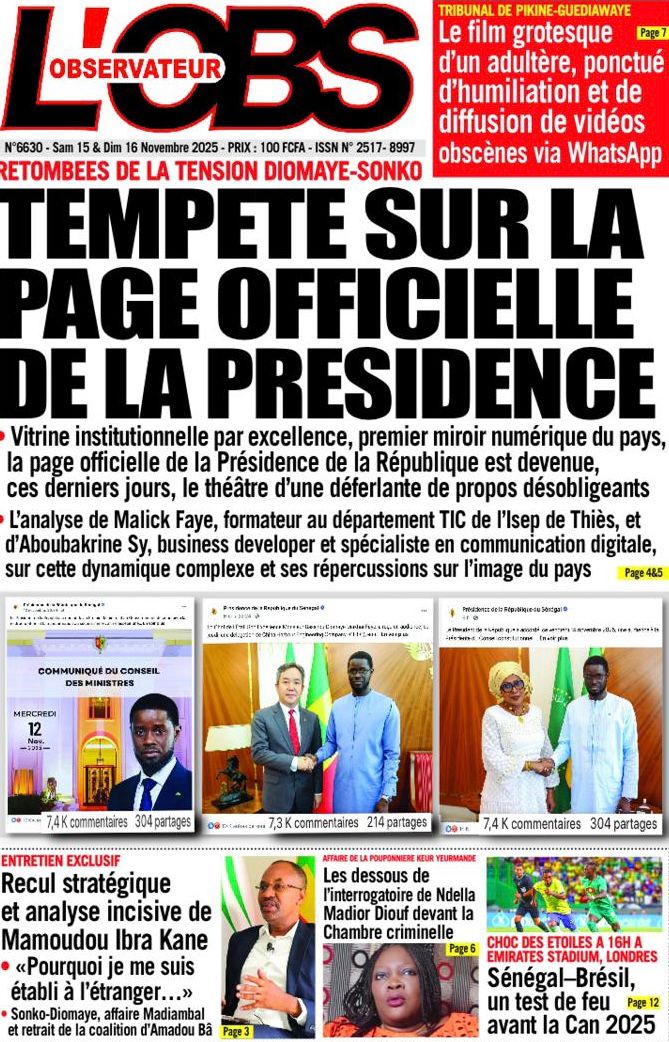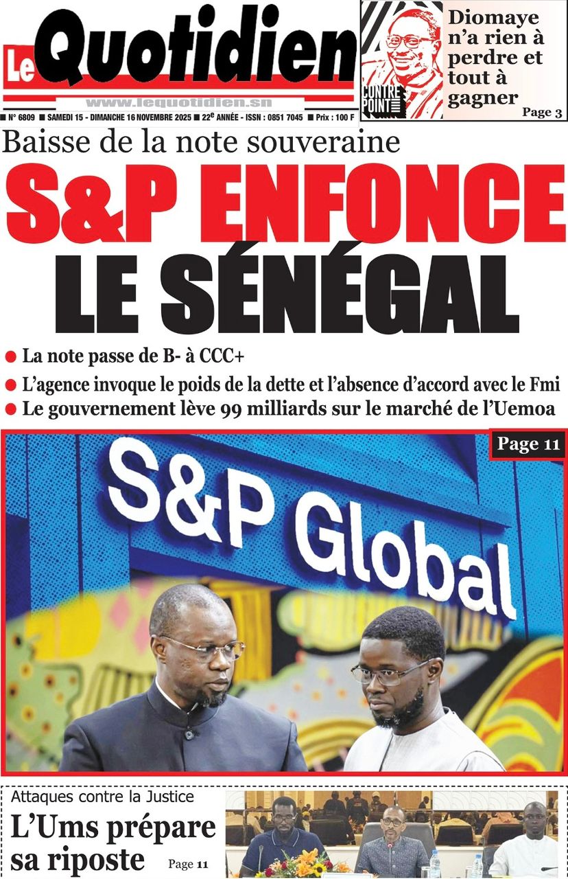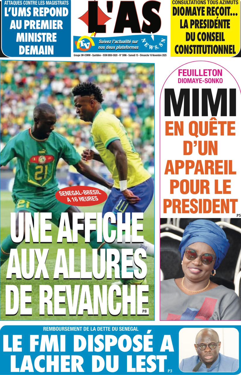 Découvrez les Unes des journaux sénégalais du samedi 15 novembre 2025