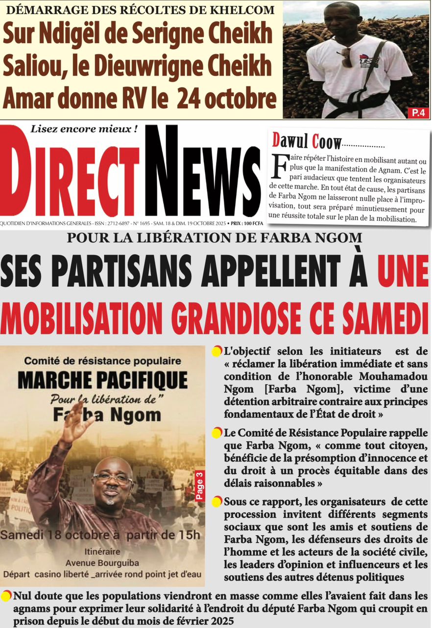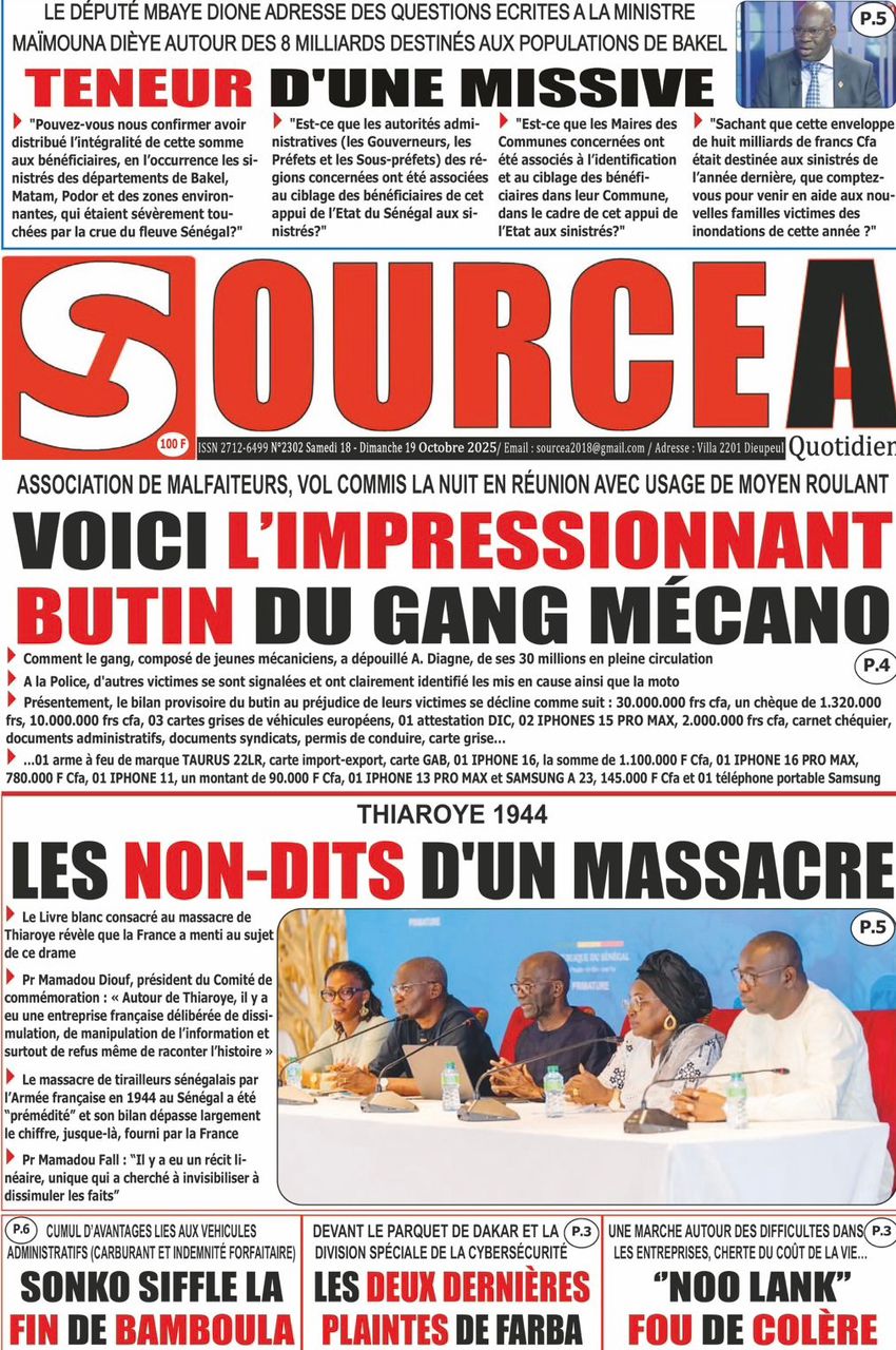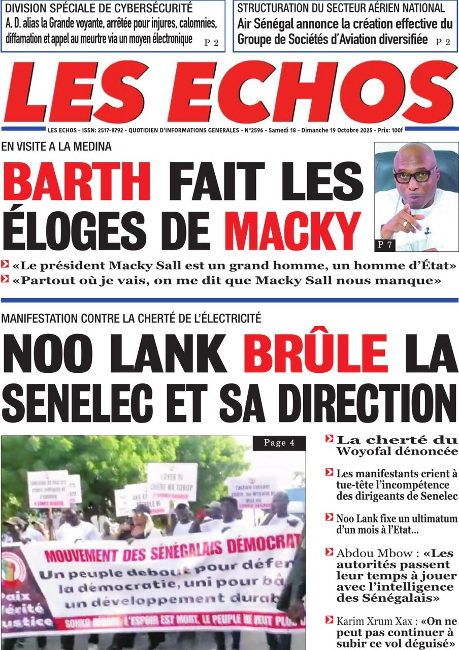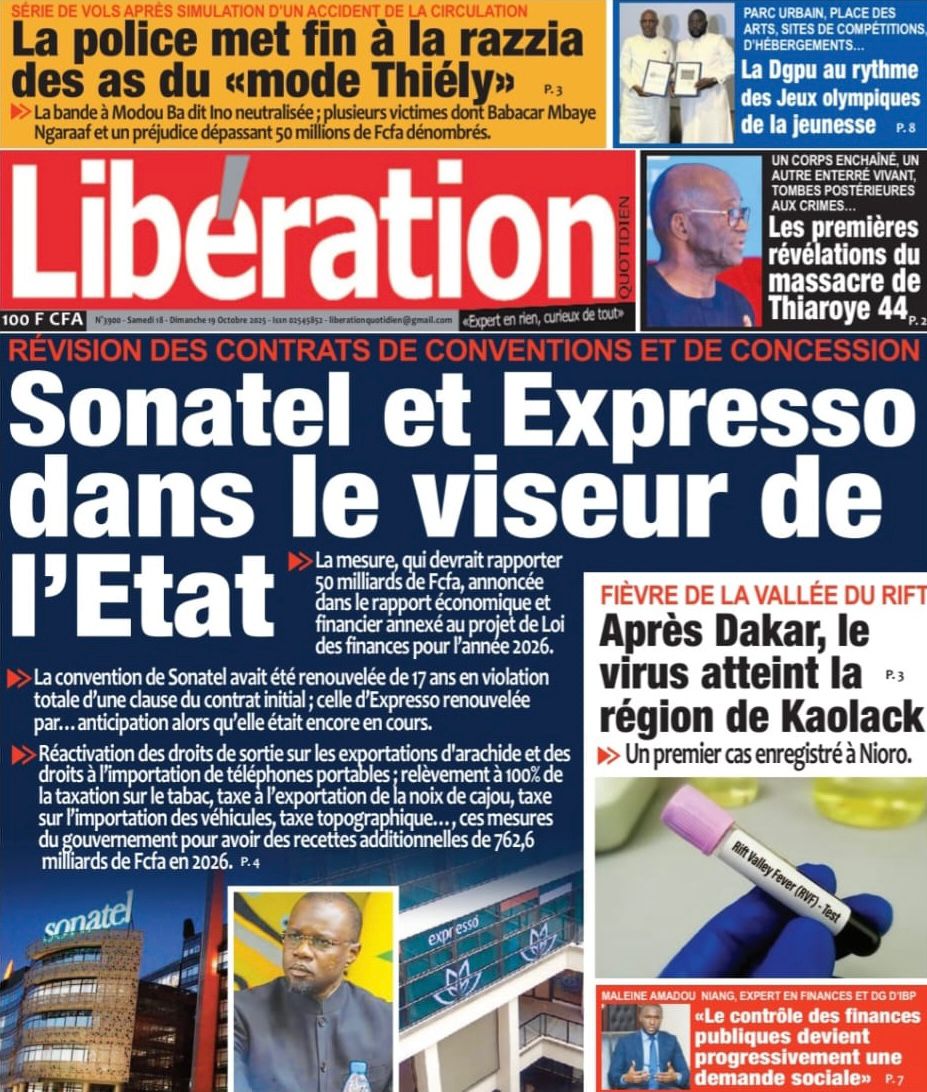 Découvrez les Unes des journaux sénégalais du samedi 18 octobre 2025
