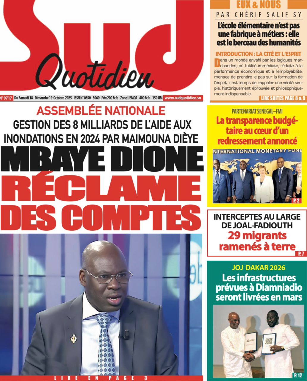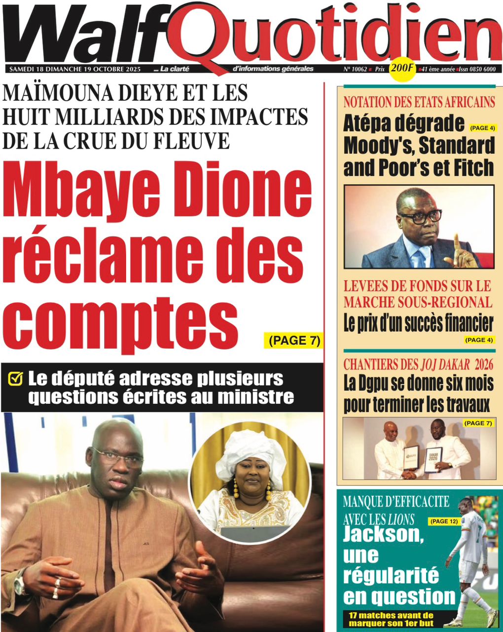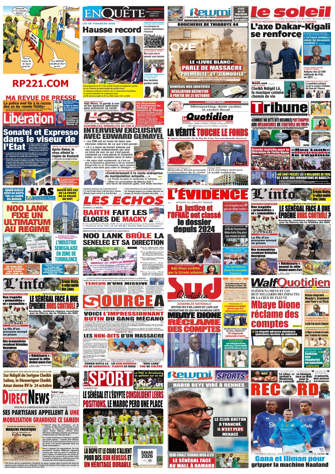 Découvrez les Unes des journaux sénégalais du samedi 18 octobre 2025