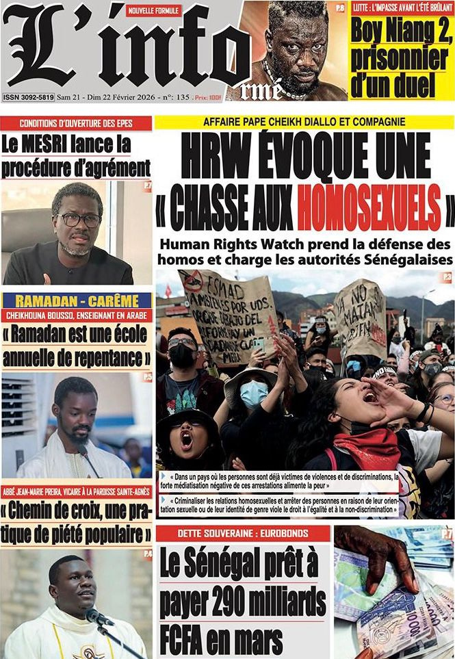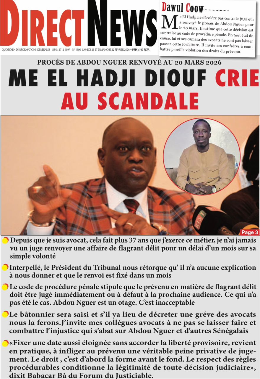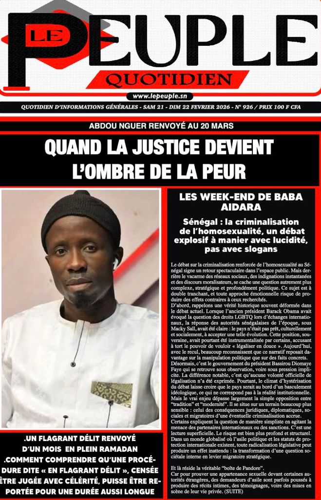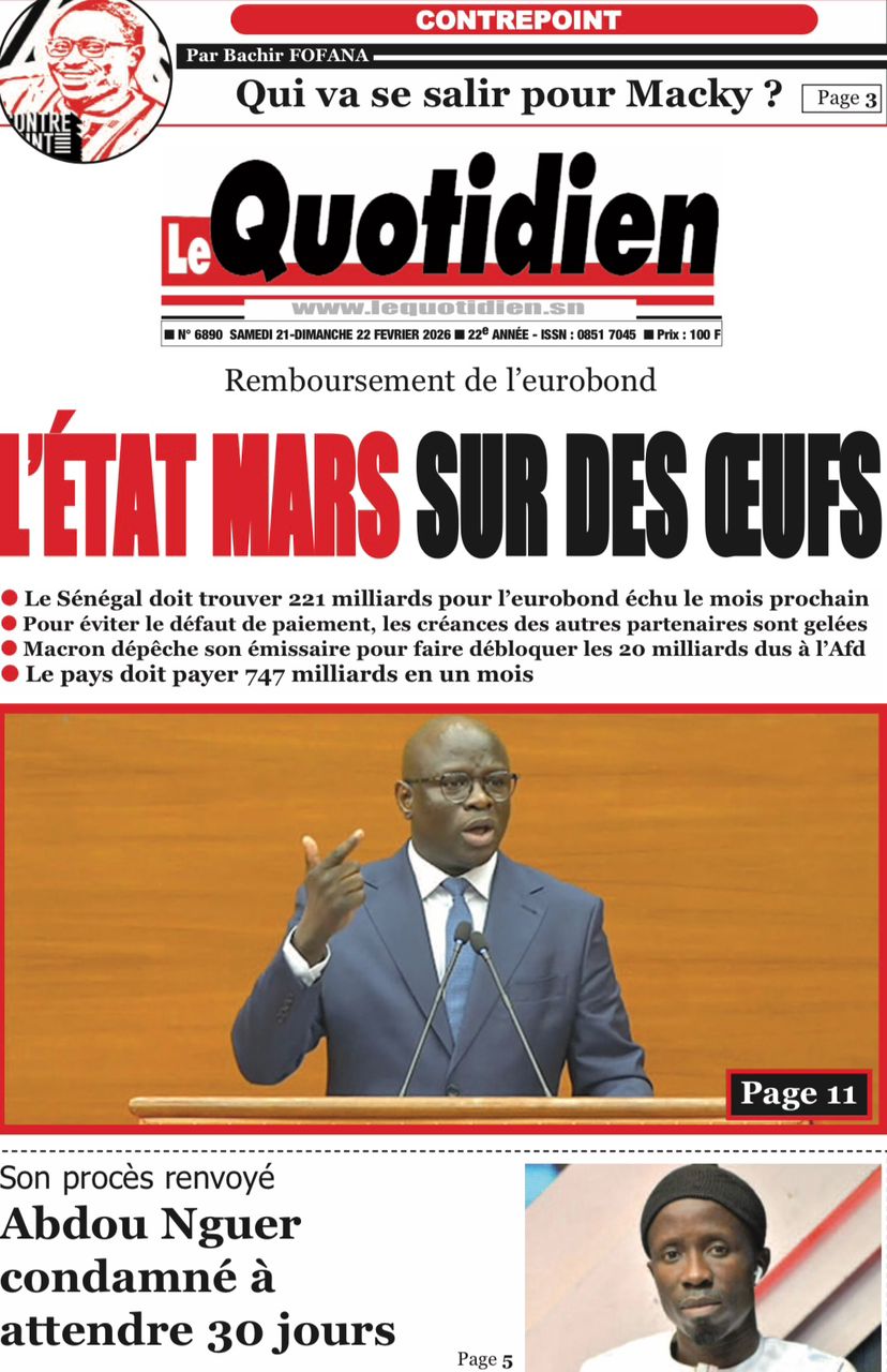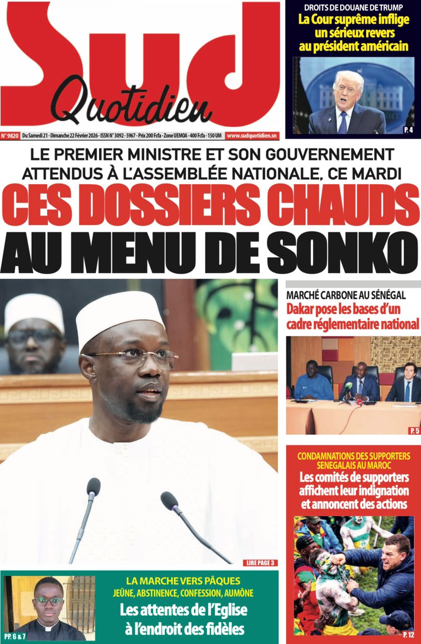 Découvrez les Unes des journaux sénégalais du samedi 21 février 2026