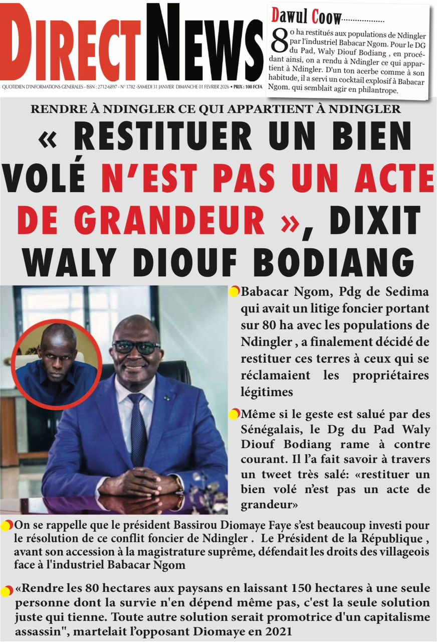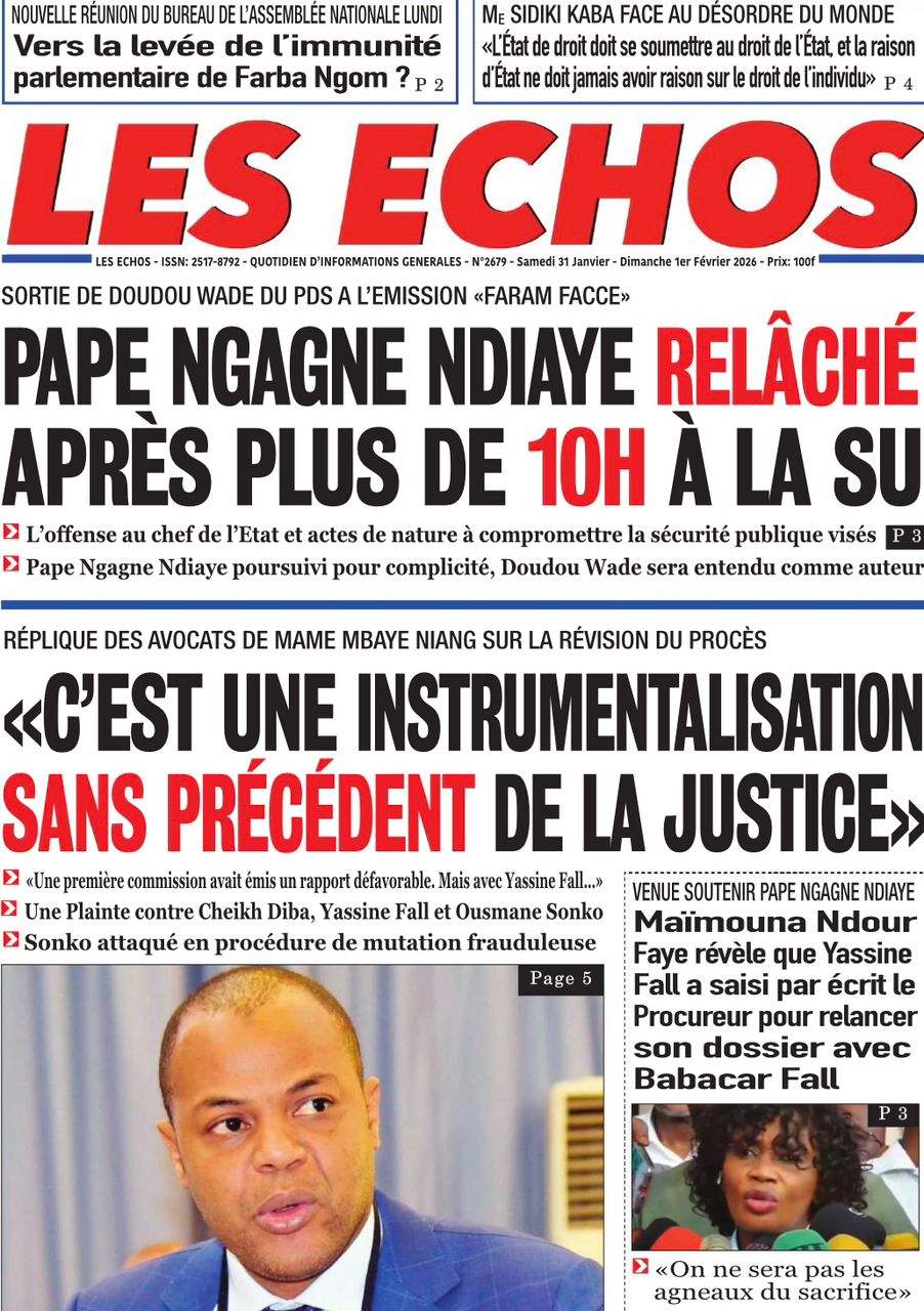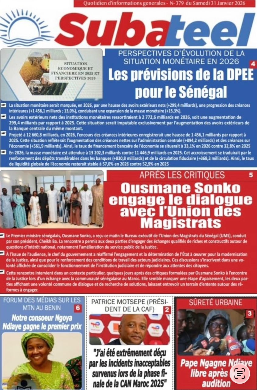 Découvrez les Unes des journaux sénégalais du samedi 31 janvier 2026