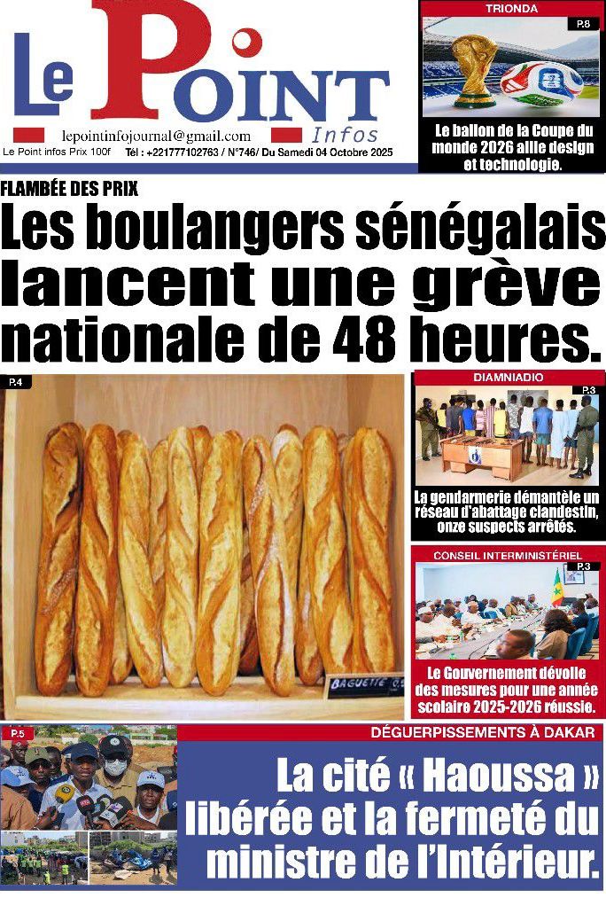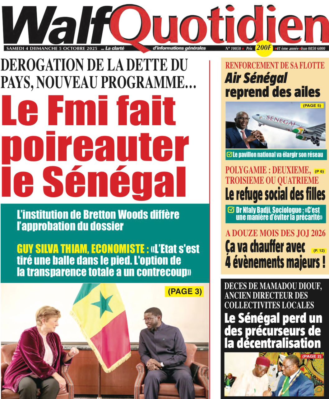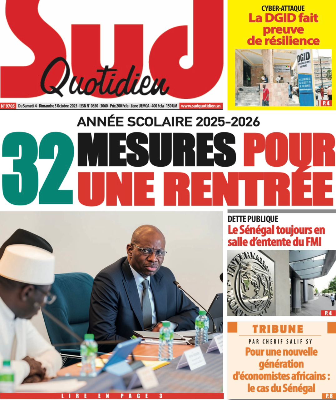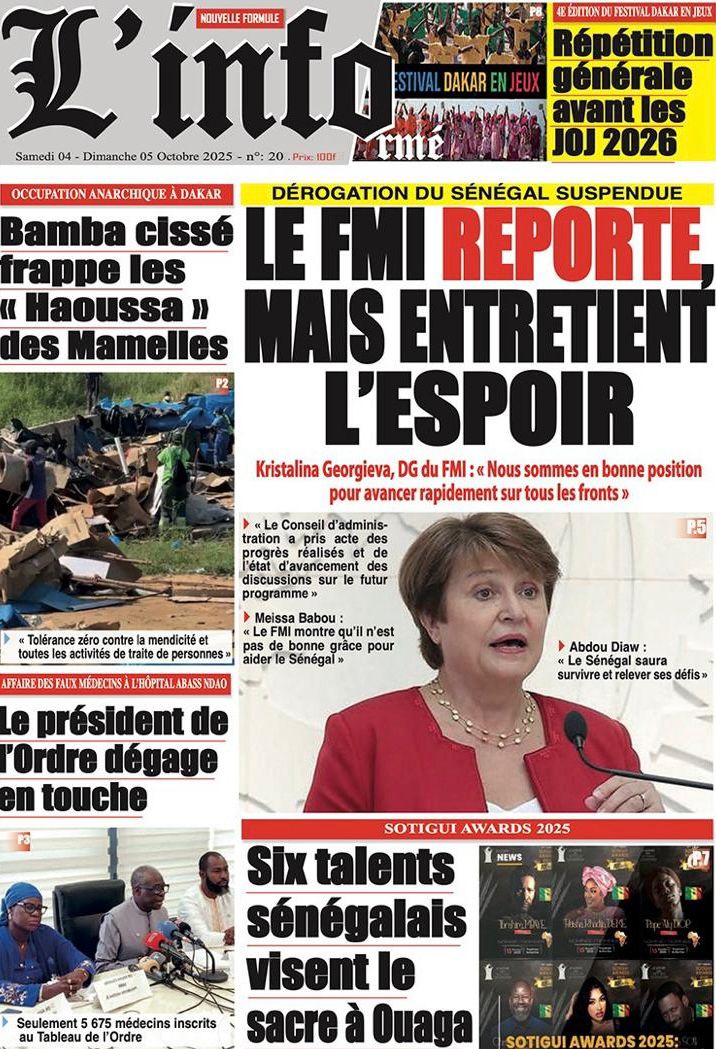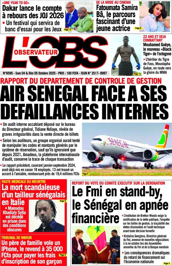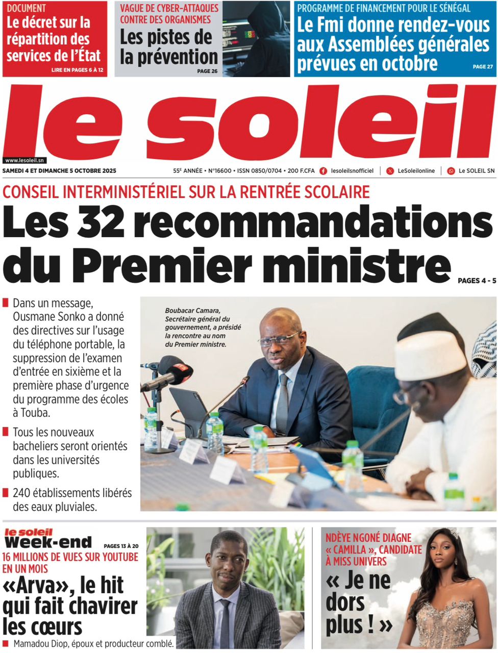 Découvrez les Unes des journaux sénégalais du samedi 4 octobre 2025