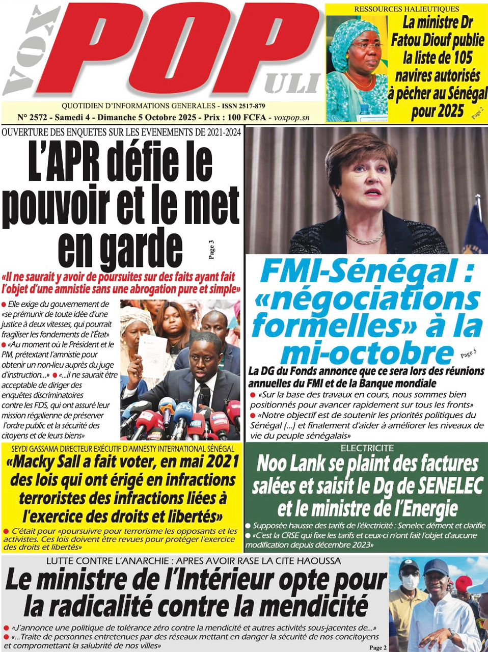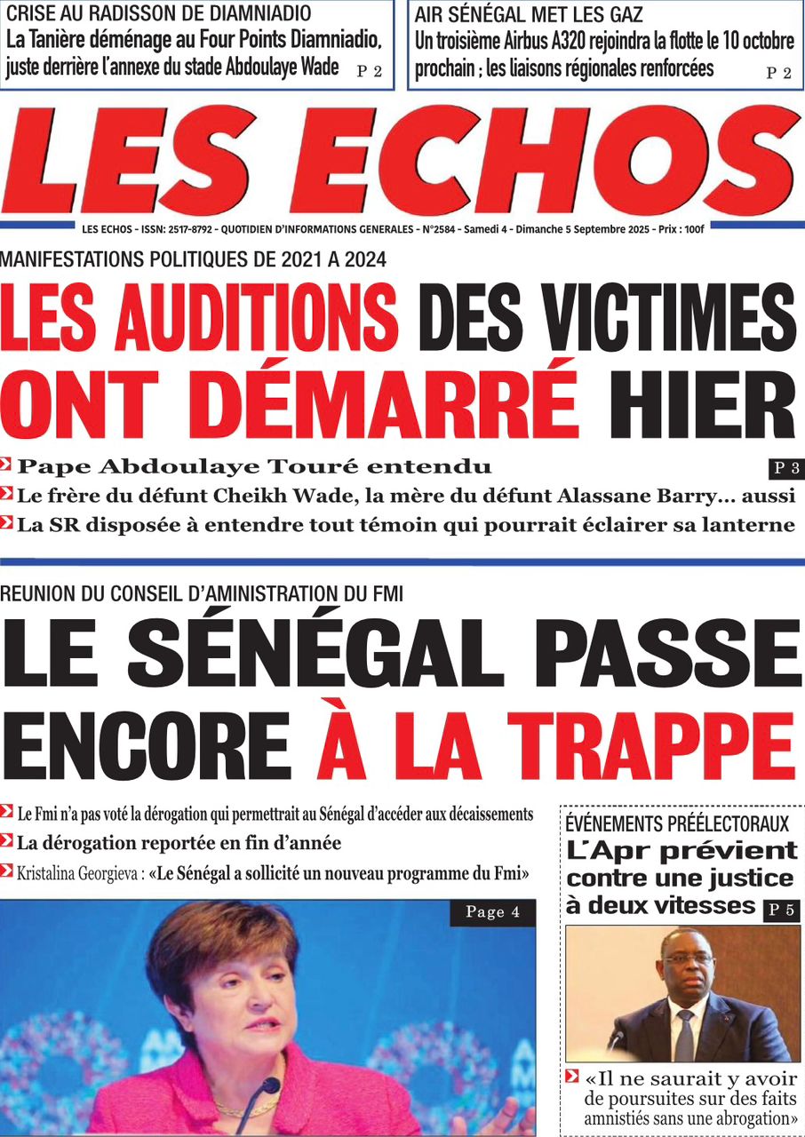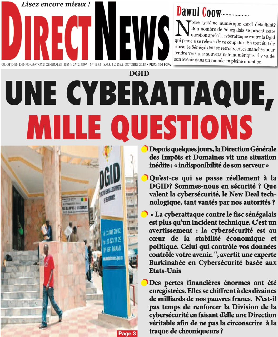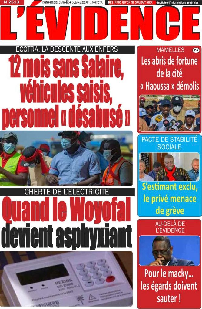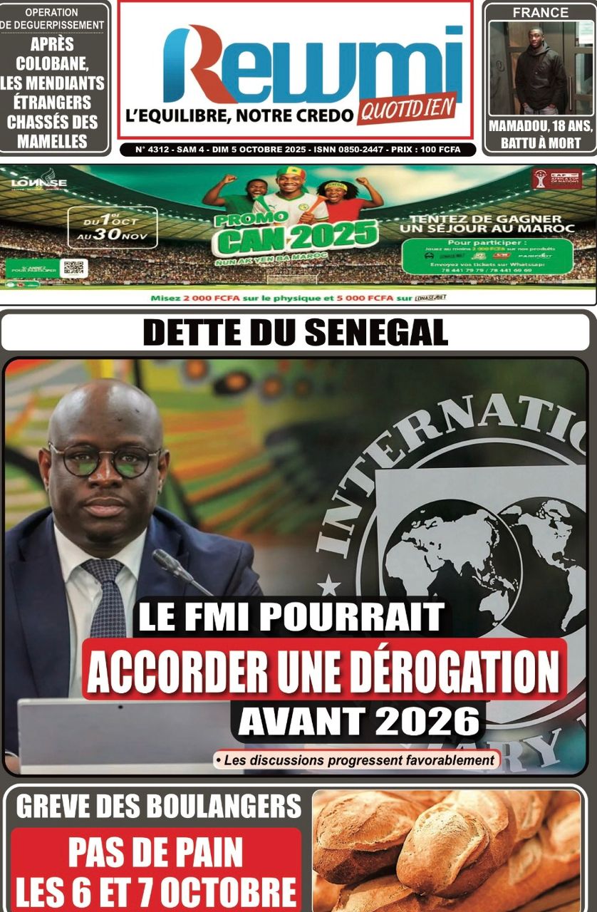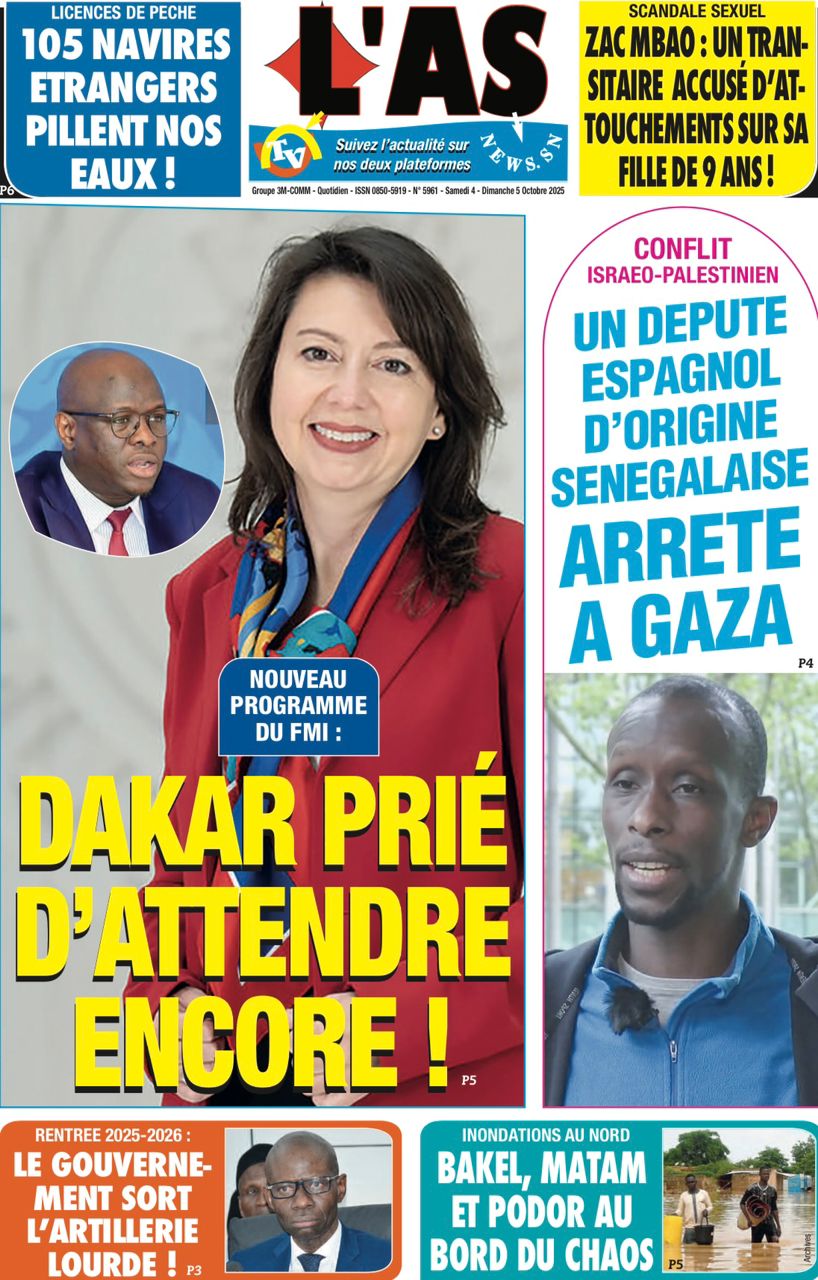 Découvrez les Unes des journaux sénégalais du samedi 4 octobre 2025