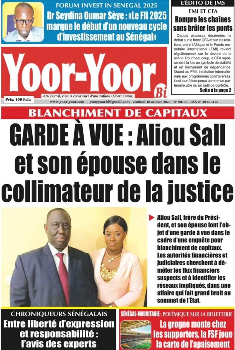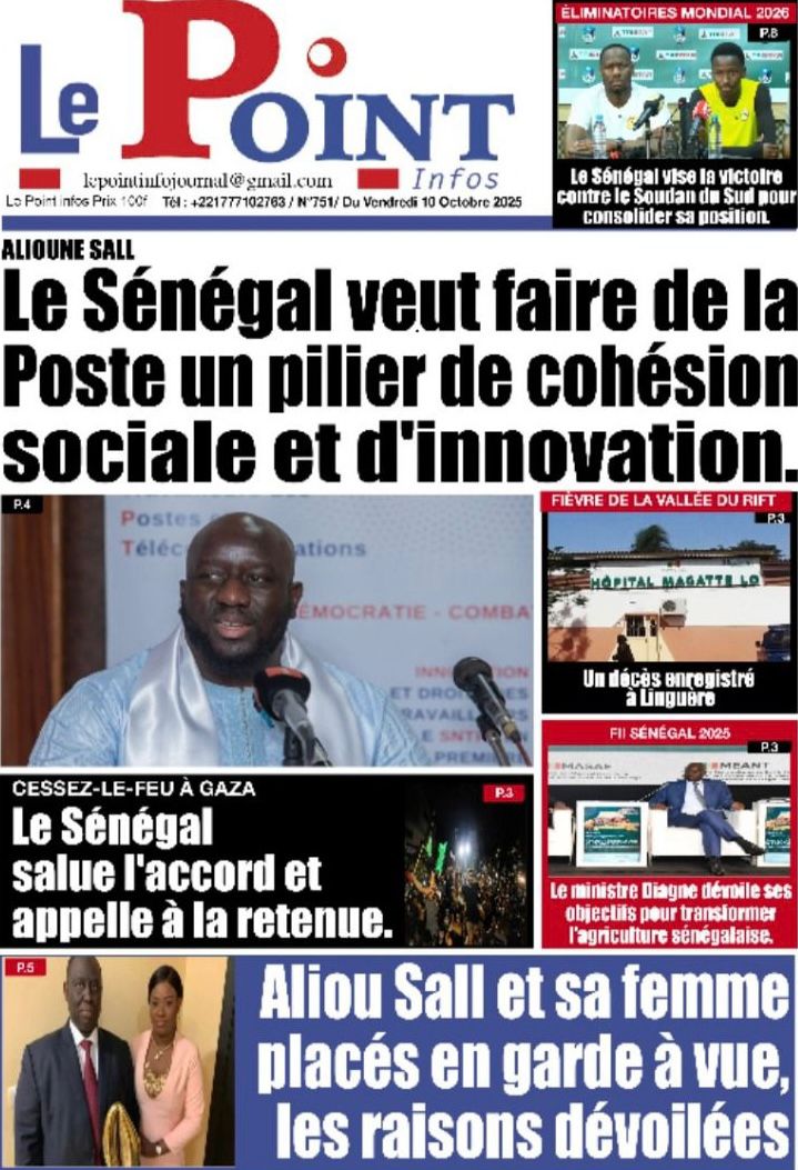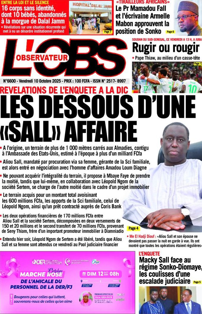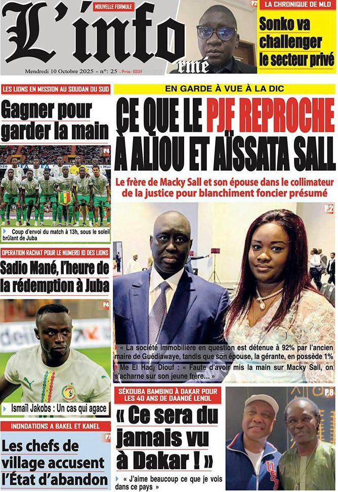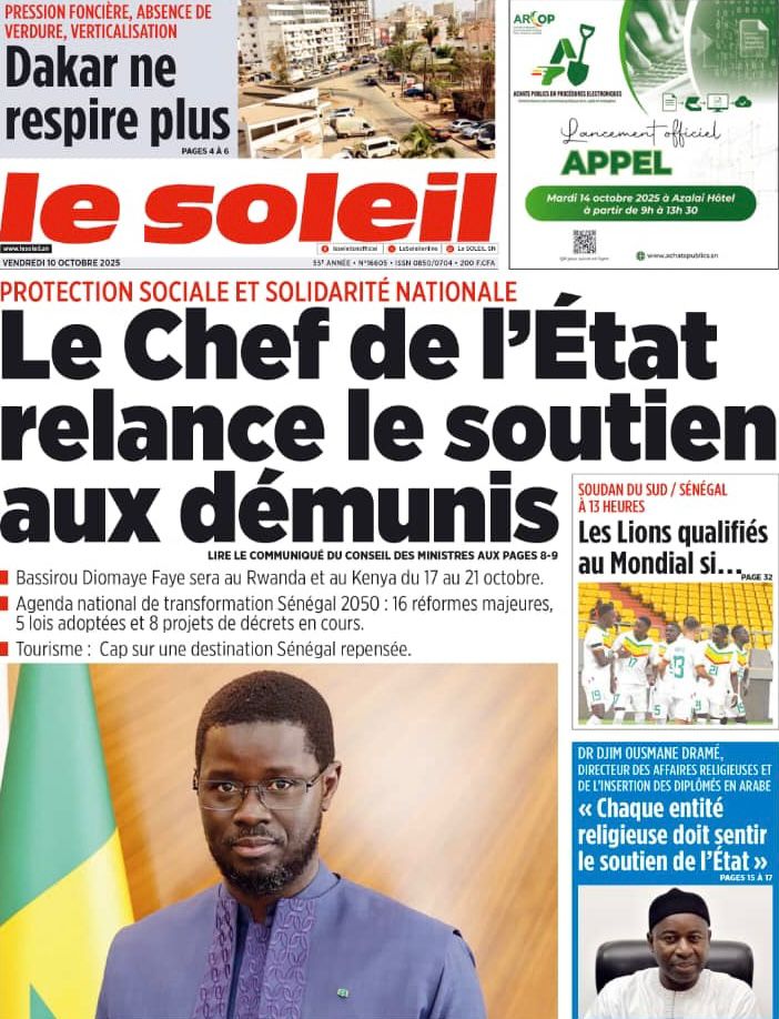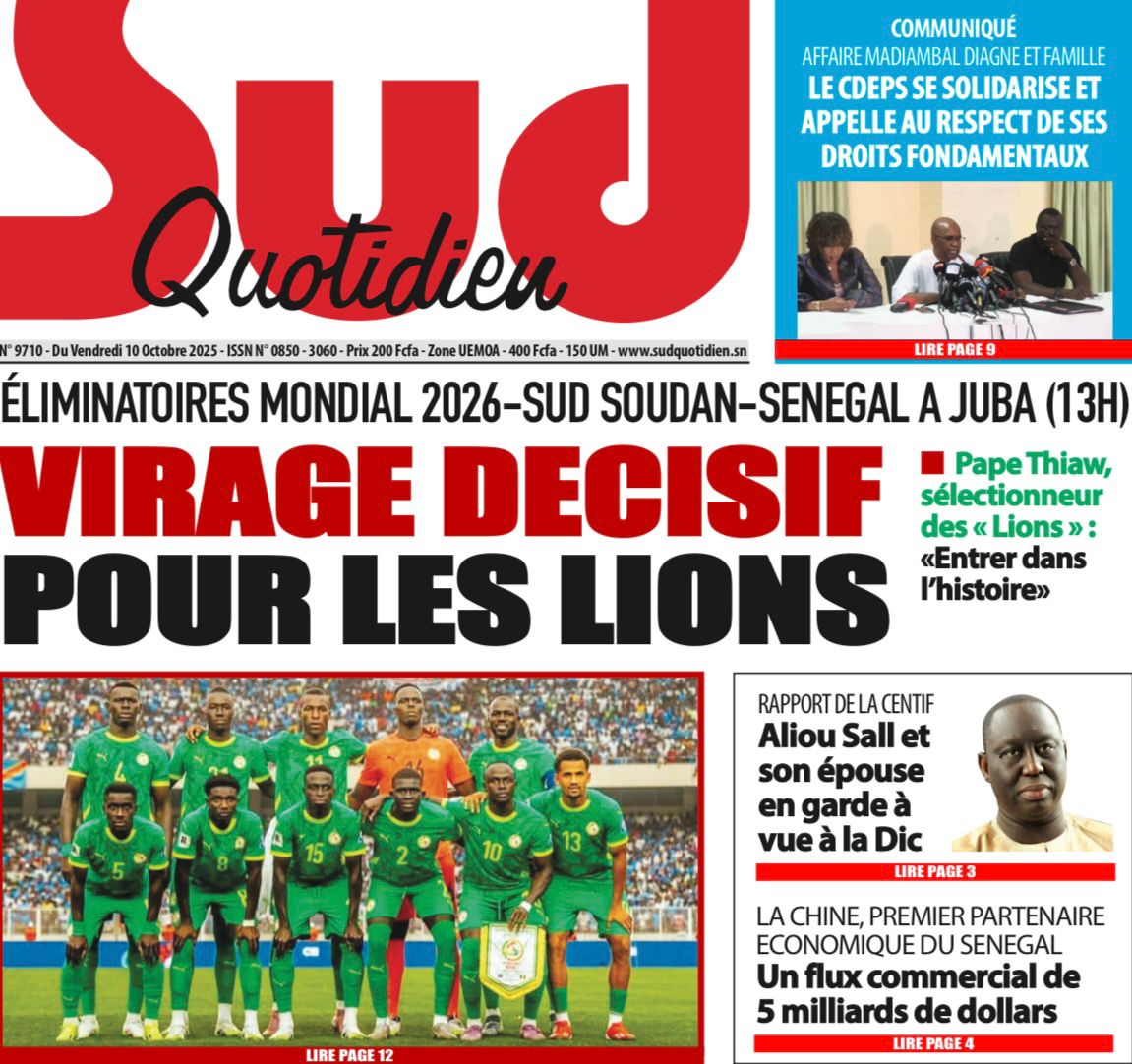 Découvrez les Unes des journaux sénégalais du vendredi 10 octobre 2025