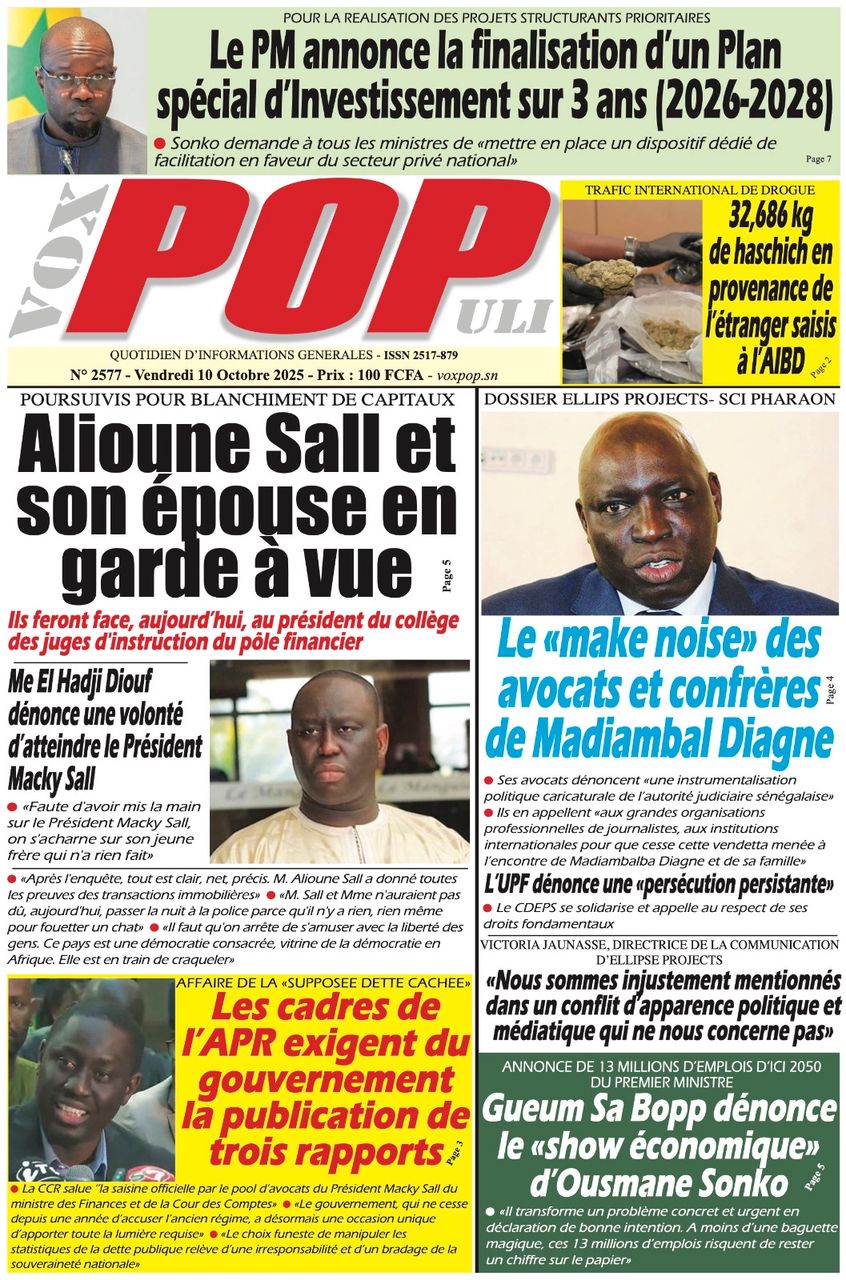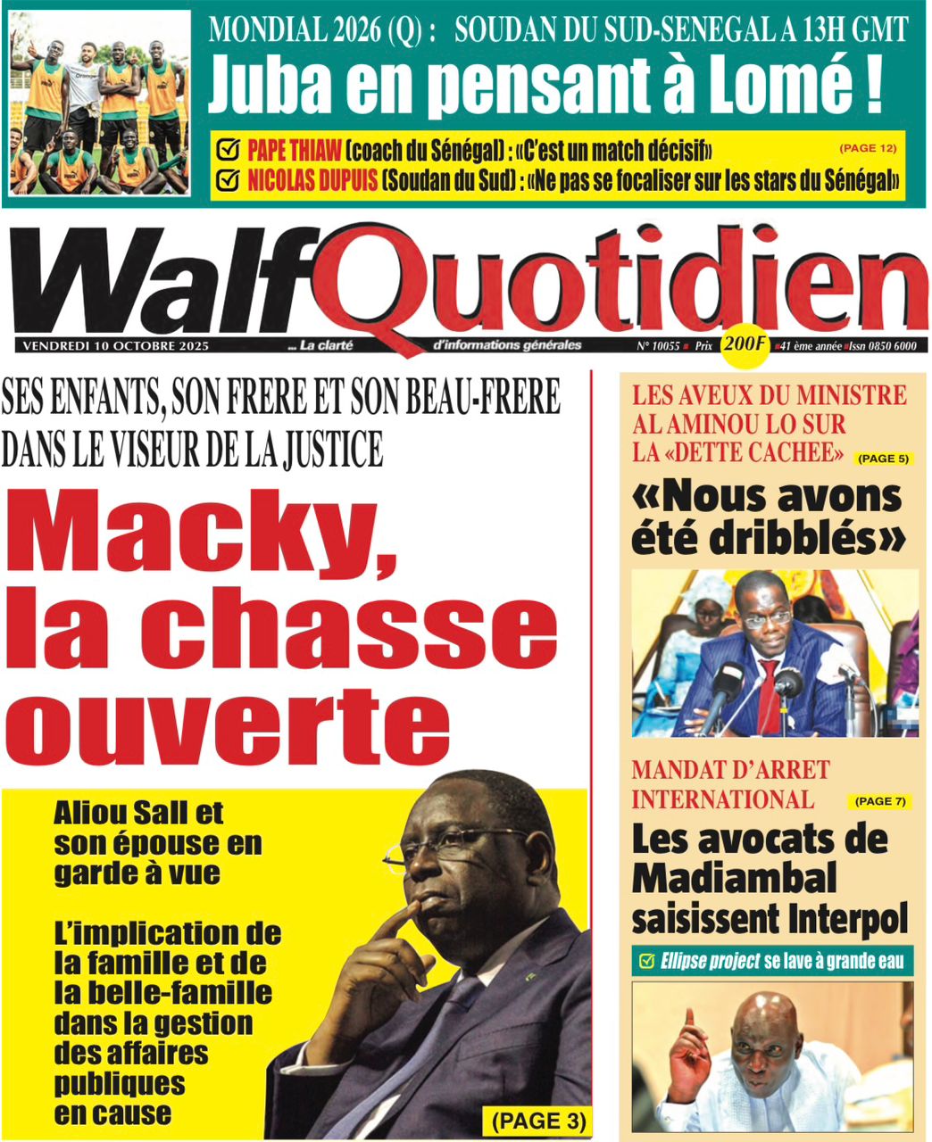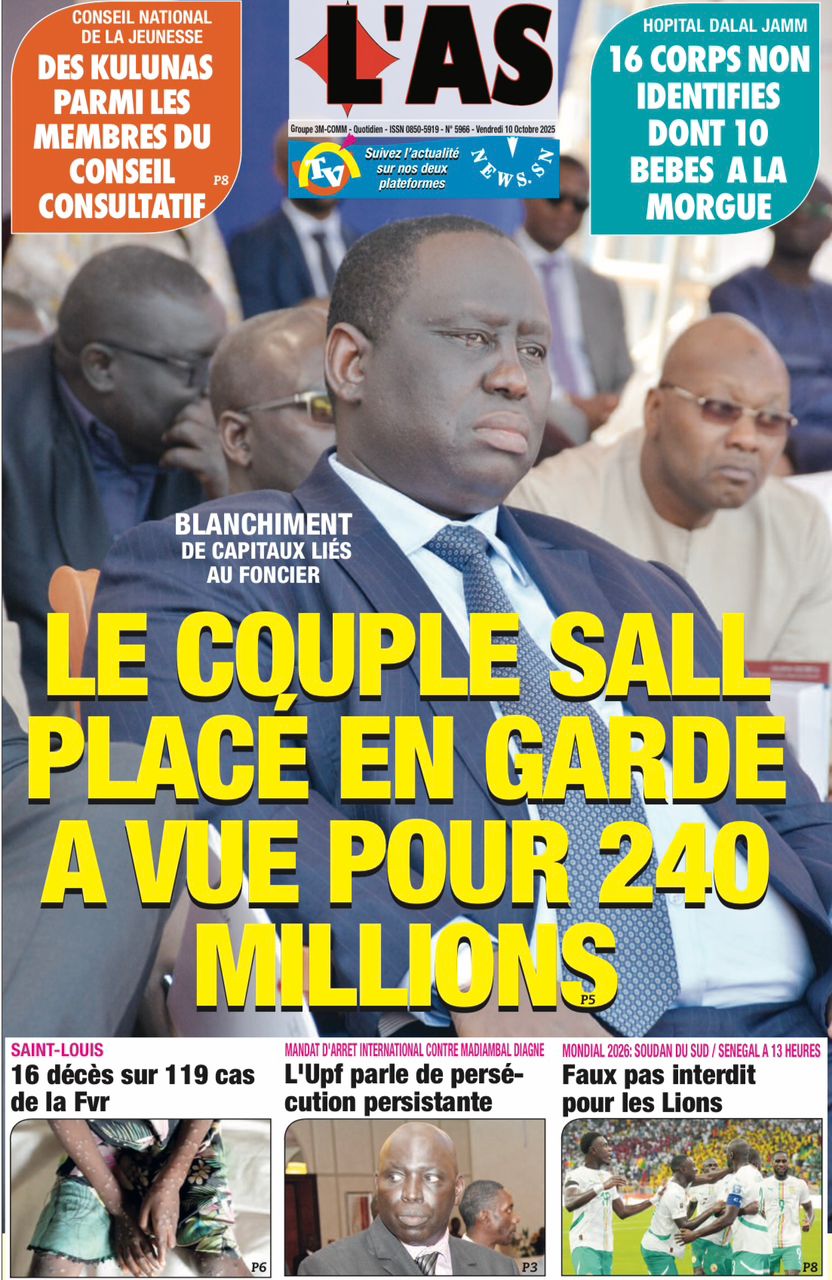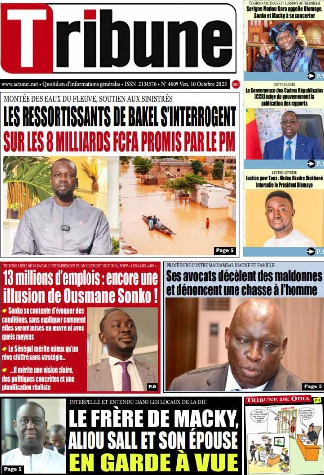 Découvrez les Unes des journaux sénégalais du vendredi 10 octobre 2025
