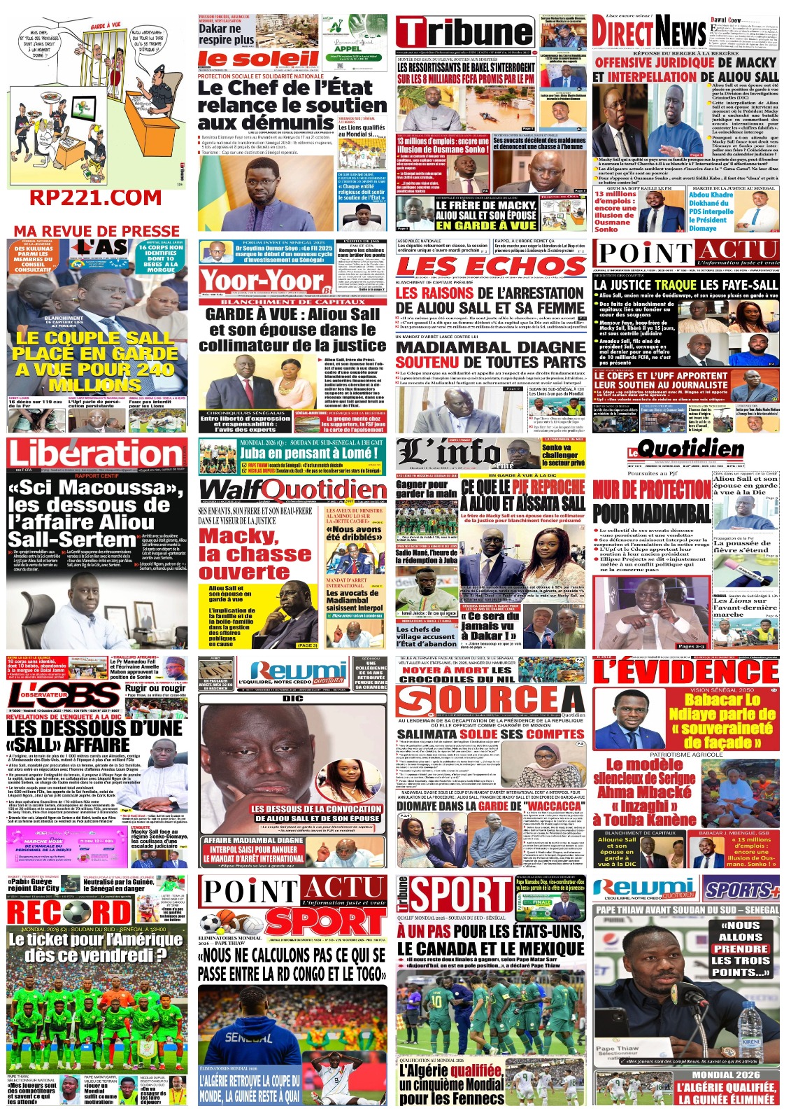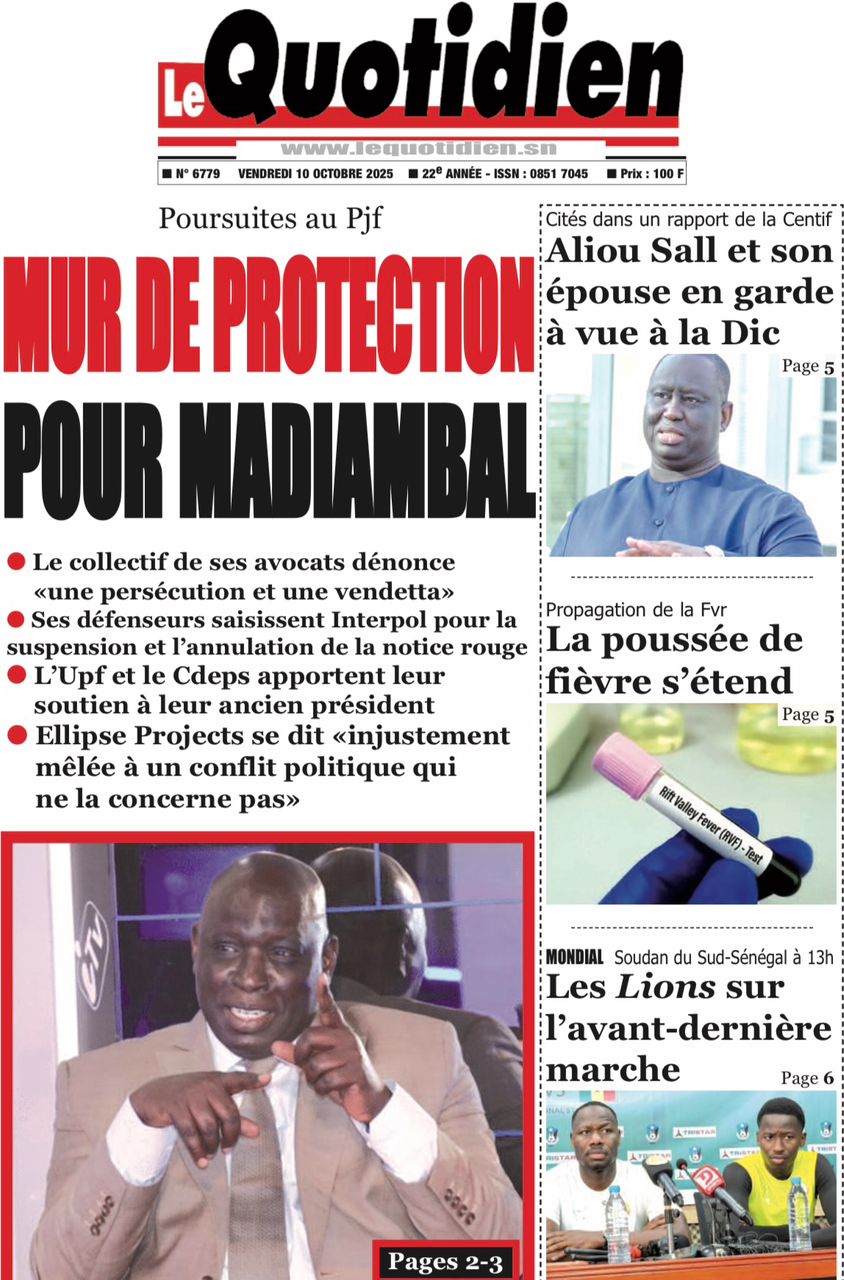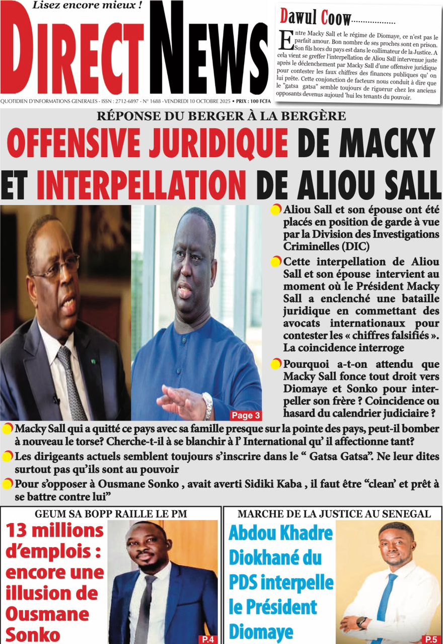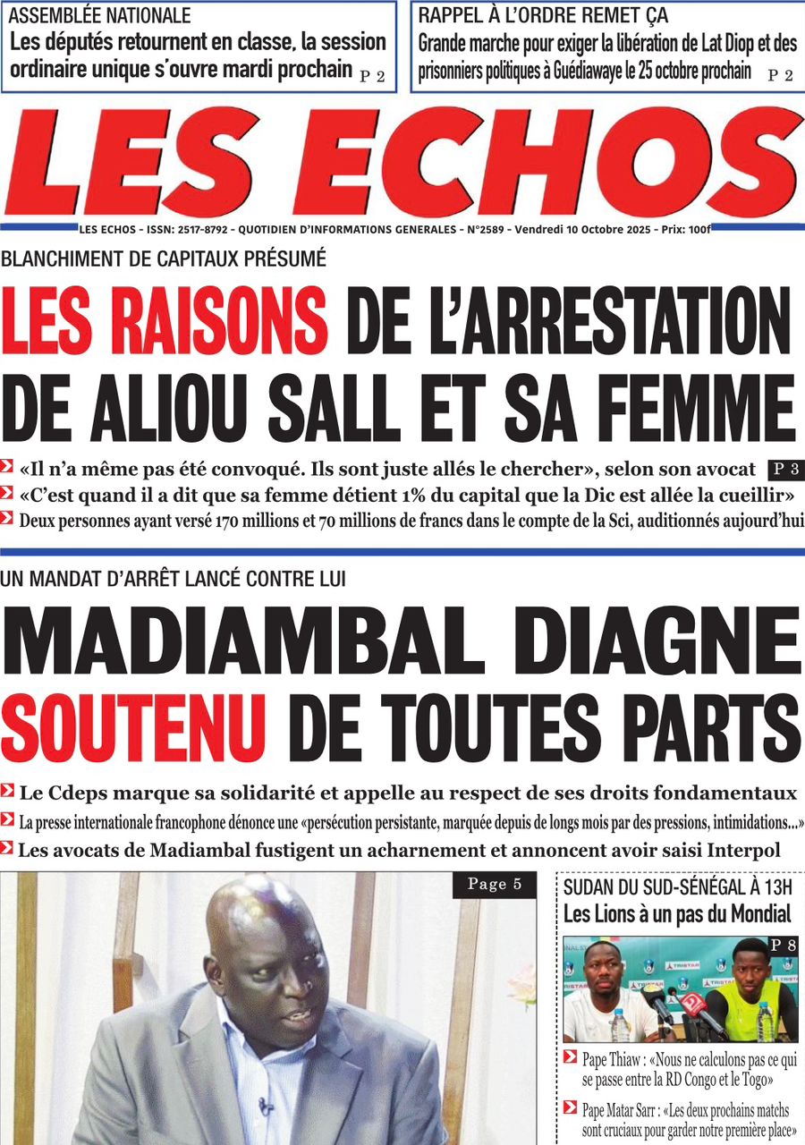 Découvrez les Unes des journaux sénégalais du vendredi 10 octobre 2025