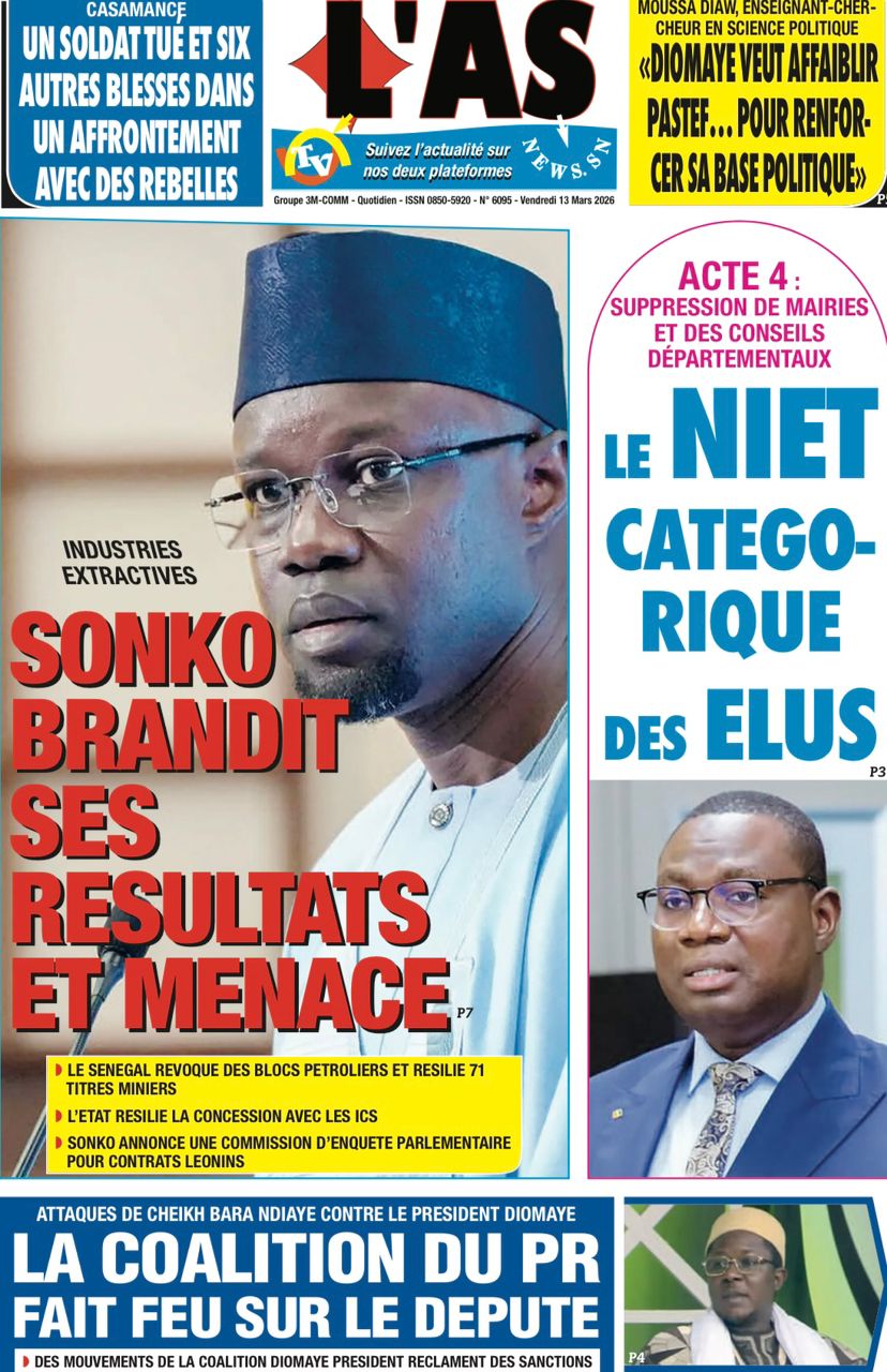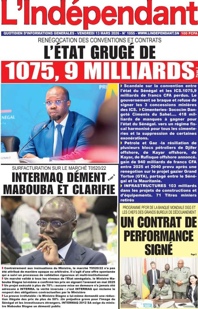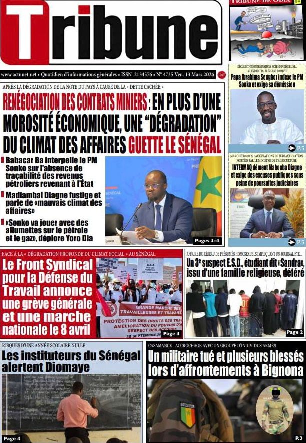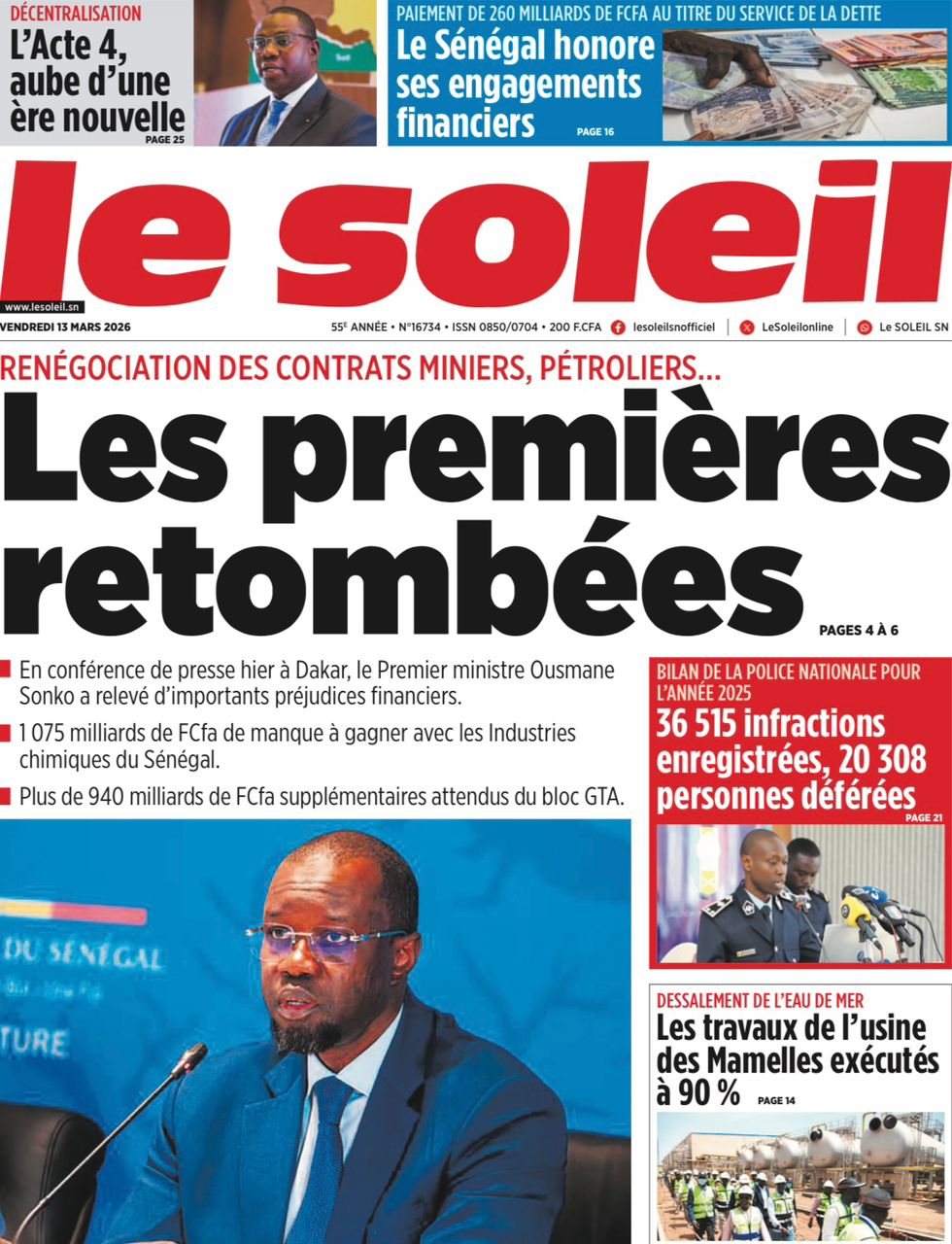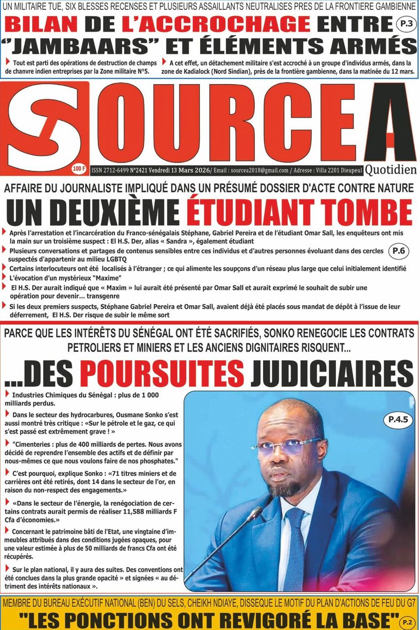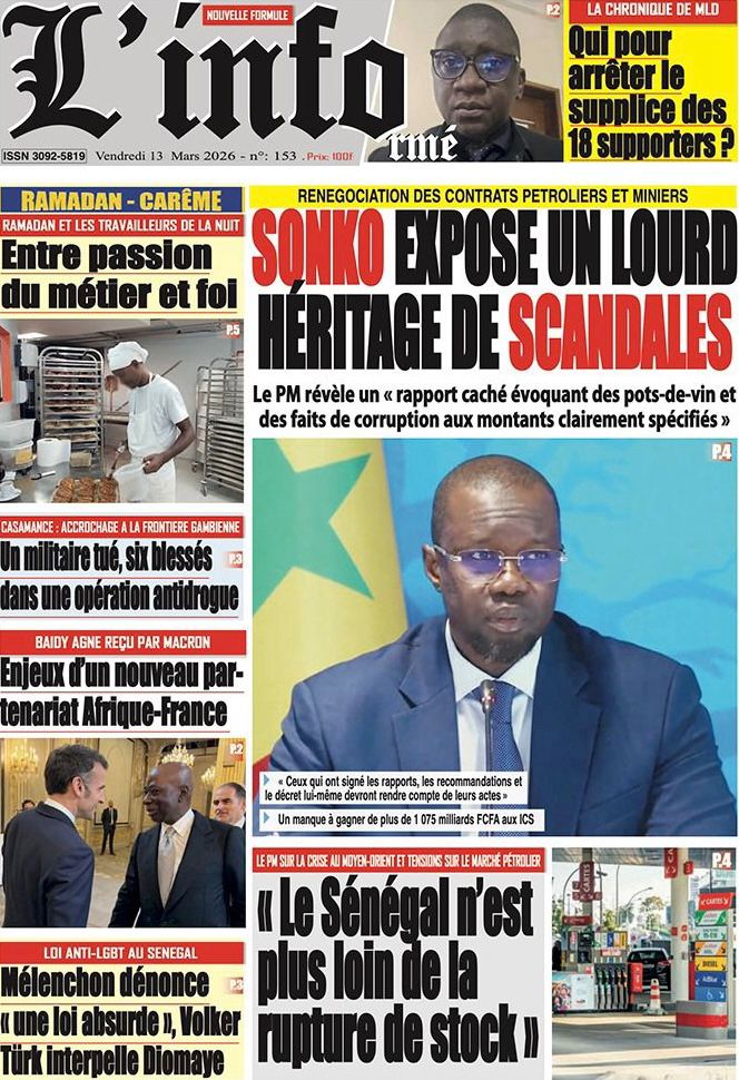 Découvrez les Unes des journaux sénégalais du vendredi 13 mars 2026