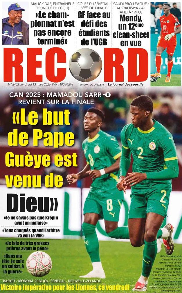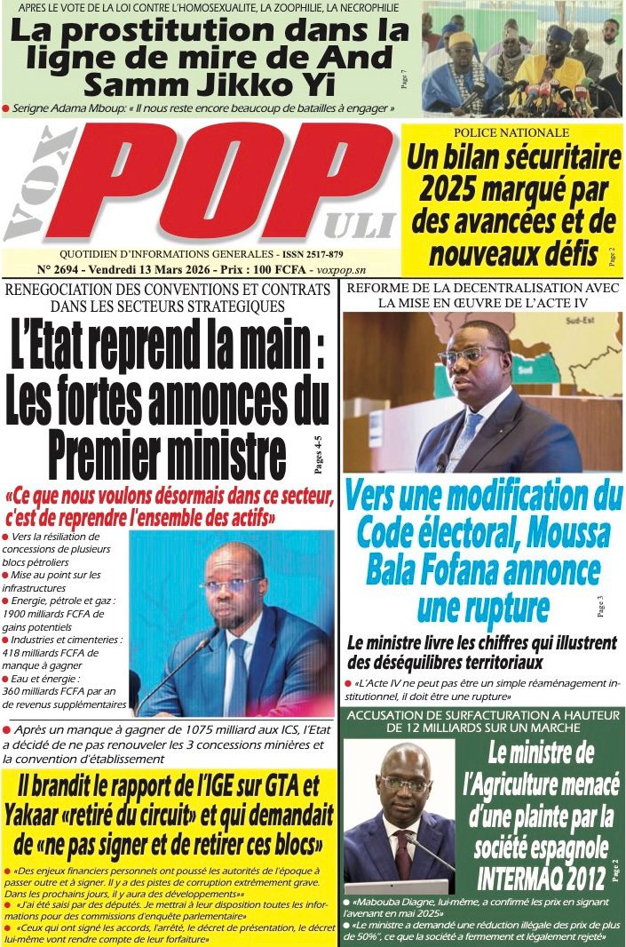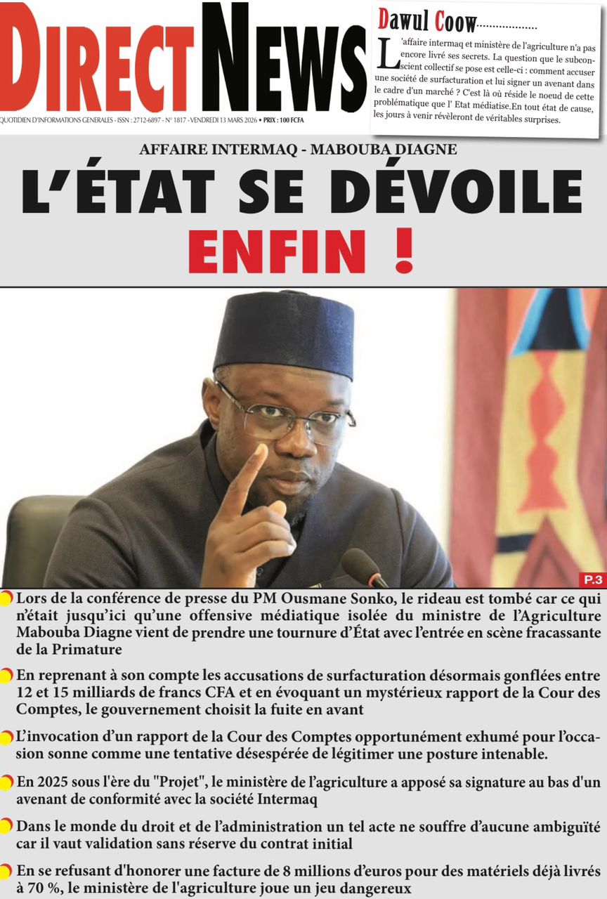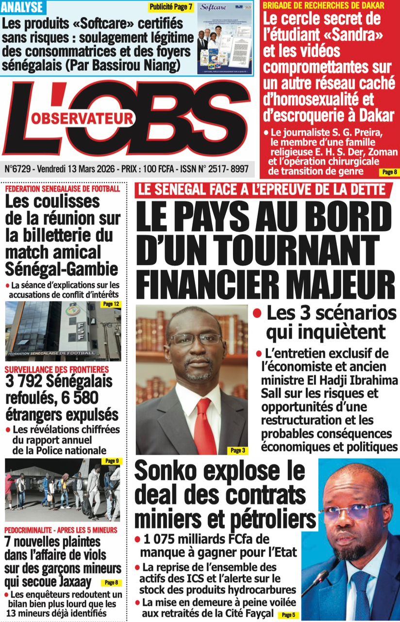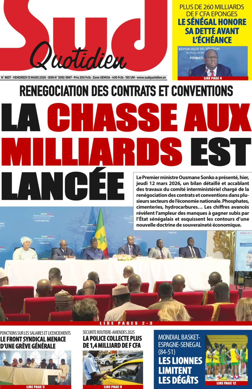 Découvrez les Unes des journaux sénégalais du vendredi 13 mars 2026