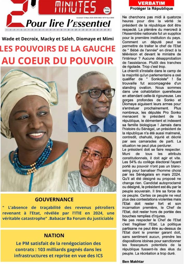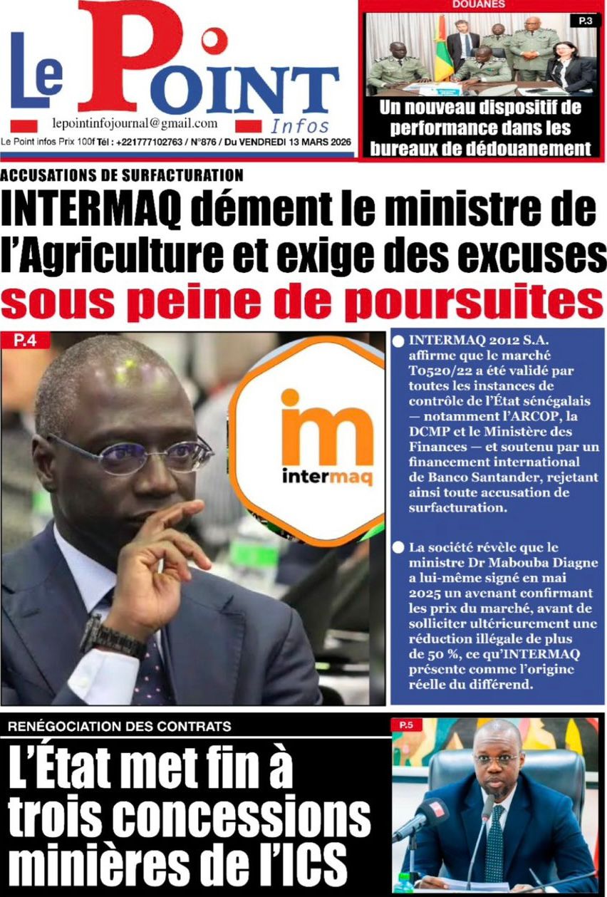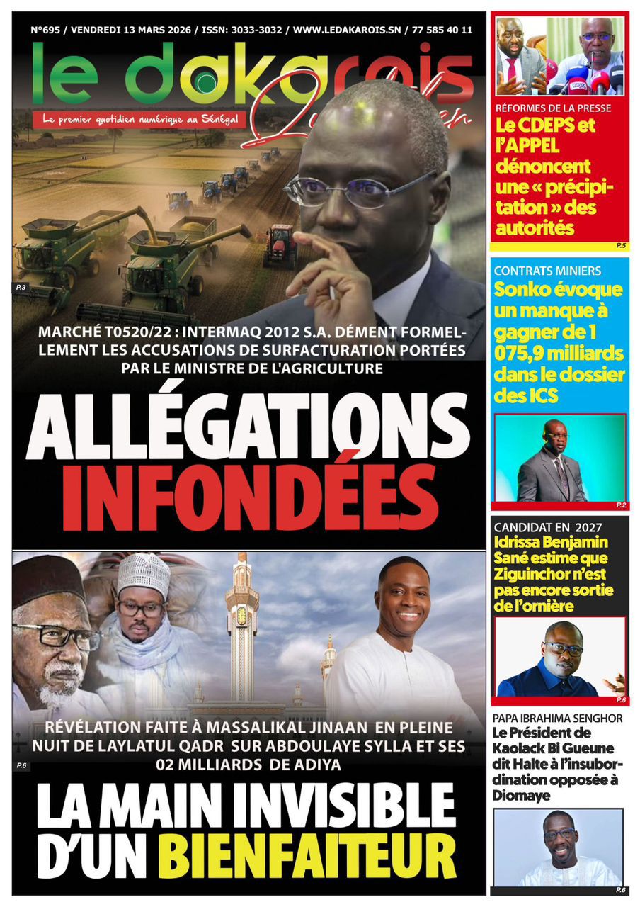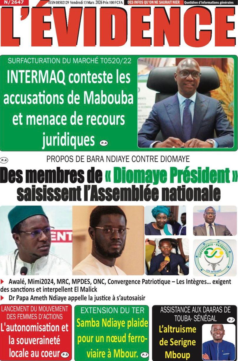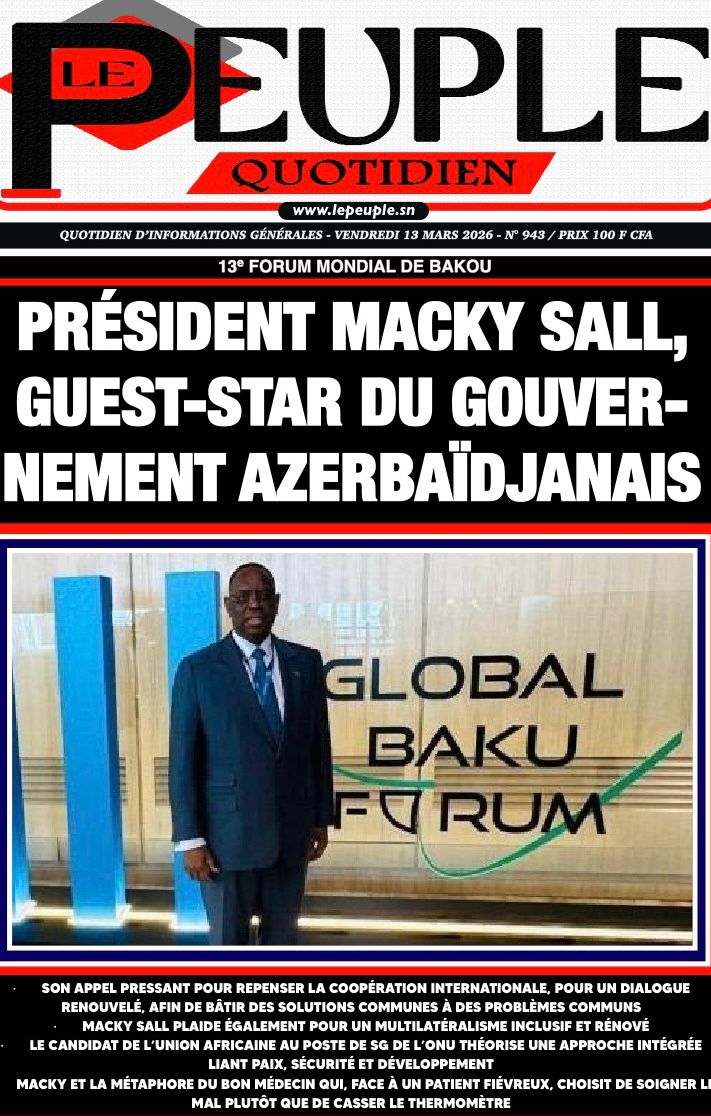 Découvrez les Unes des journaux sénégalais du vendredi 13 mars 2026