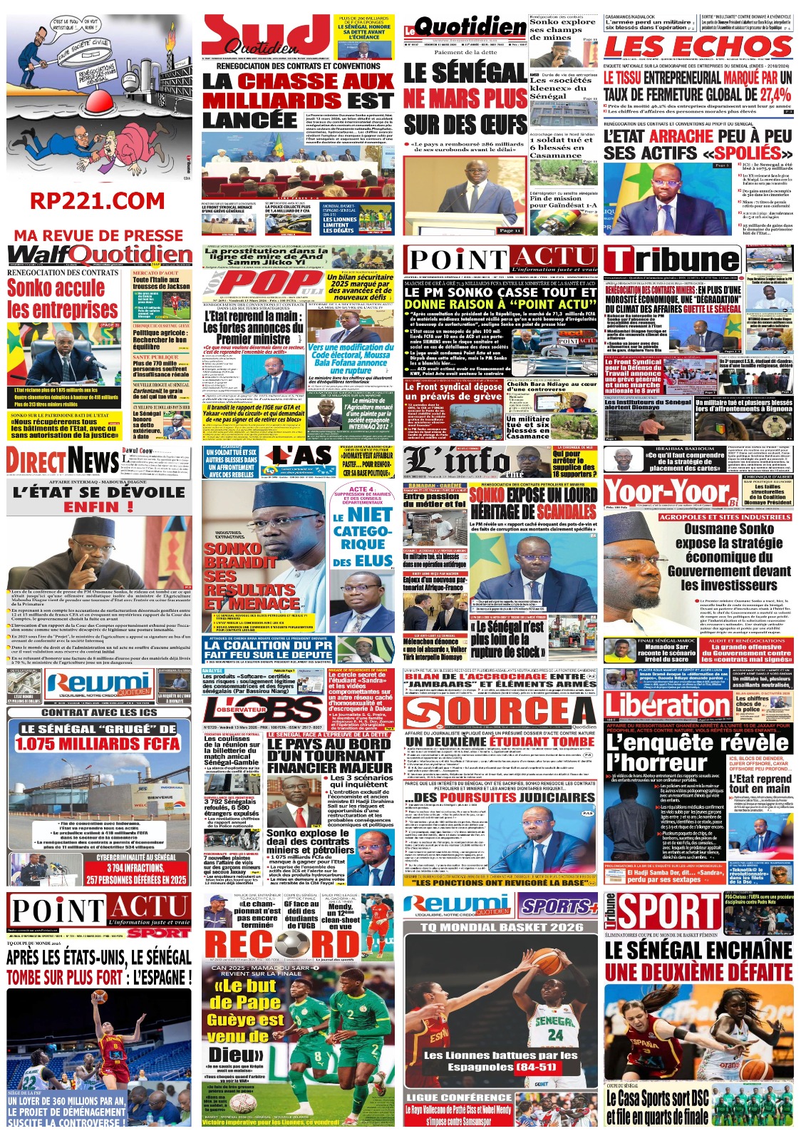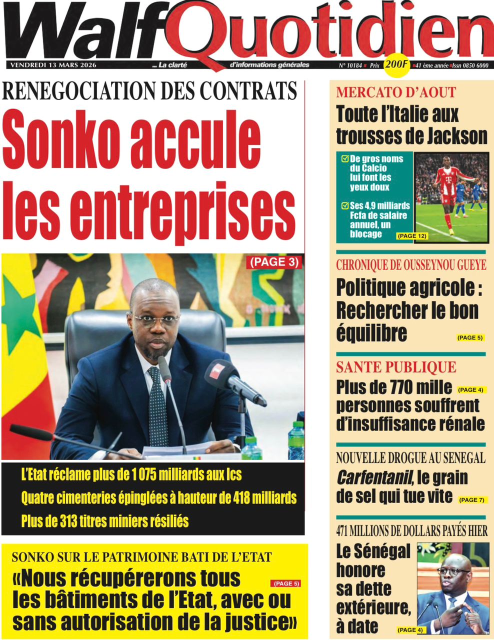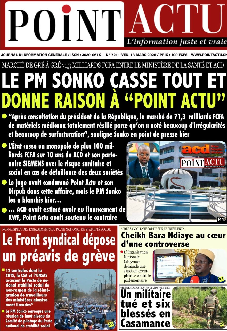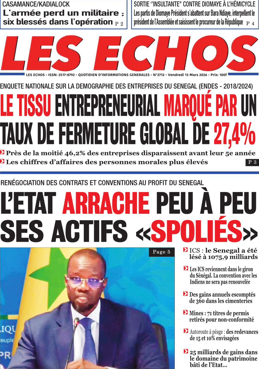 Découvrez les Unes des journaux sénégalais du vendredi 13 mars 2026