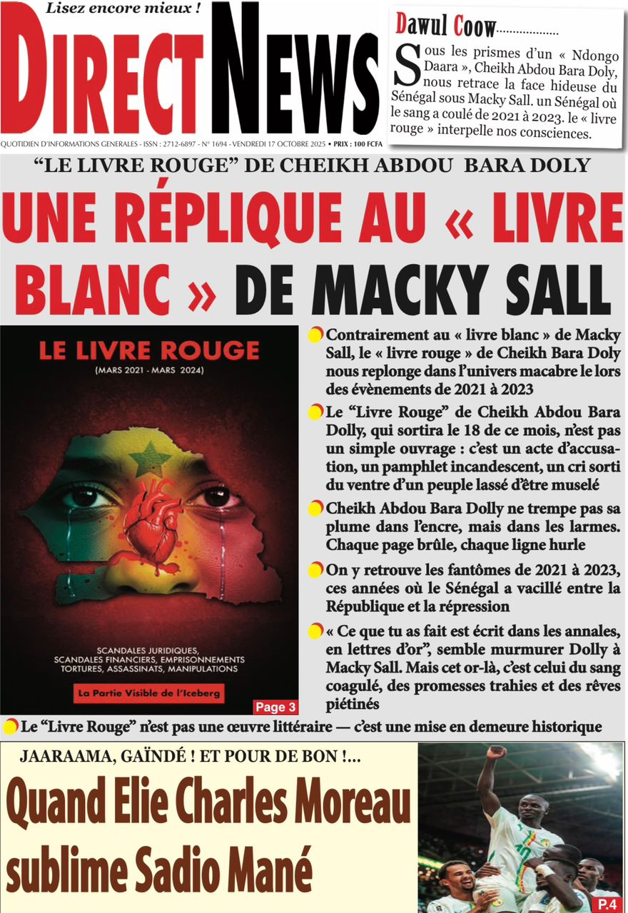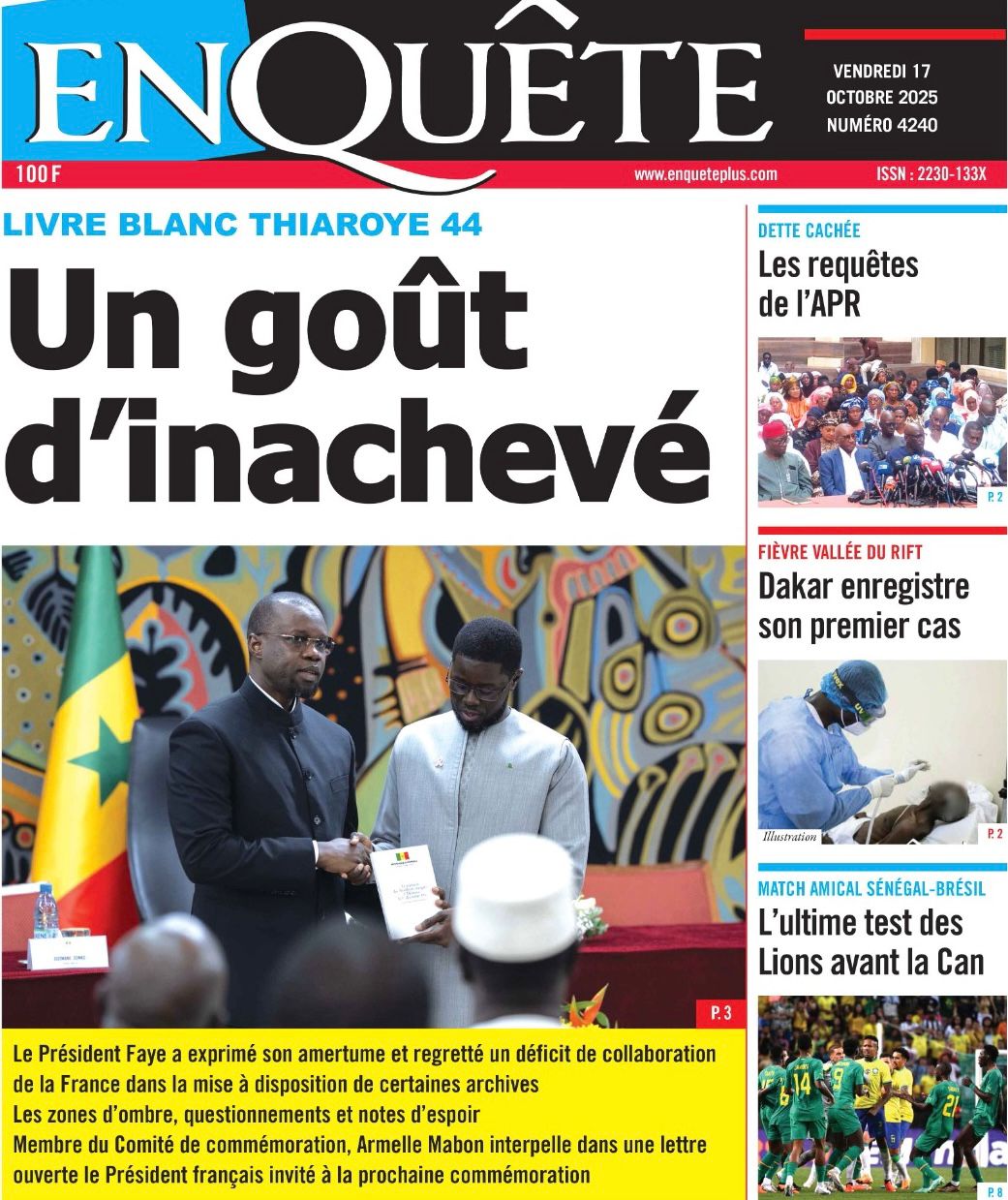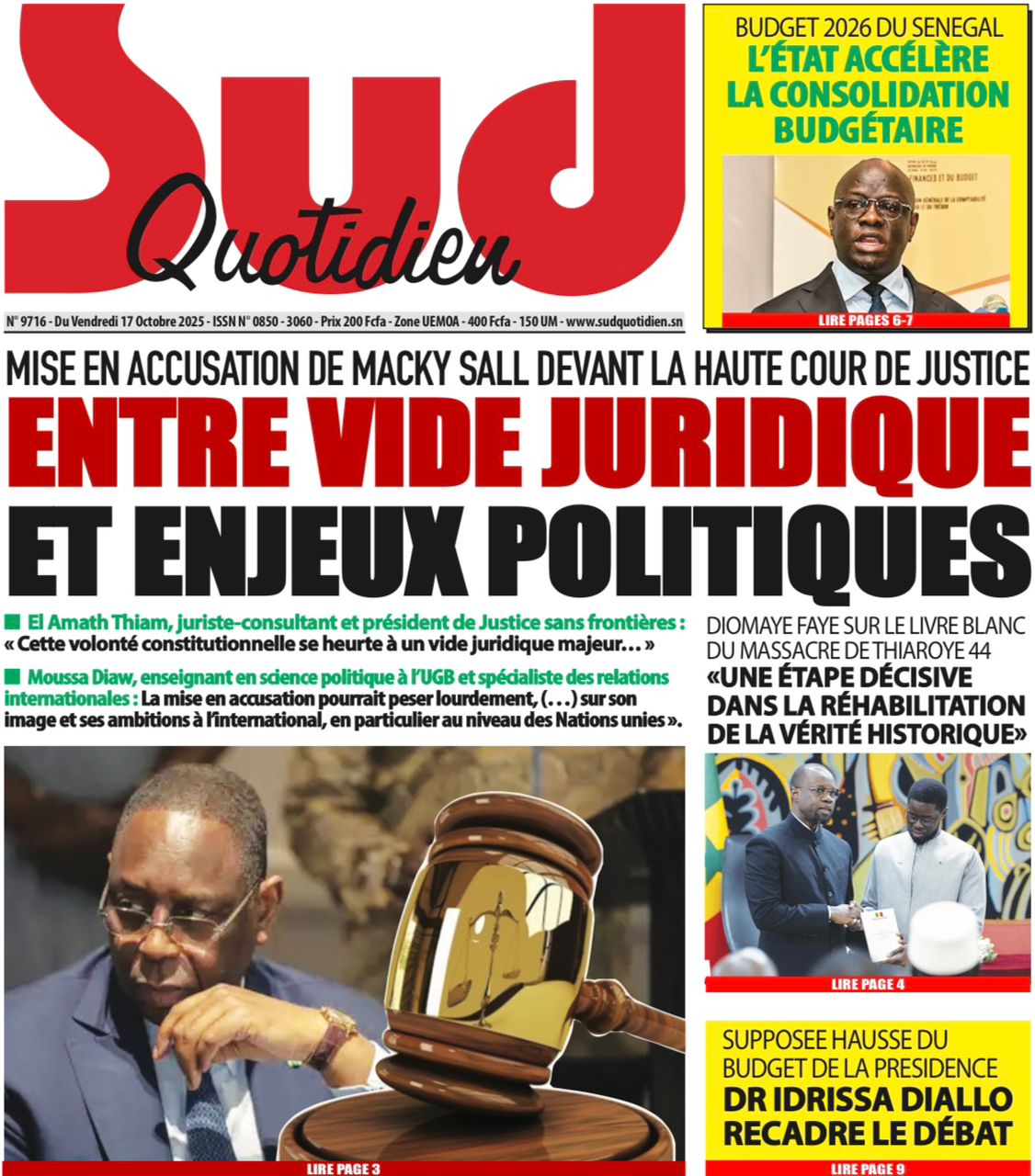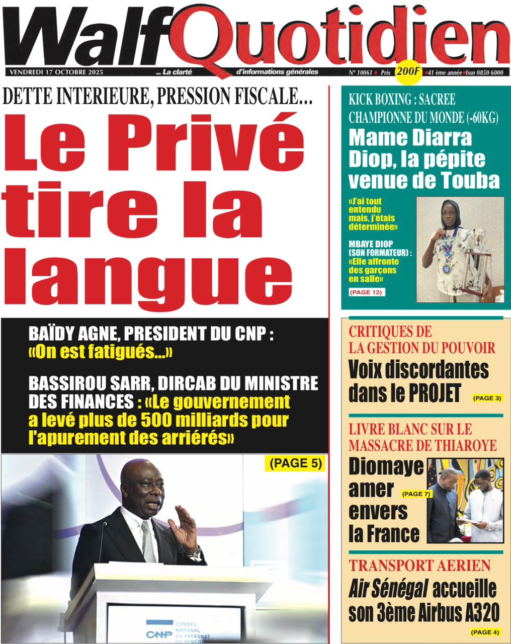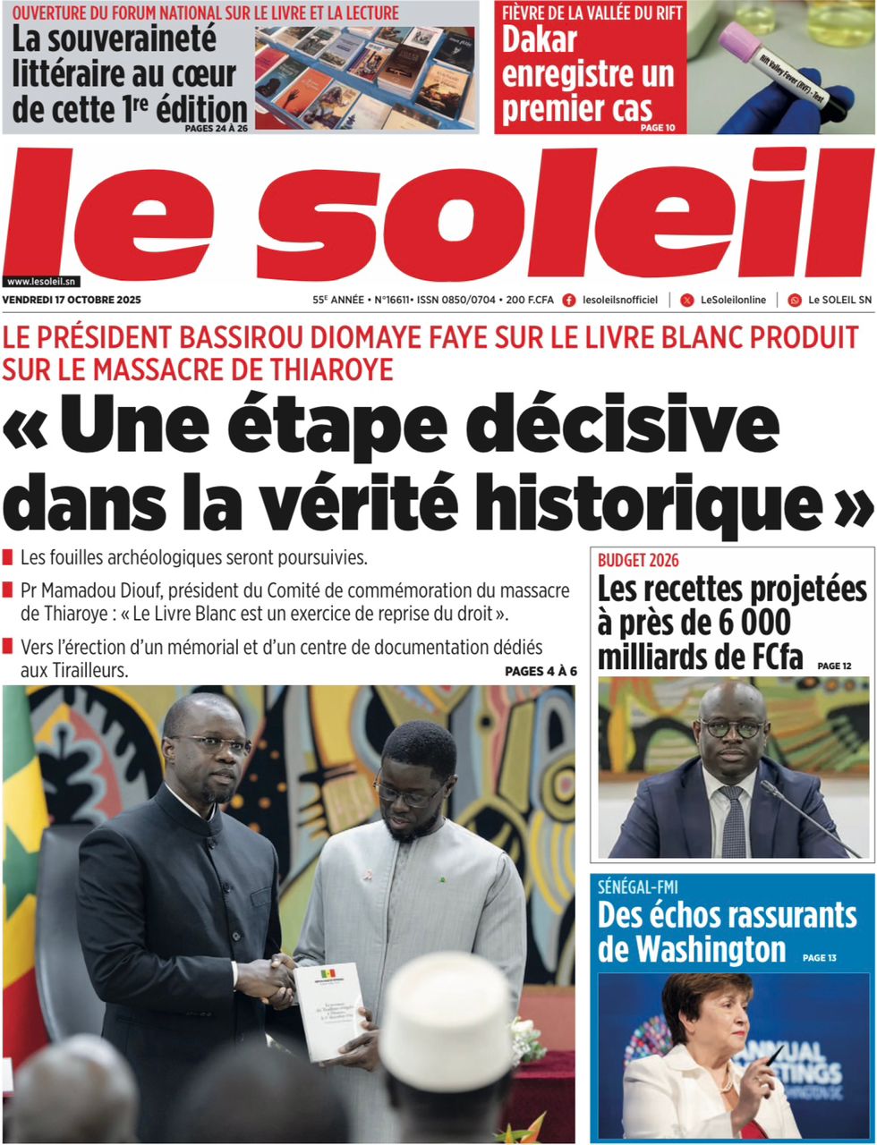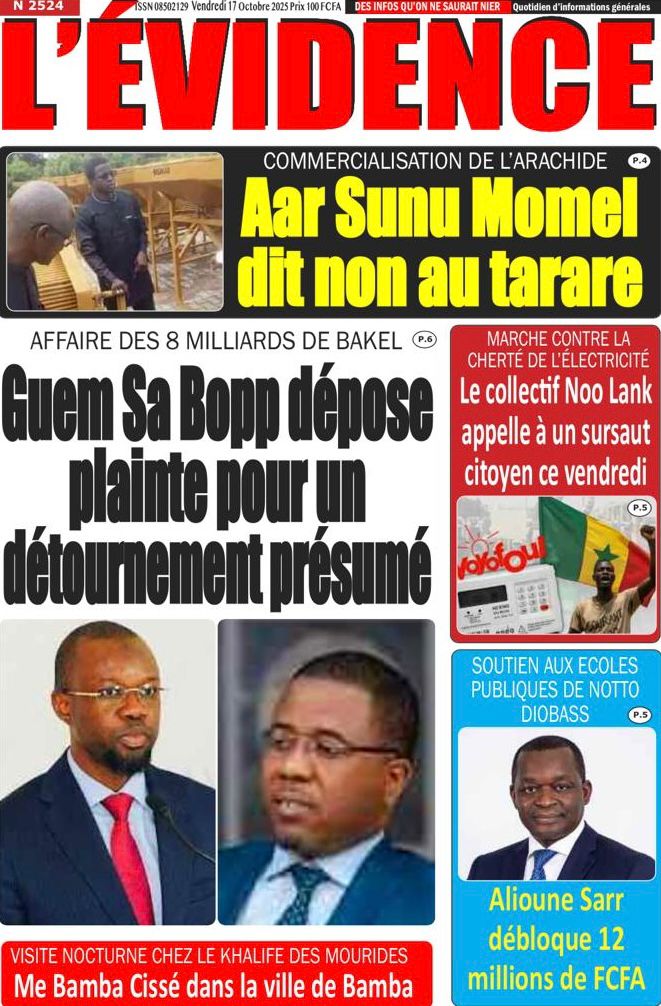 Découvrez les Unes des journaux sénégalais du vendredi 17 octobre 2025