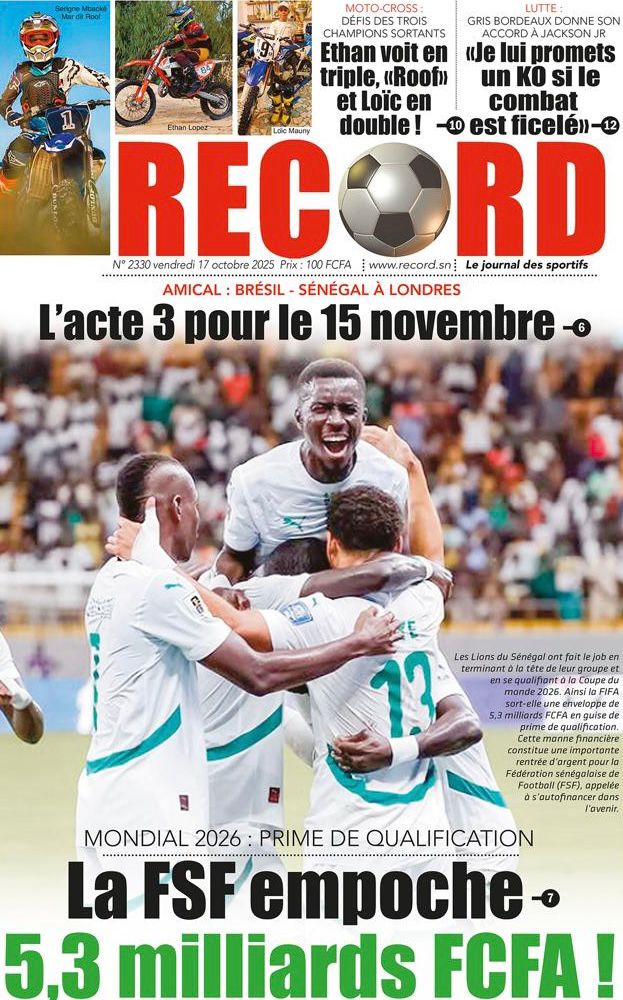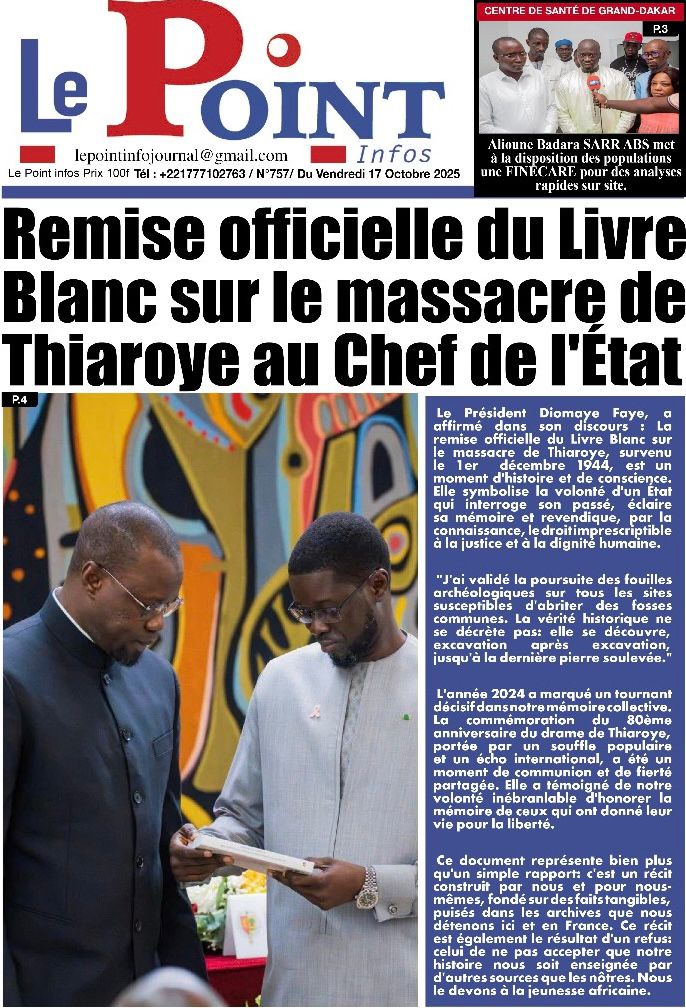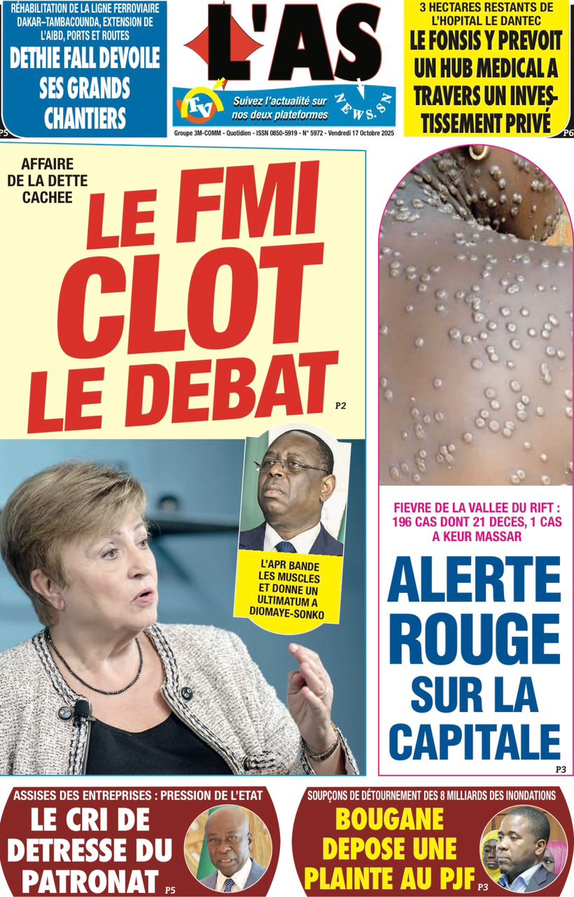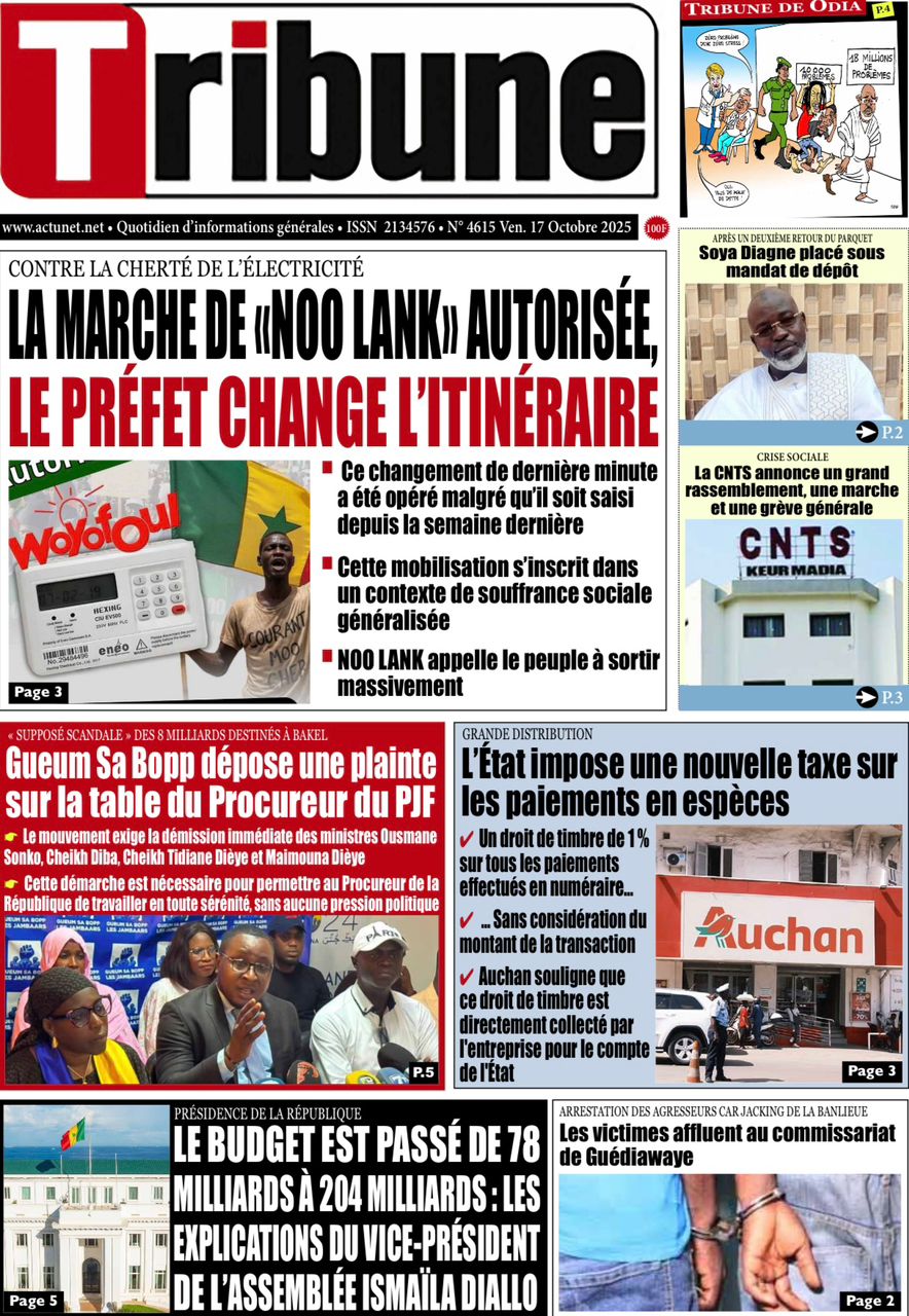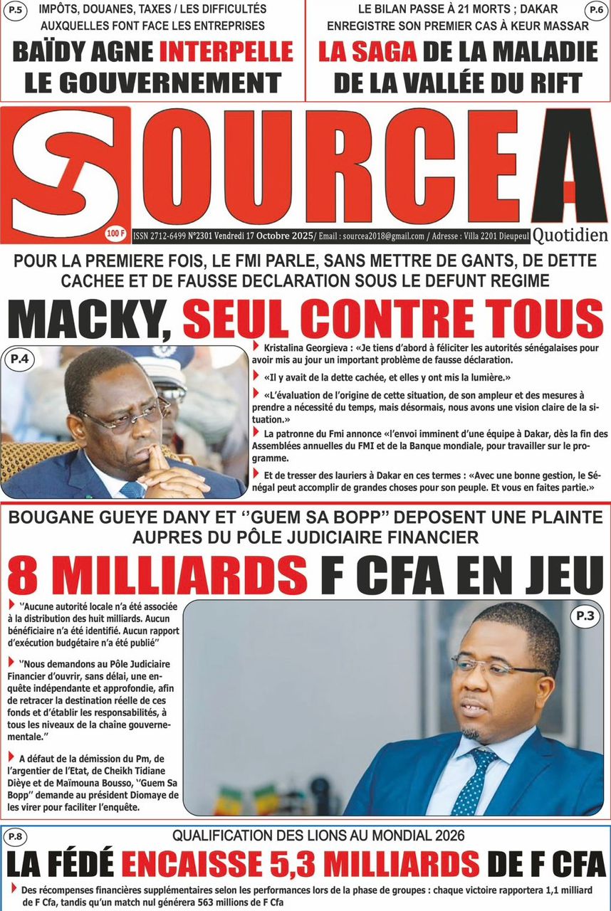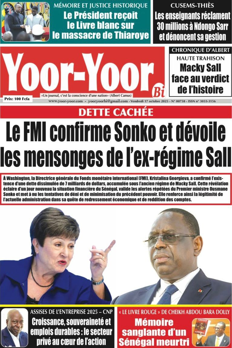Découvrez les Unes des journaux sénégalais du vendredi 17 octobre 2025