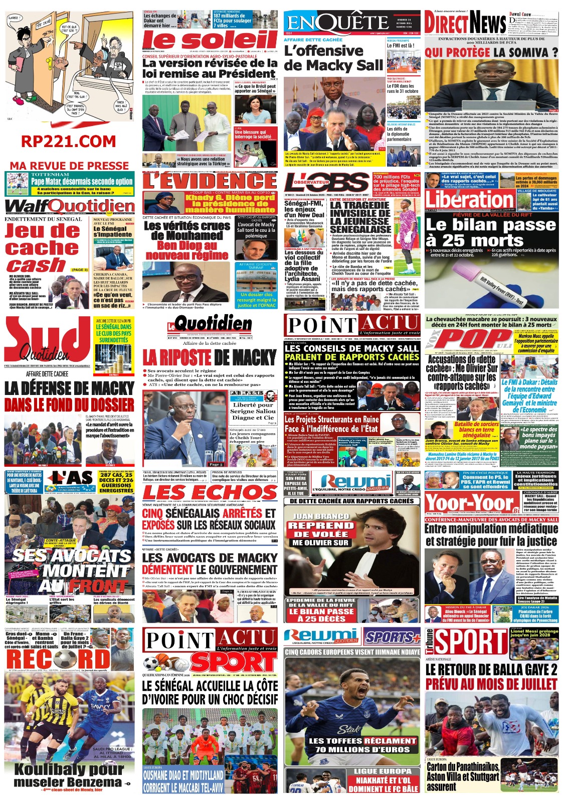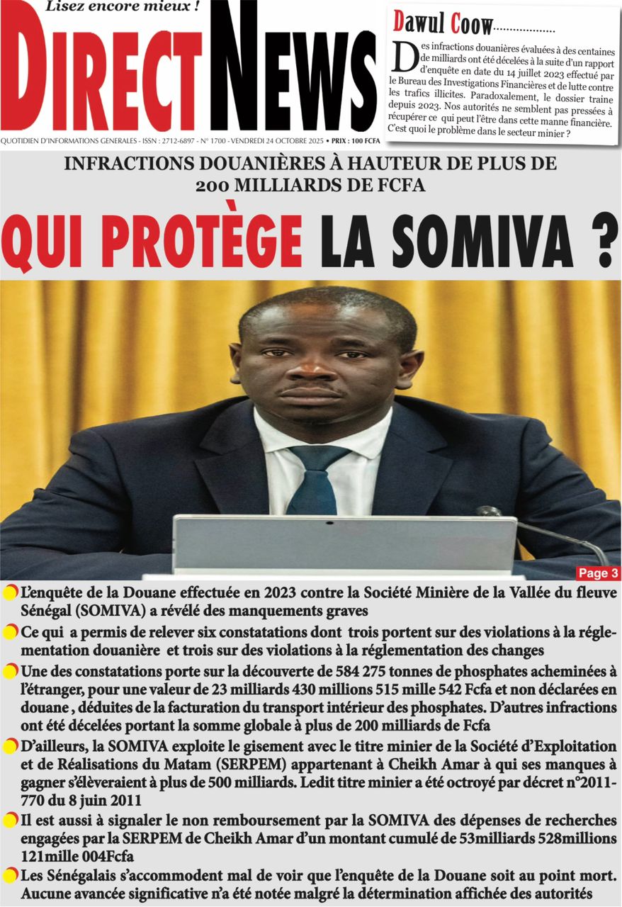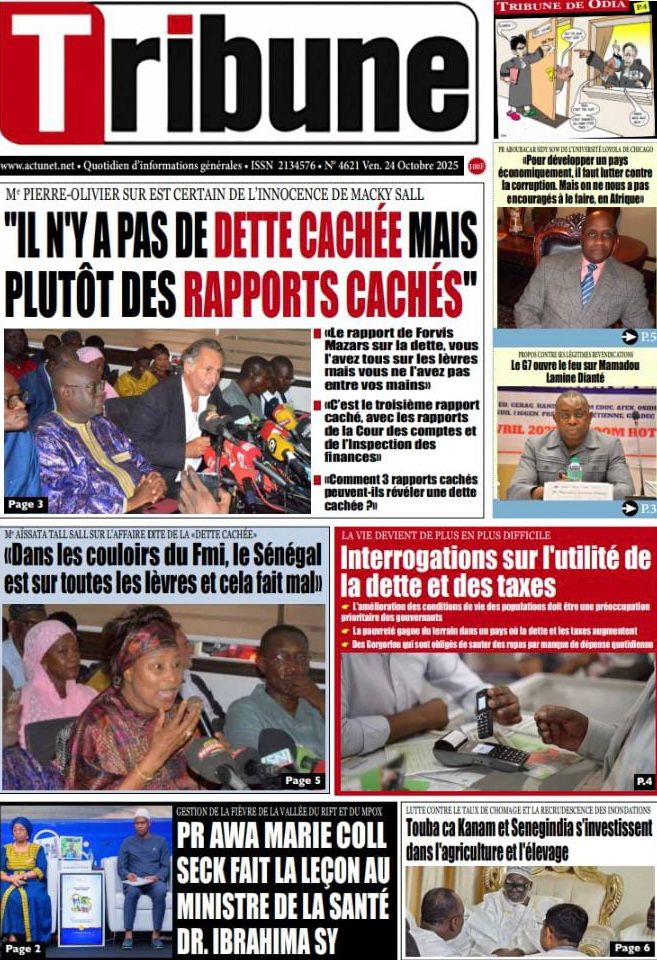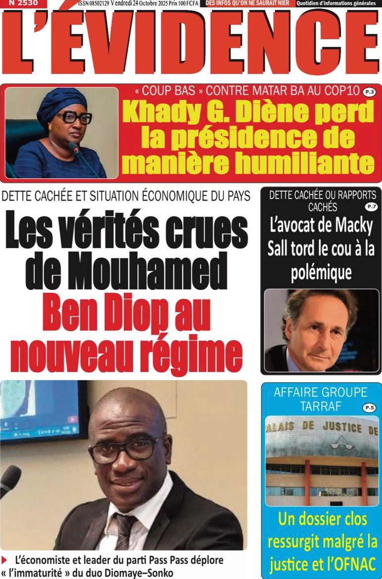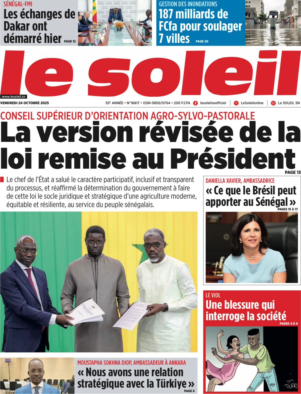 Découvrez les Unes des journaux sénégalais du vendredi 24 octobre 2025