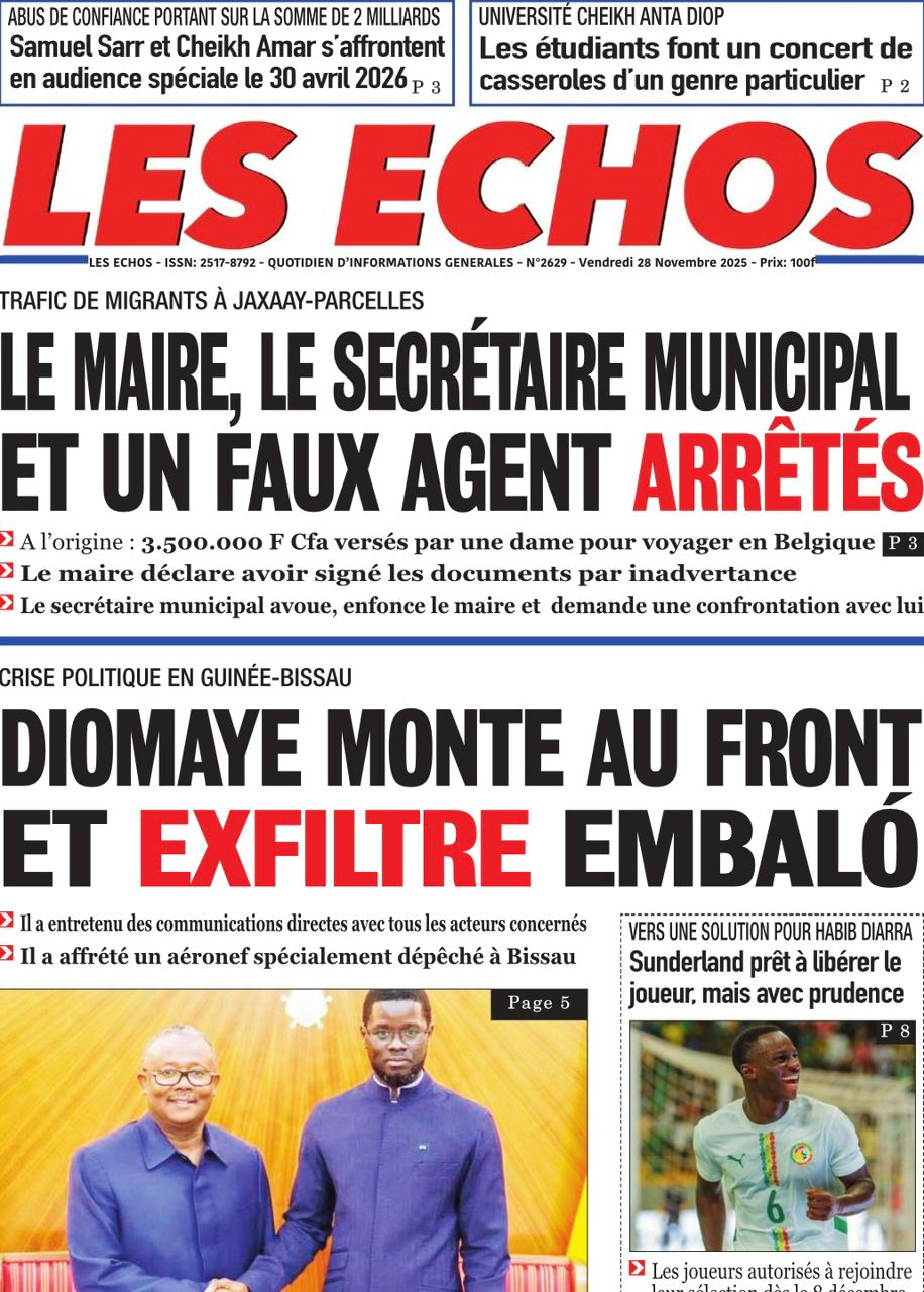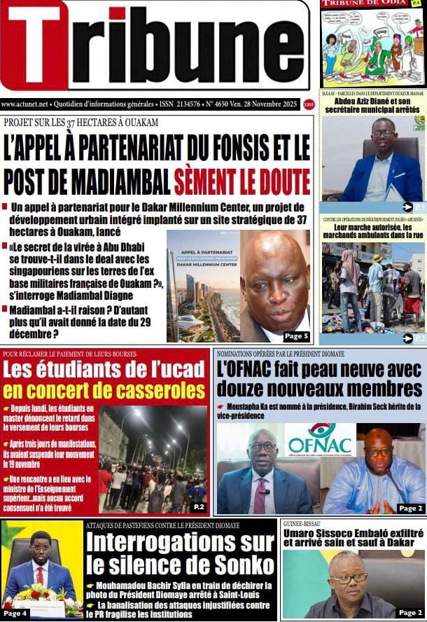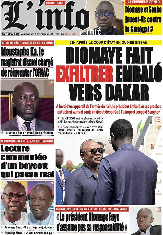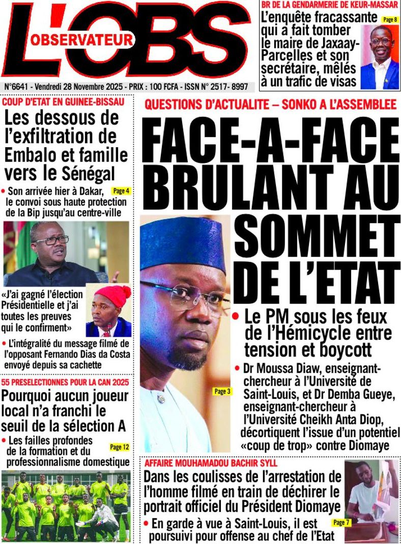 Découvrez les Unes des journaux sénégalais du vendredi 28 novembre 2025
