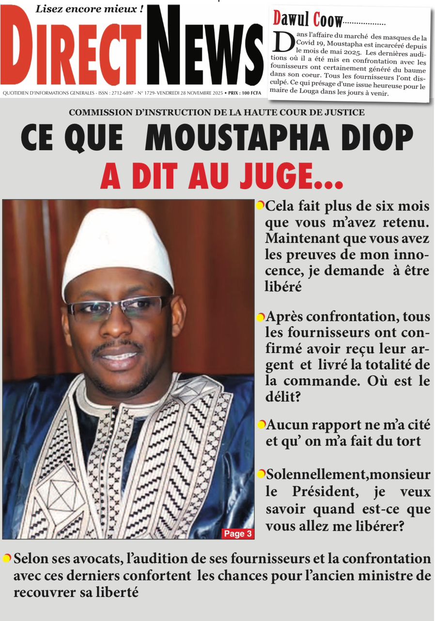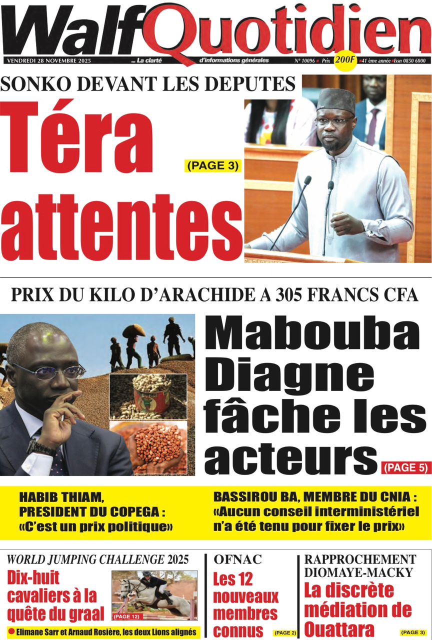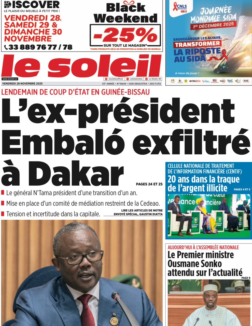 Découvrez les Unes des journaux sénégalais du vendredi 28 novembre 2025