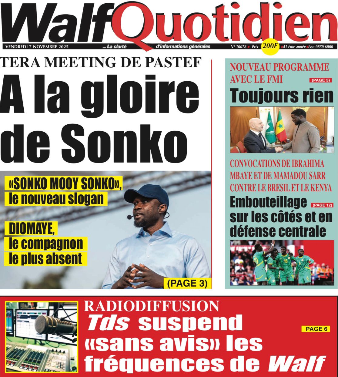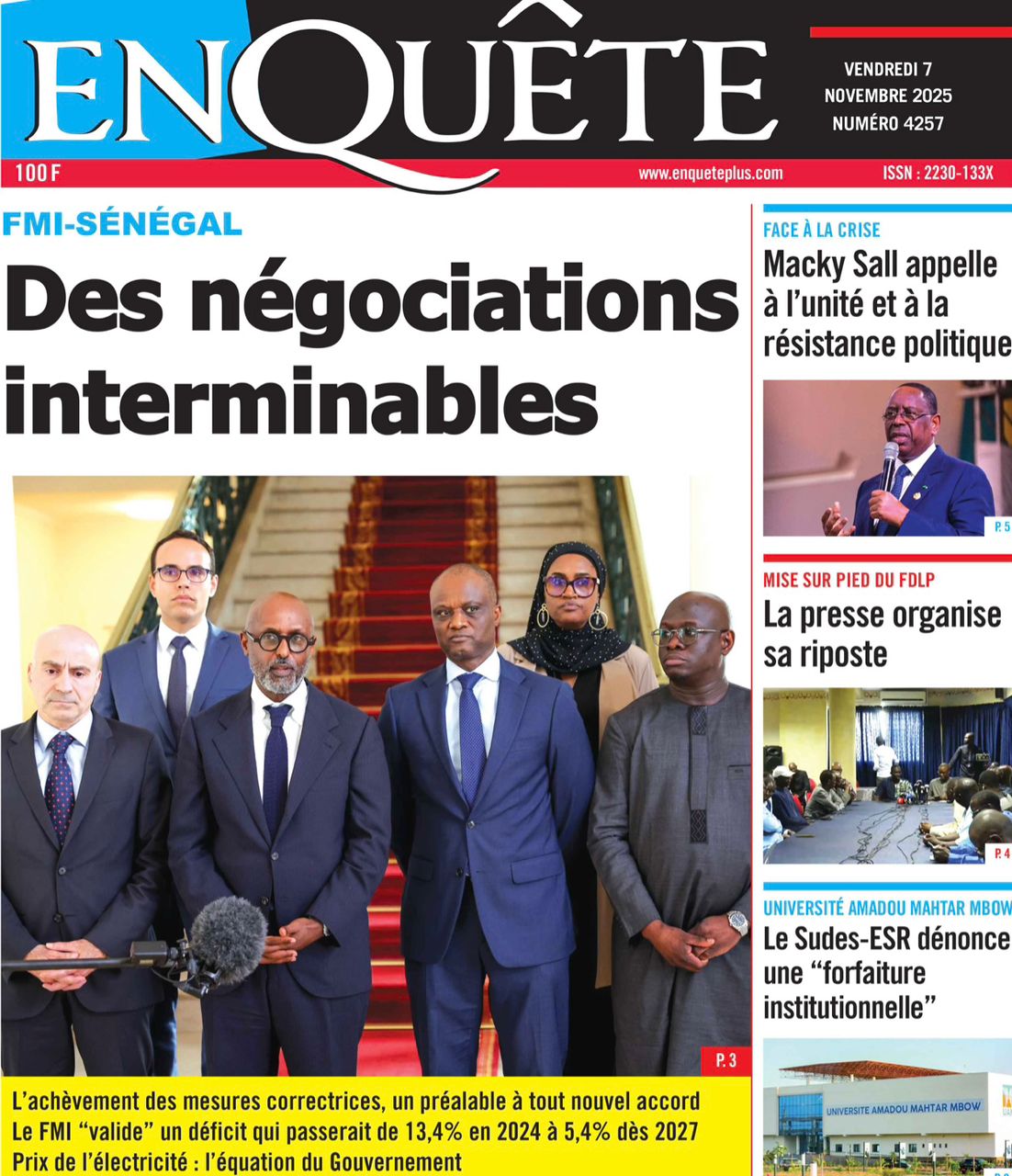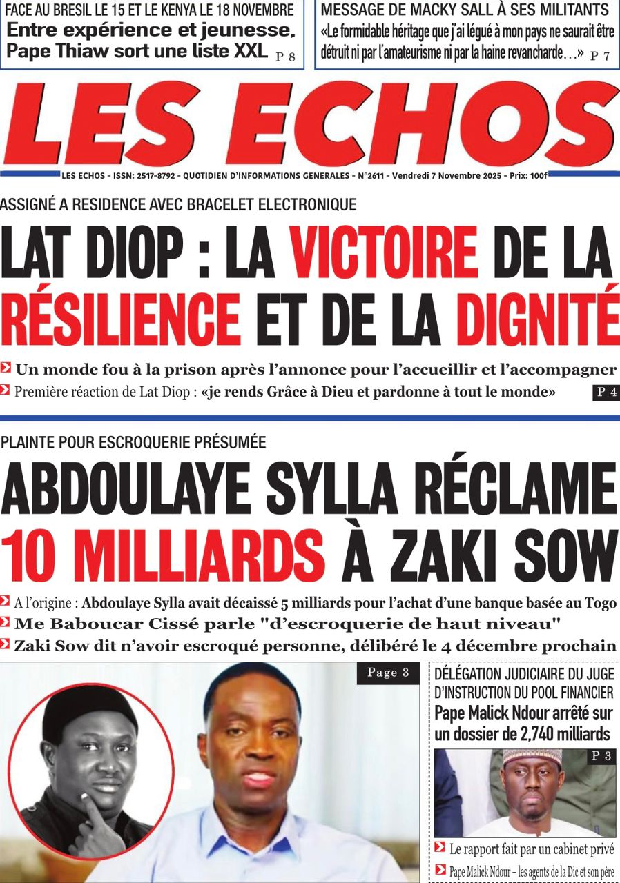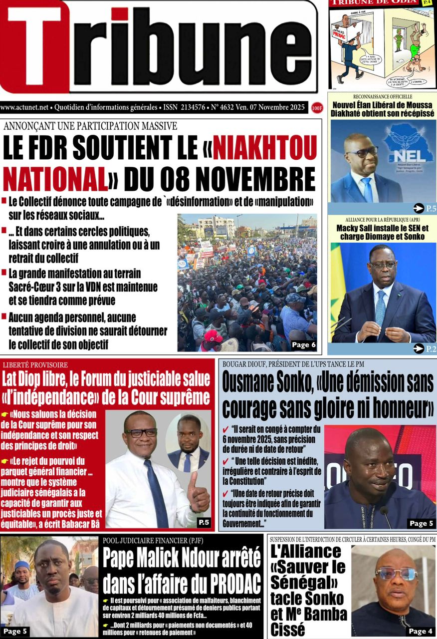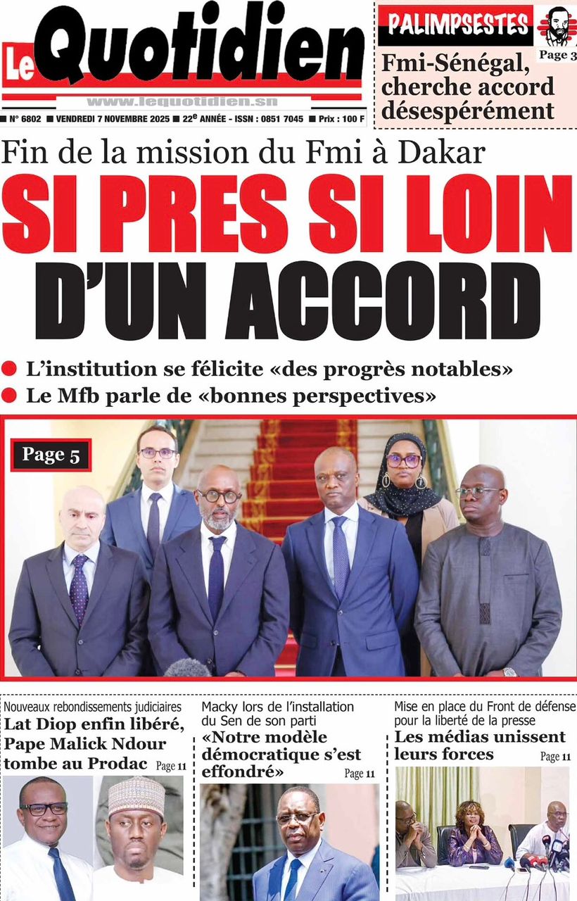 Découvrez les Unes des journaux sénégalais du vendredi 7 novembre 2025