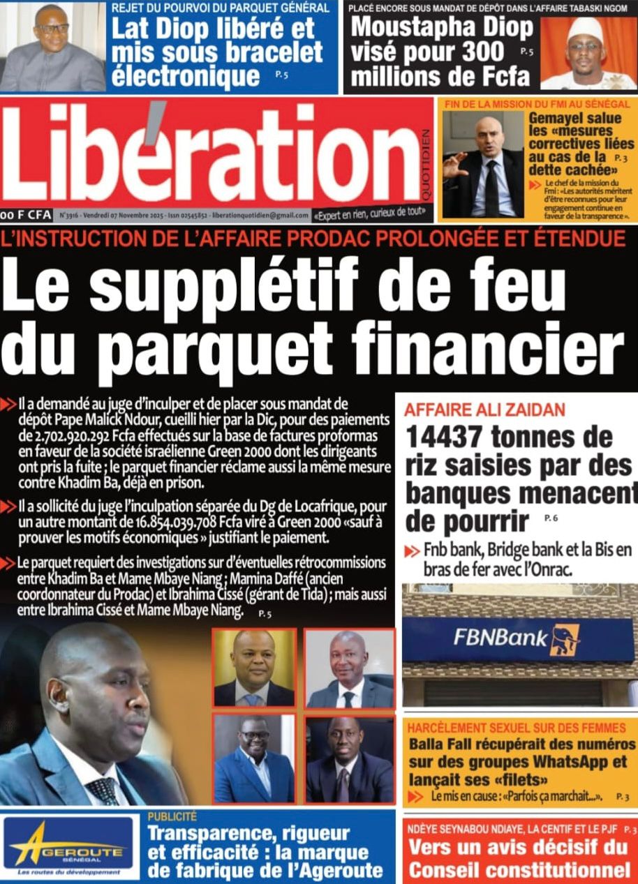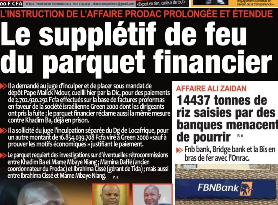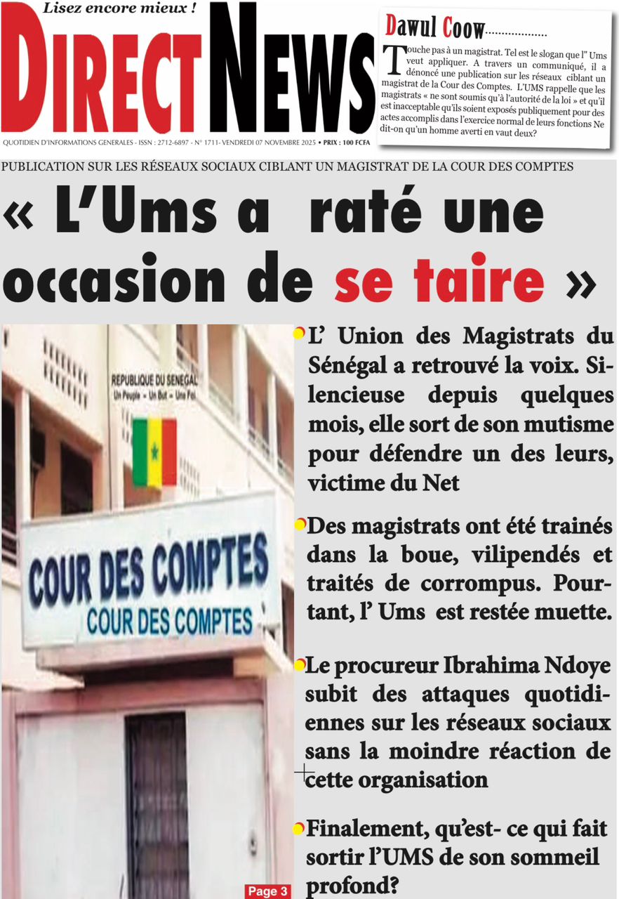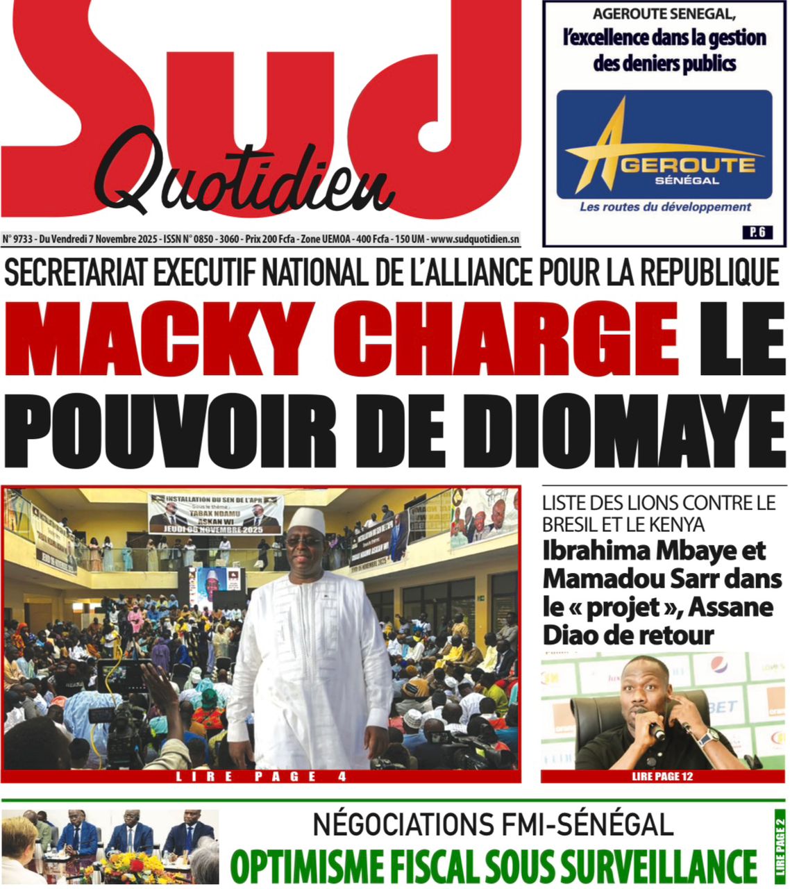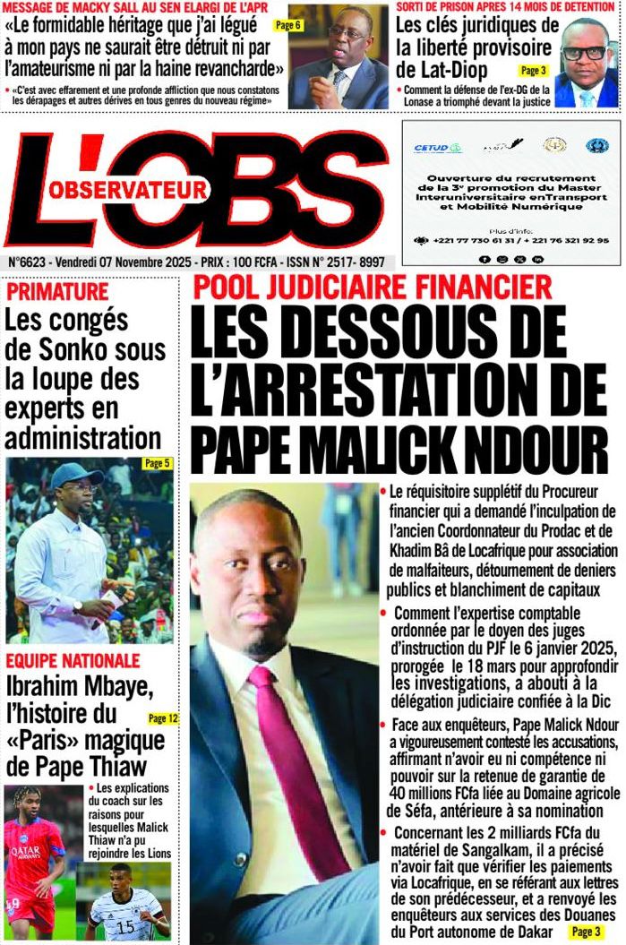 Découvrez les Unes des journaux sénégalais du vendredi 7 novembre 2025