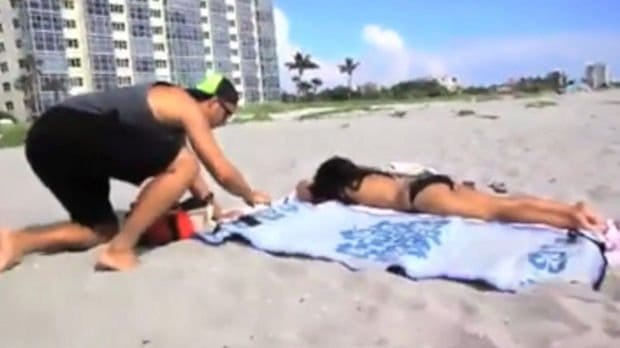 Des internautes nous font la démonstration d’une technique qui permet de voir la poitrine d’une fille qui bronze à plat ventre, sans le haut de son maillot.